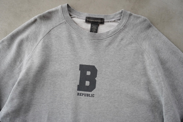 1990-2000年代 BANANA REPUBLICによるロゴスウェット。 この手のロゴ物の中でも特に良いと思える、控えめかつ配置の良いロゴプリント。 サンプルやエラー品等で見られる、取消し線が乗せられたブランドタグ。 僕は初めて見ましたし、上記の特別な仕様のタグからも生産数はとても少ないのではないかと推測しております。 形の良いラグラン袖。 袖/裾共に絞りの少ないリブ生地が使用された、XL表記のゆったりシルエット。 個人的にもとても気に入っている一枚です。 Product descriptions are also available in English, so if there's anything you're interested in, please feel free to contact us! If you send us a DM on Instagram, we'll respond as soon as possible:) 〔measurement〕 length (着丈):69cm pit to pit (身幅):67cm sleeve length (裄丈):92.5cm (↑from the center of the neck) 〔condition〕 7/10 画像の様な小傷、少しの薄汚れがございます。 いずれも着用時に目立つ物ではございませんが、神経質な方はよくご検討くださいませ。 There are small scratches and light stains as shown in the images.