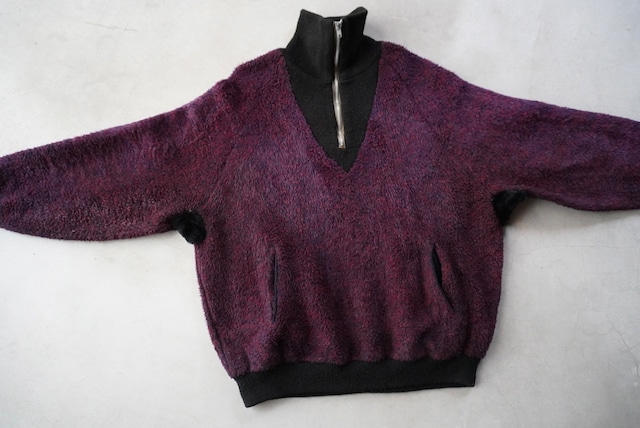 1960年代のSears たっぷり肉厚で毛足の長い、アクリルフリース生地のジッププルオーバー。 深い朱×紫のダークカラーのミックスカラー。 NYNCO製のアルミジップによる、高さのあるハイネック仕様。 生地を寝かせて襟を作った形もとても良いです。 初めて買い付ける事が出来たこの形。 相場も意識した事が無く買うか迷いましたが、脇下の小ぶりな生地継ぎを見つけて即決出来ました。 個人的にもとても気に入っている一枚。 ちゃんと大きめのL表記も最高な条件。 しっかりとファッションが出来るビンテージです。 Product descriptions are also available in English, so if there's anything you're interested in, please feel free to contact us! If you send us a DM on Instagram, we'll respond as soon as possible:) 〔measurement〕 length (着丈):65cm pit to pit (身幅):60.5cm sleeve length (裄丈):83cm (↑from the center of the neck) 〔condition〕 7/10 画像の様な少しの生地の潰れ、擦れがございます。 いずれも着用時に目立つ物ではございませんが、神経質な方はよくご検討くださいませ。 There are small scratches and rubbing of fabric as shown in the images.