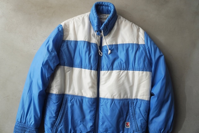 フランスのレインウェアメーカー K-WAY 本国フランス製、80年代頃のしっかり古いプロダクト。 シェルのライトブルーはポリアミド、ホワイトはポリエステル表記の、近い異素材のファットボーダー。 ドローコードが通る高さのあるハイネック。 実寸M-L程の大き過ぎないサイズバランス、そしてこのライトな配色は、 ゆとりのあるジャケットやオーバーコートのインナーとしても活躍してくれそうです。 暗くなりがちな冬の装いに変化を与えてくれる様な、お気に入りの一枚です。 Product descriptions are also available in English, so if there's anything you're interested in, please feel free to contact us! If you send us a DM on Instagram, we'll respond as soon as possible:) 〔measurement〕 length (着丈):77cm shoulder width (肩幅):48cm pit to pit (身幅):63cm sleeve length (袖丈):62.5cm 〔condition〕 7/10 画像の様な小傷、少しの薄汚れがございます。 いずれも着用時に目立つ物ではございませんが、神経質な方はよくご検討くださいませ。 There are small scratches and light stains as shown in the images.