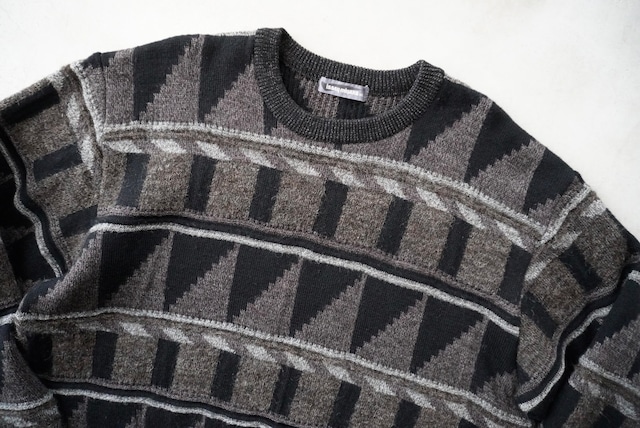 1980年代中盤のissey miyake men 柔らかな肌触りの上質なウールニット。 質感や毛足の長さが少しずつ異なる、細かな凹凸のある編み地。 暗色ながらも動きのある編み柄。 独自の工夫が見える、素晴らしい生地が使用されております。 丸首のリラックスフィット。 この年代の特別な生地が存分に活きる、シンプルな設計。 こちらは過去に一度だけ販売したことのあるモデル。 約3年越しにまた出会えました。 シンプルな作りながらも80s issey miyakeらしさを存分に感じられる傑作モデルです。 Product descriptions are also available in English, so if there's anything you're interested in, please feel free to contact us! If you send us a DM on Instagram, we'll respond as soon as possible:) 〔measurement〕 length (着丈):68cm shoulder width (肩幅):53cm pit to pit (身幅):62.5cm sleeve length (袖丈):62.5cm 〔condition〕 8/10 若干の着用感、少しの小傷がございますが、 大きなダメージ、汚れ等なく問題なく着用いただけます。 good condition without any major damage or stains
