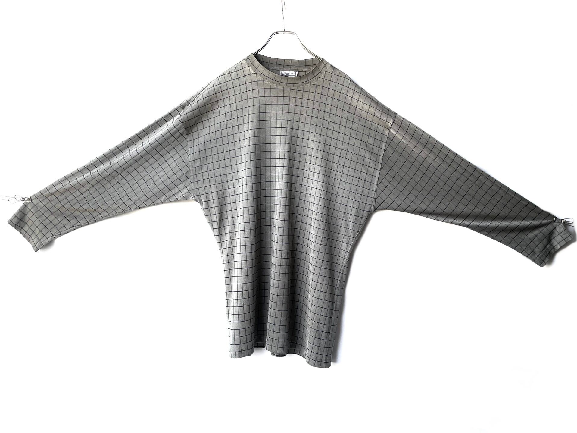 カットソーを化繊のニット生地で作った様な面白いバランス。