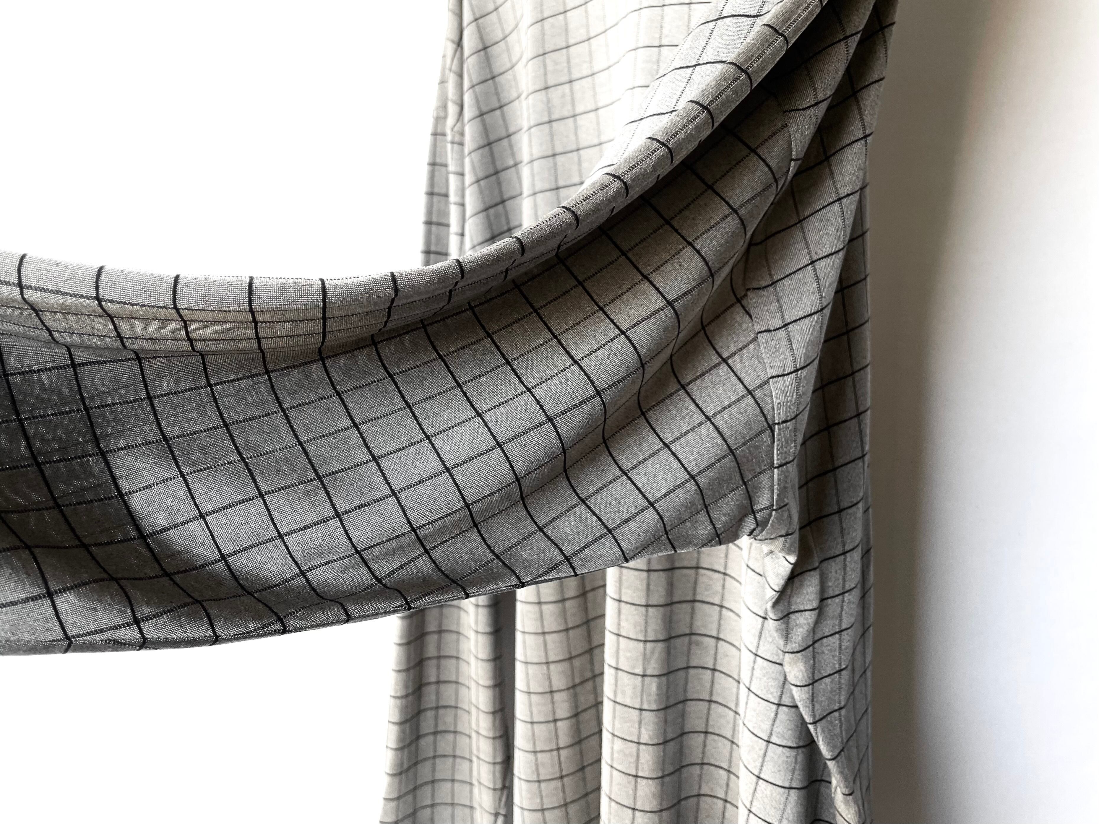 落ち着きのあるシルバーグレー×ブラックの織りによるチェックパターン。
