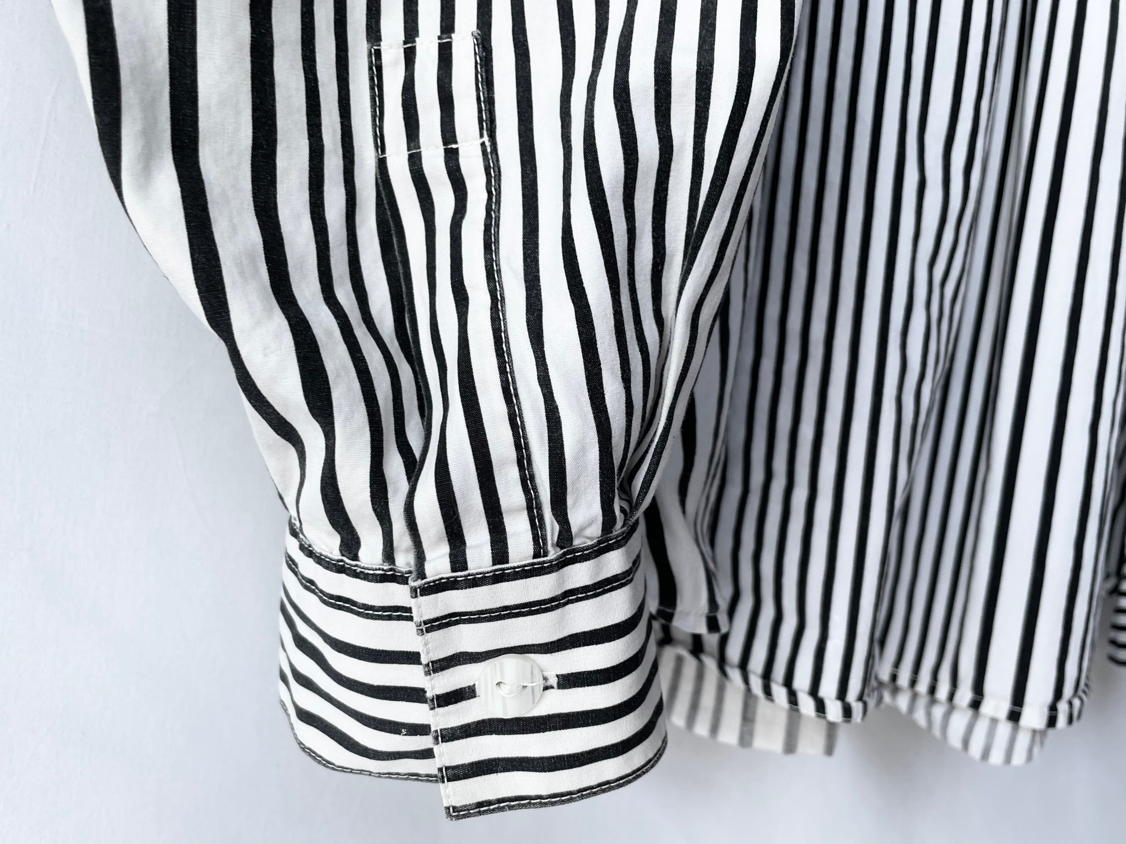 小ぶりな襟に、このブランドらしいしっかりと主張のあるワイドシルエット。