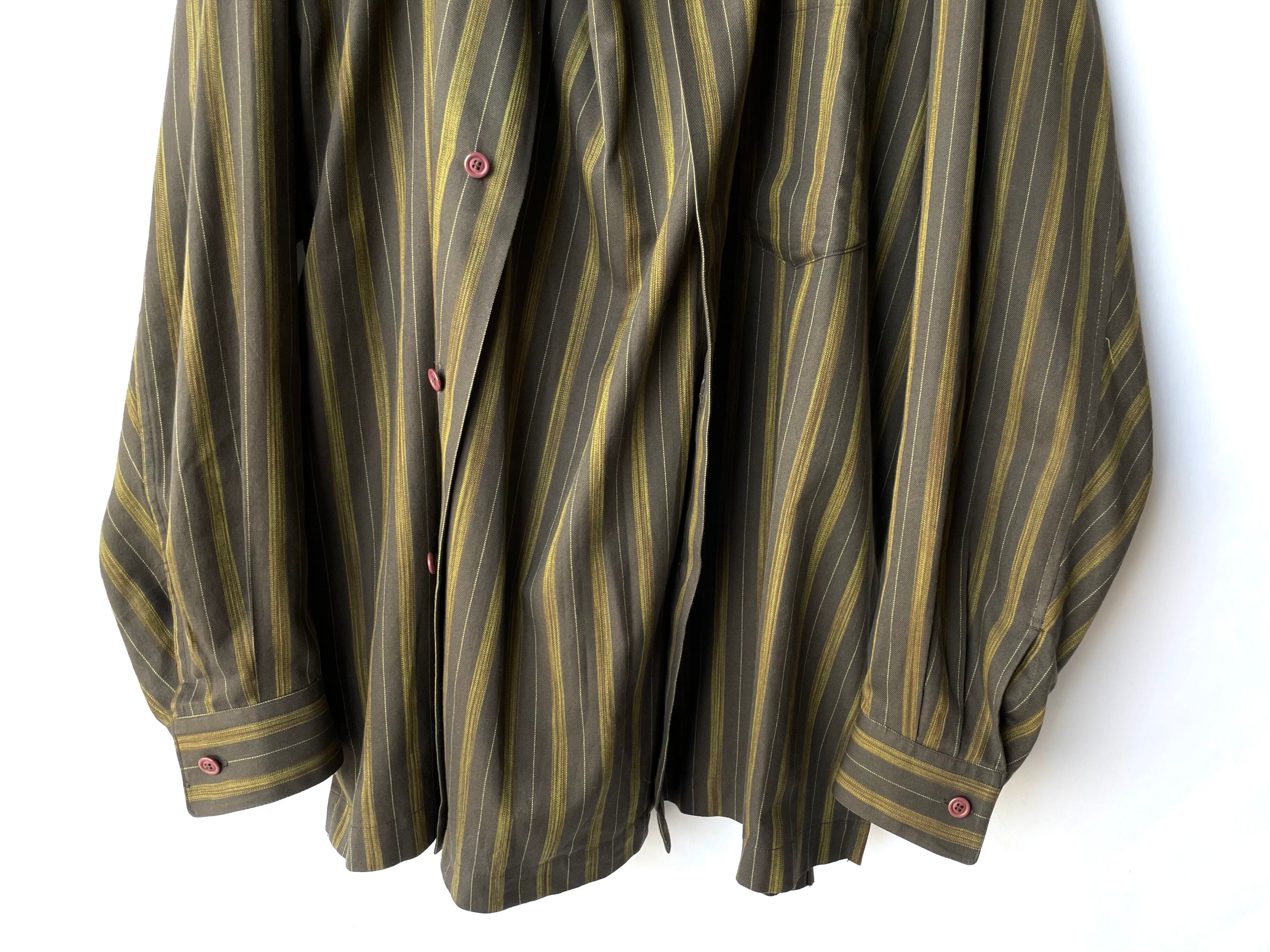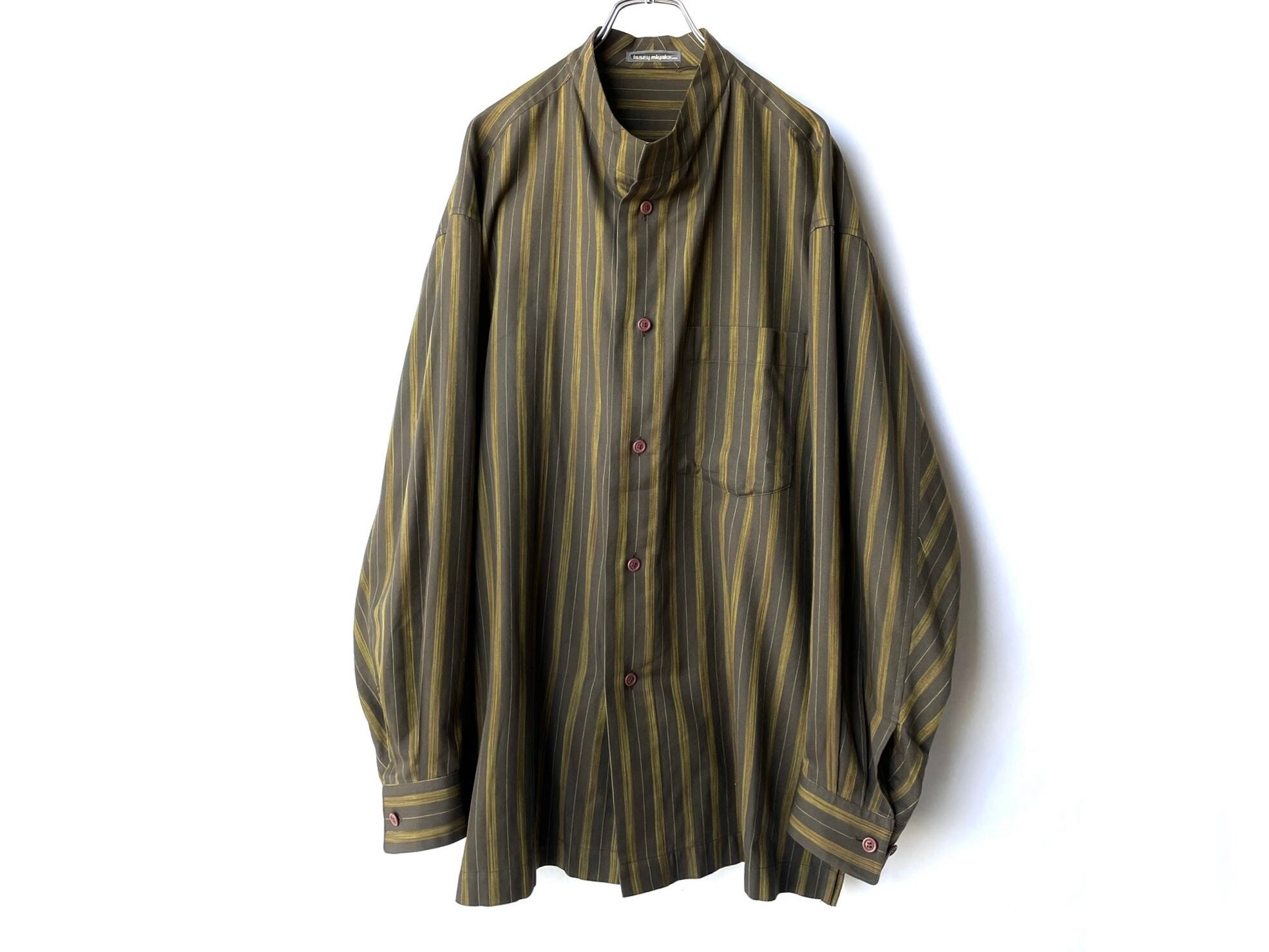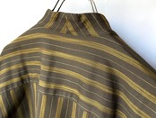 It has the look of a stand-up collar shirt with a high collar, and a unique pullover design where the placket is connected by the lining fabric.