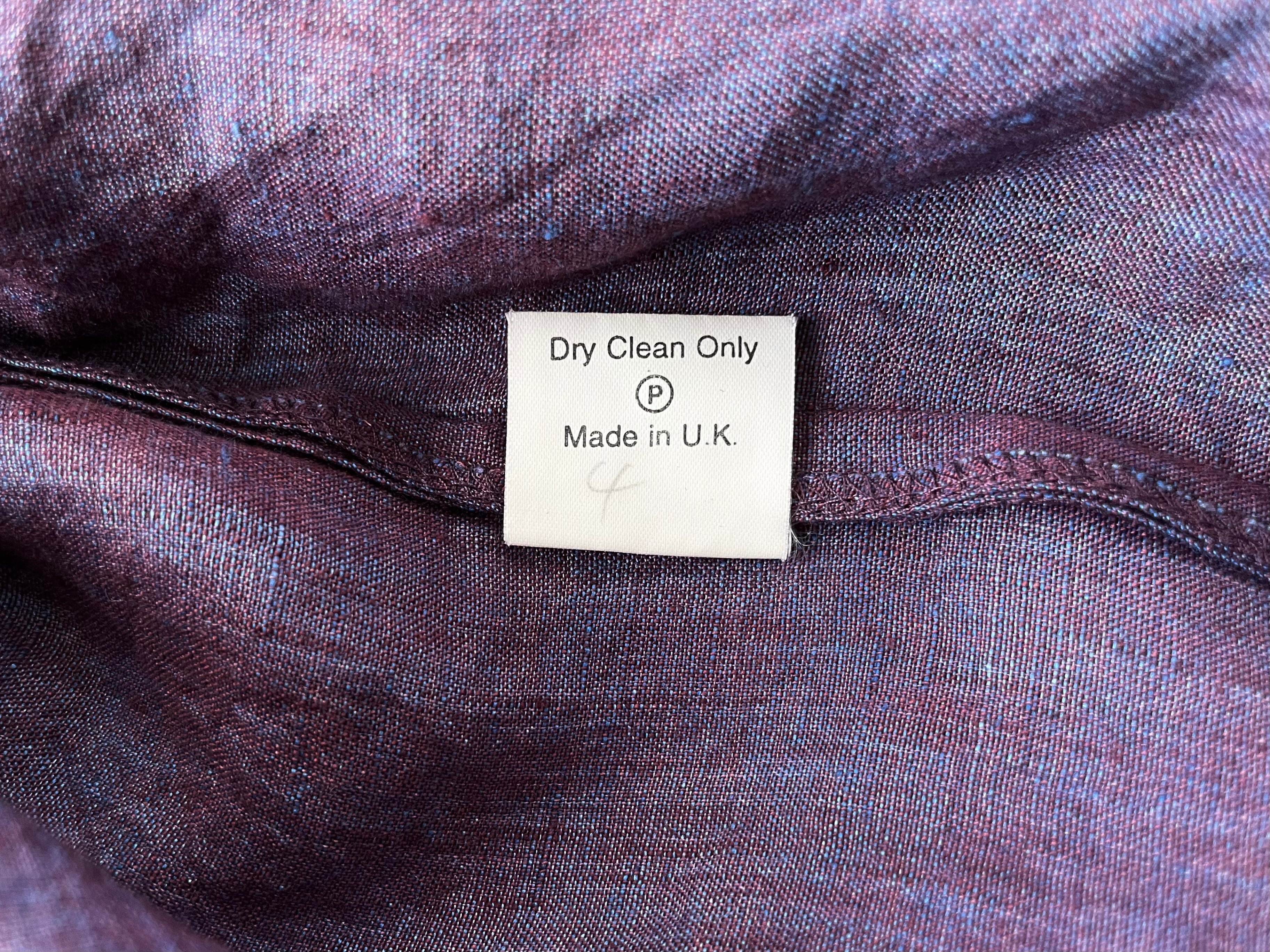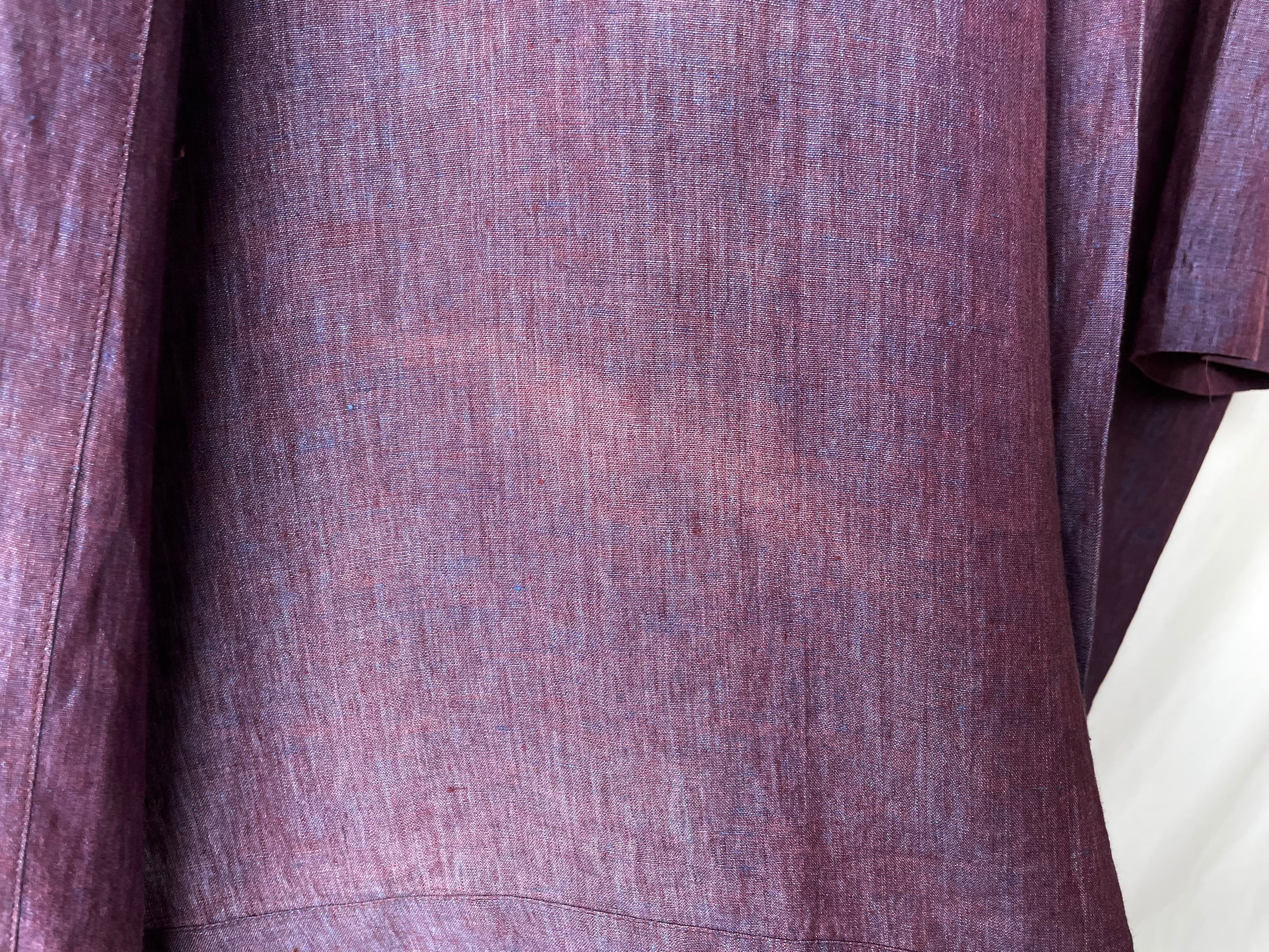 A pure linen with a wonderful expression, with bright blue/reddish brown threads.