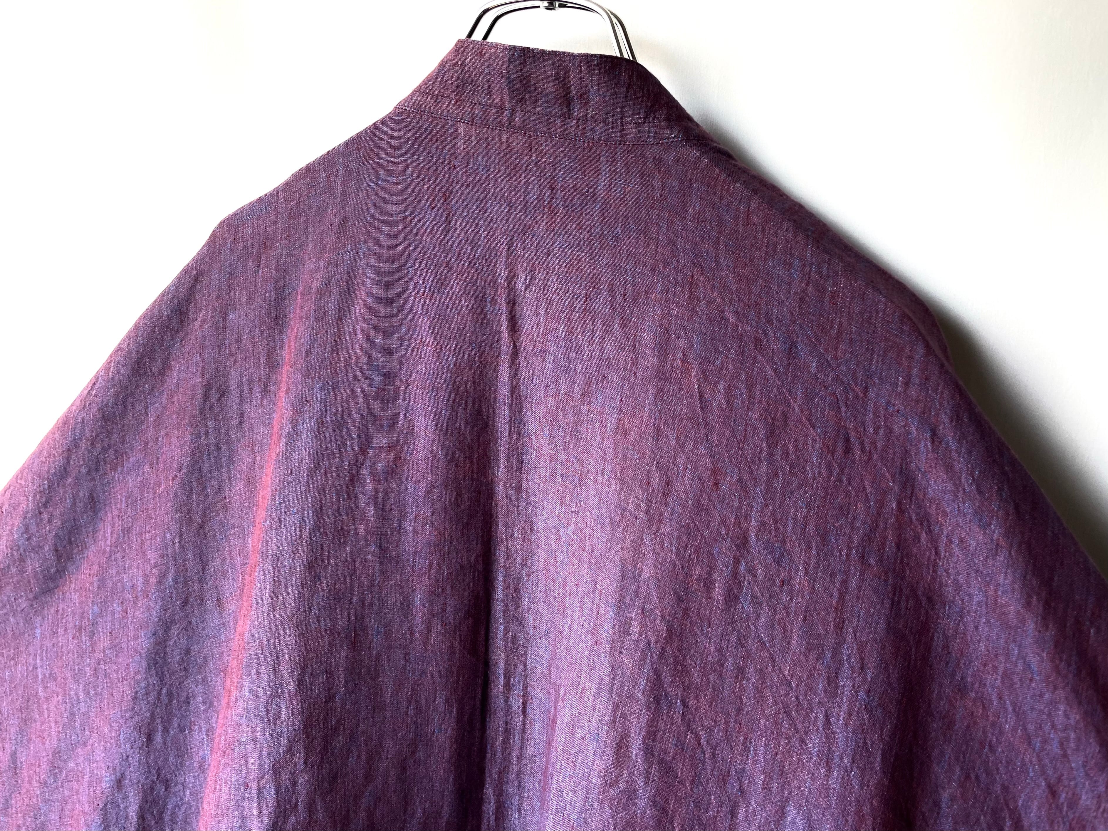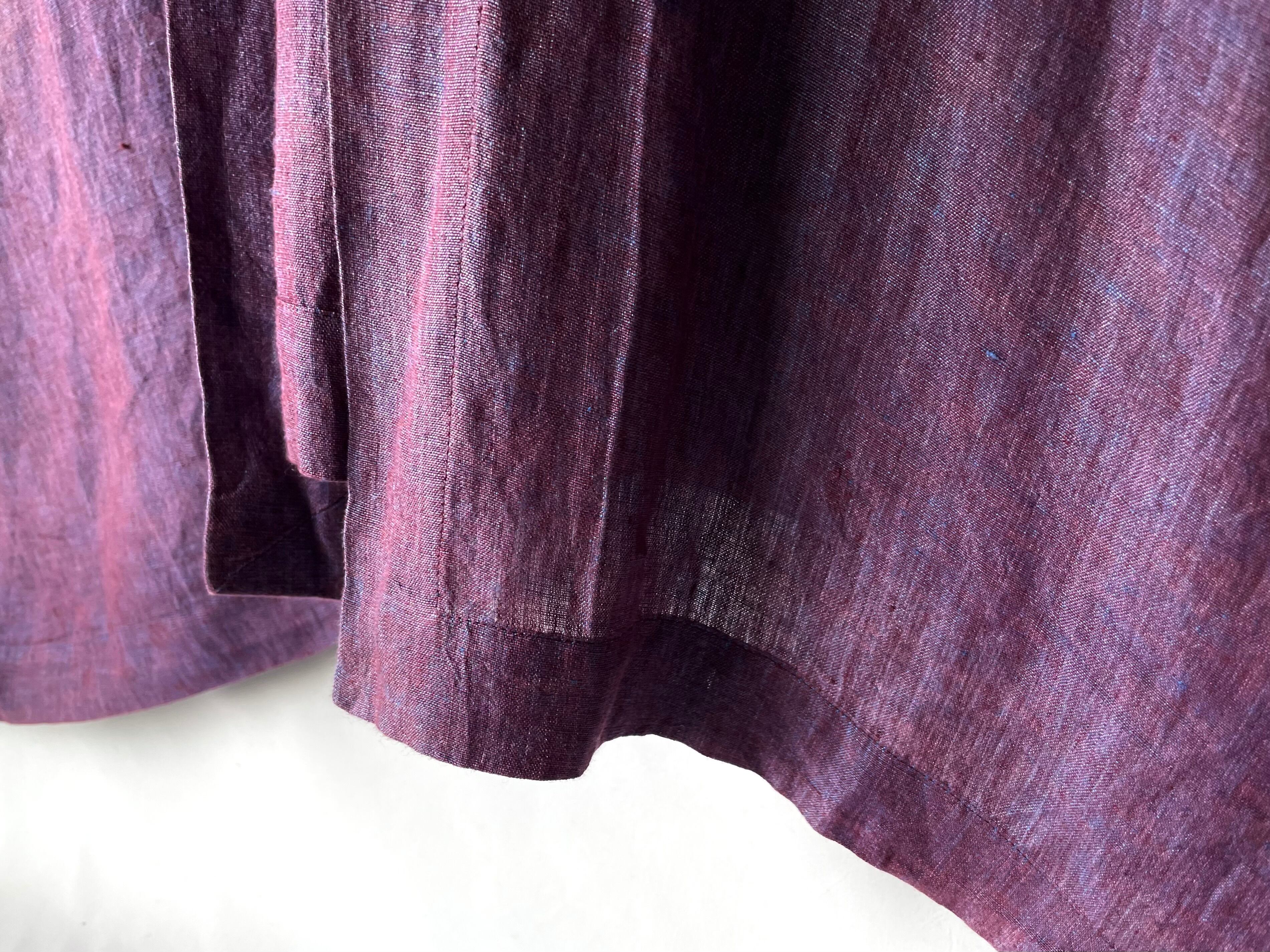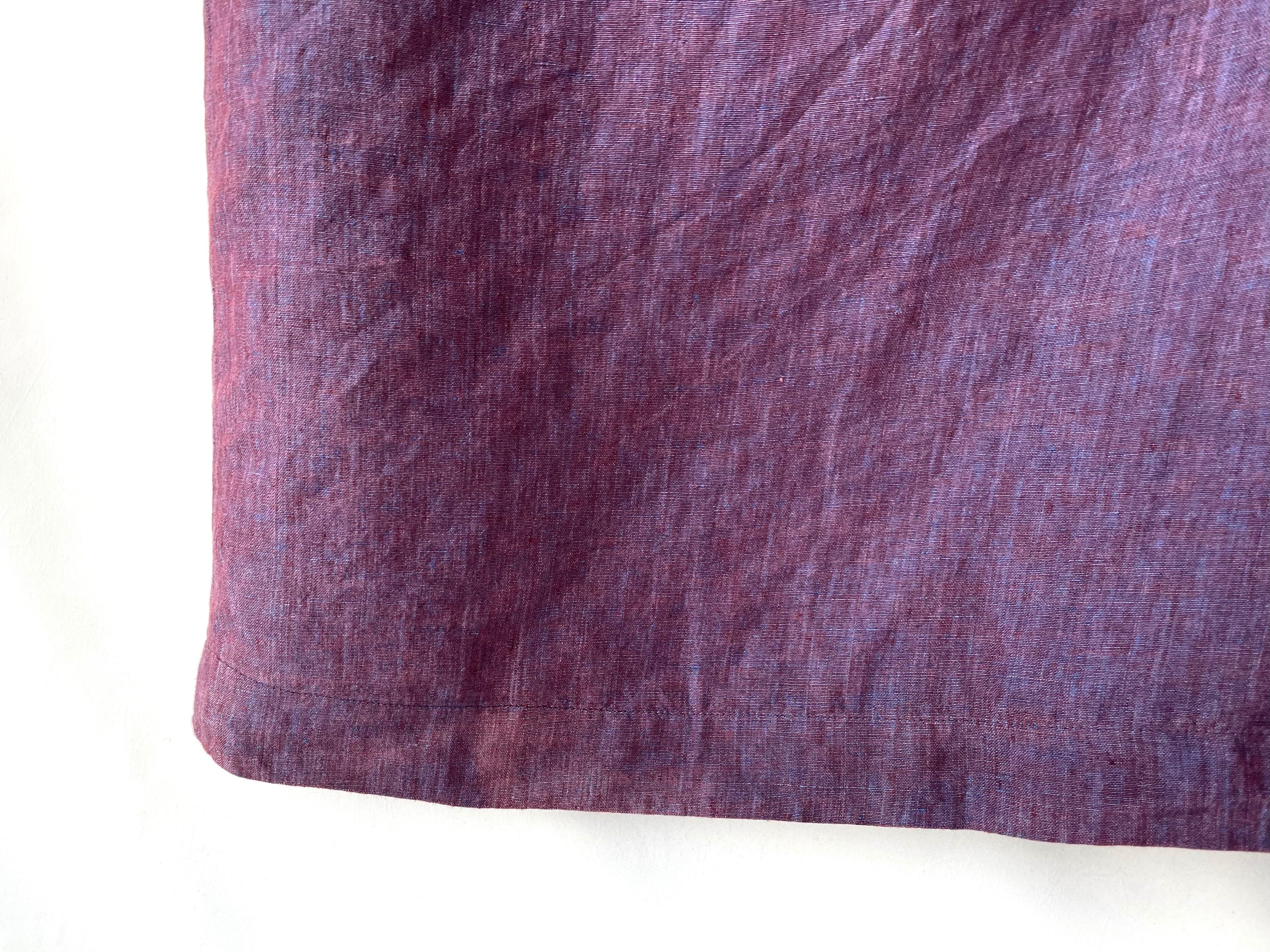 鮮やかな青/赤みの強いブラウンの糸が浮かぶ、素晴らしい表情のピュアリネン。