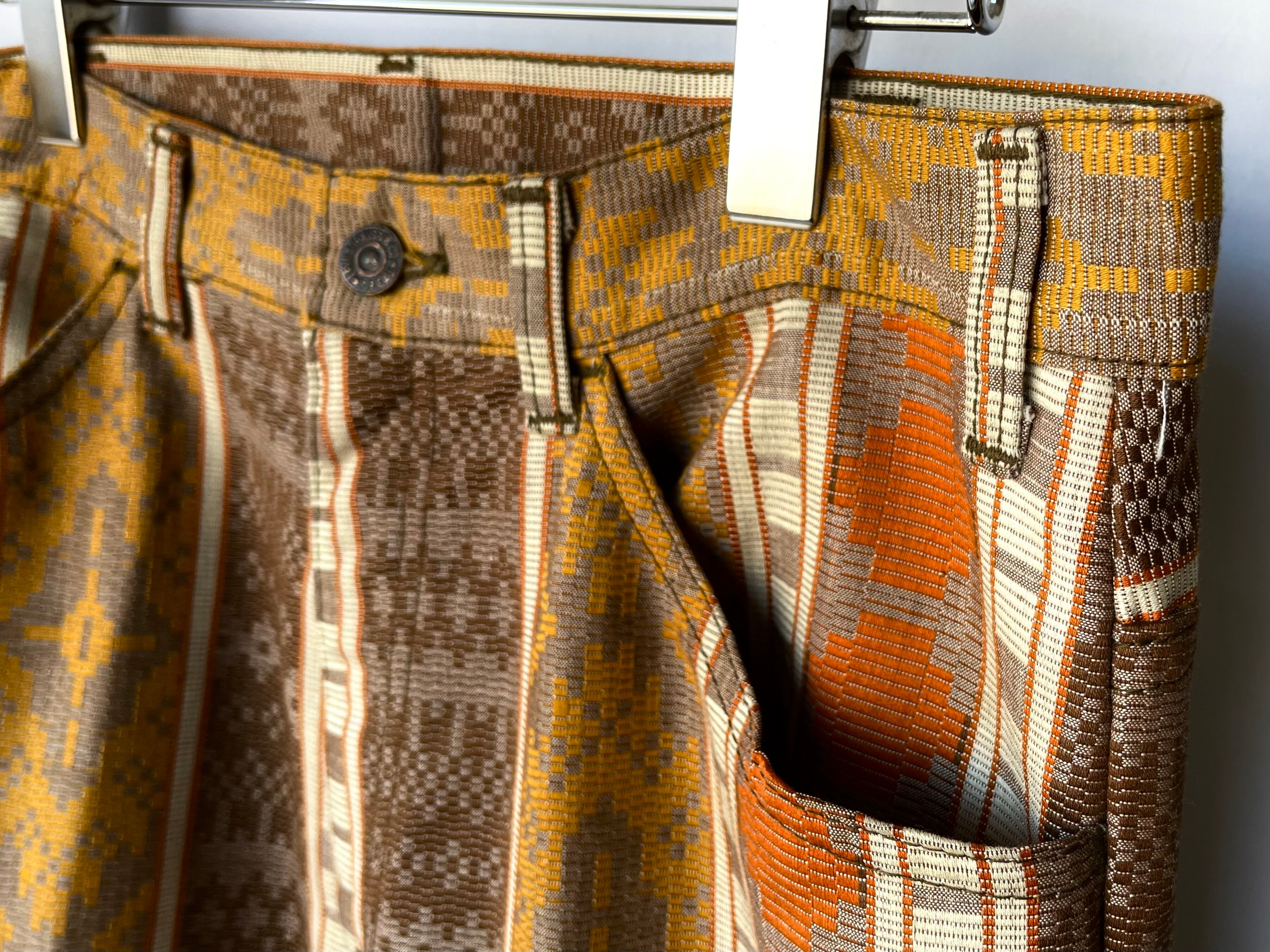 ブラウンベースに落ち着きのあるオレンジ/マスタード/アイボリーが混じる、素晴らしい配色の一本。