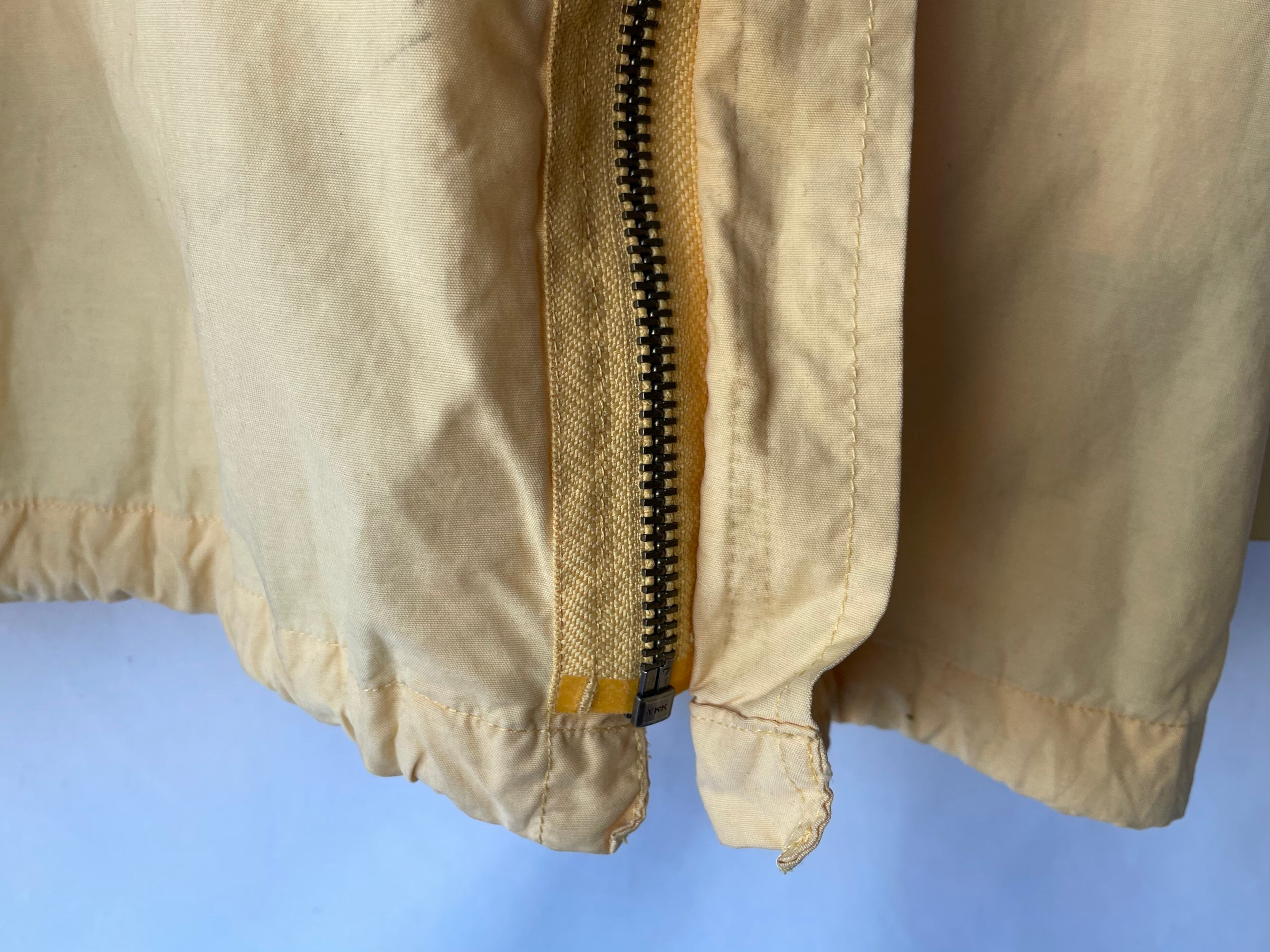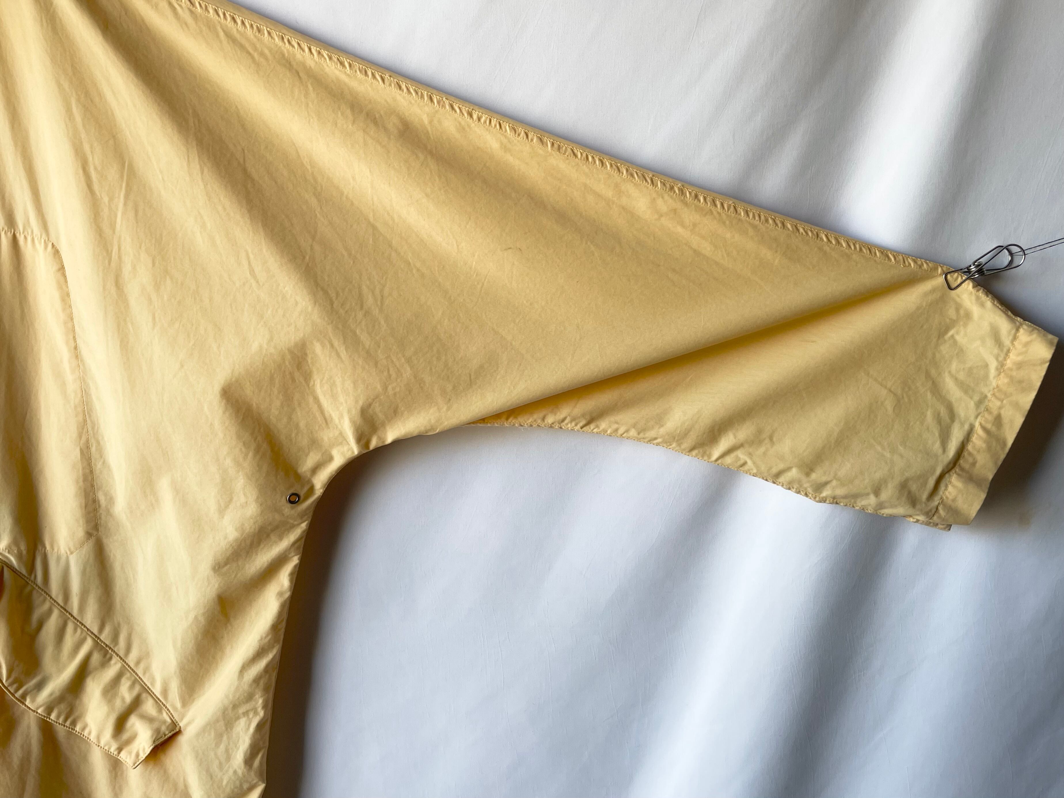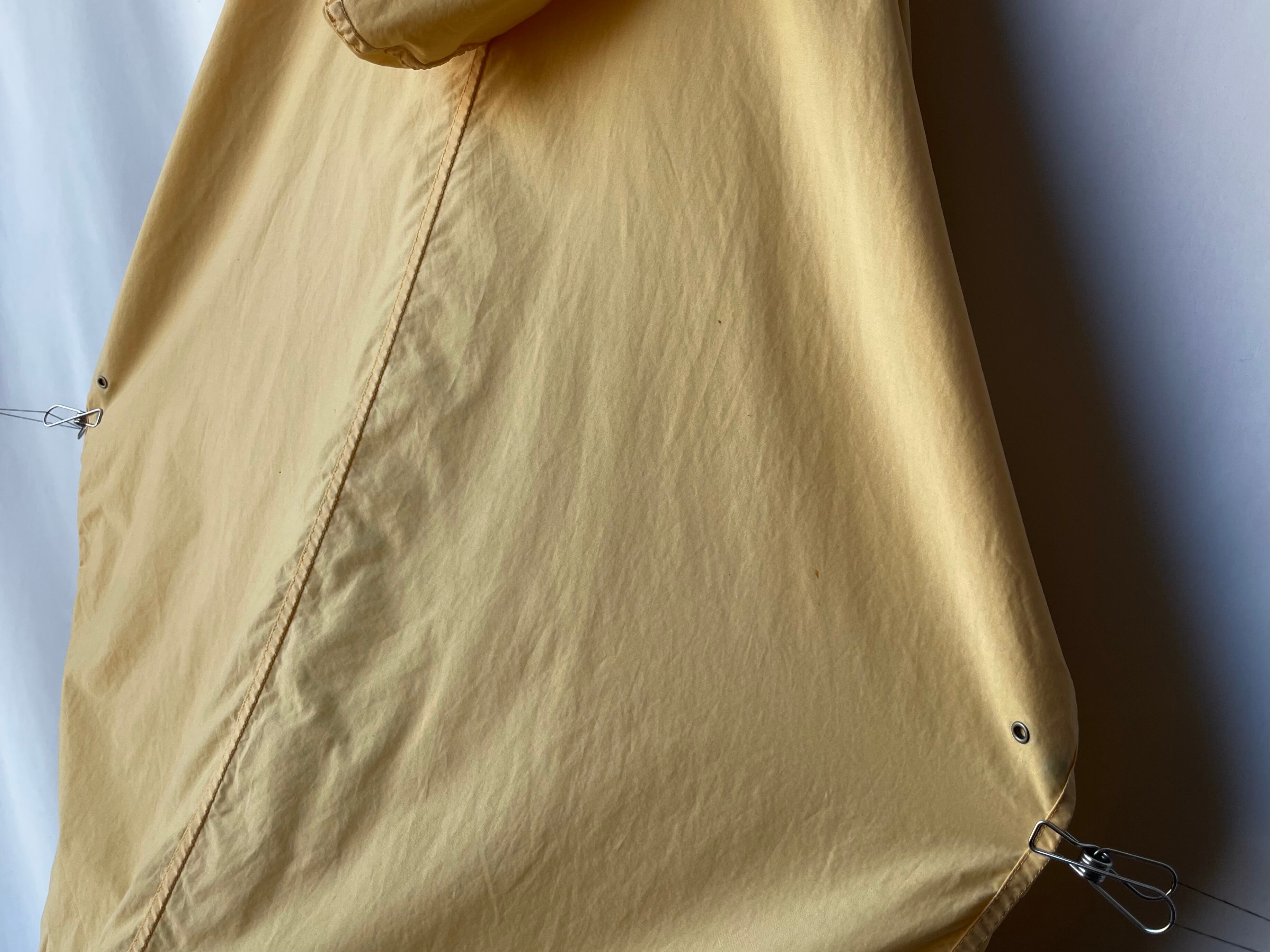 高密度に織られた薄手のコットン/ナイロンによる、鈍い艶のある淡いペールイエロー。