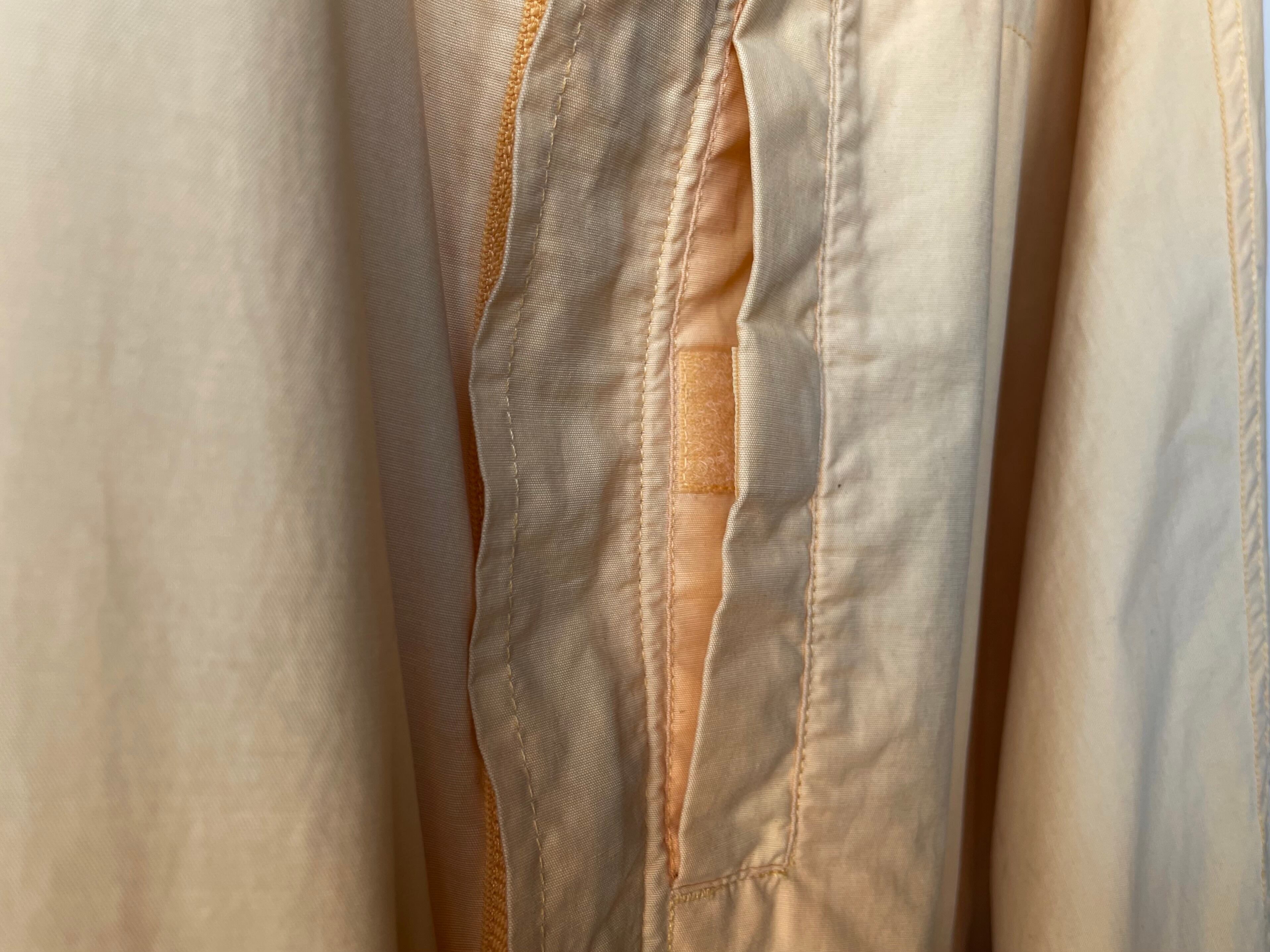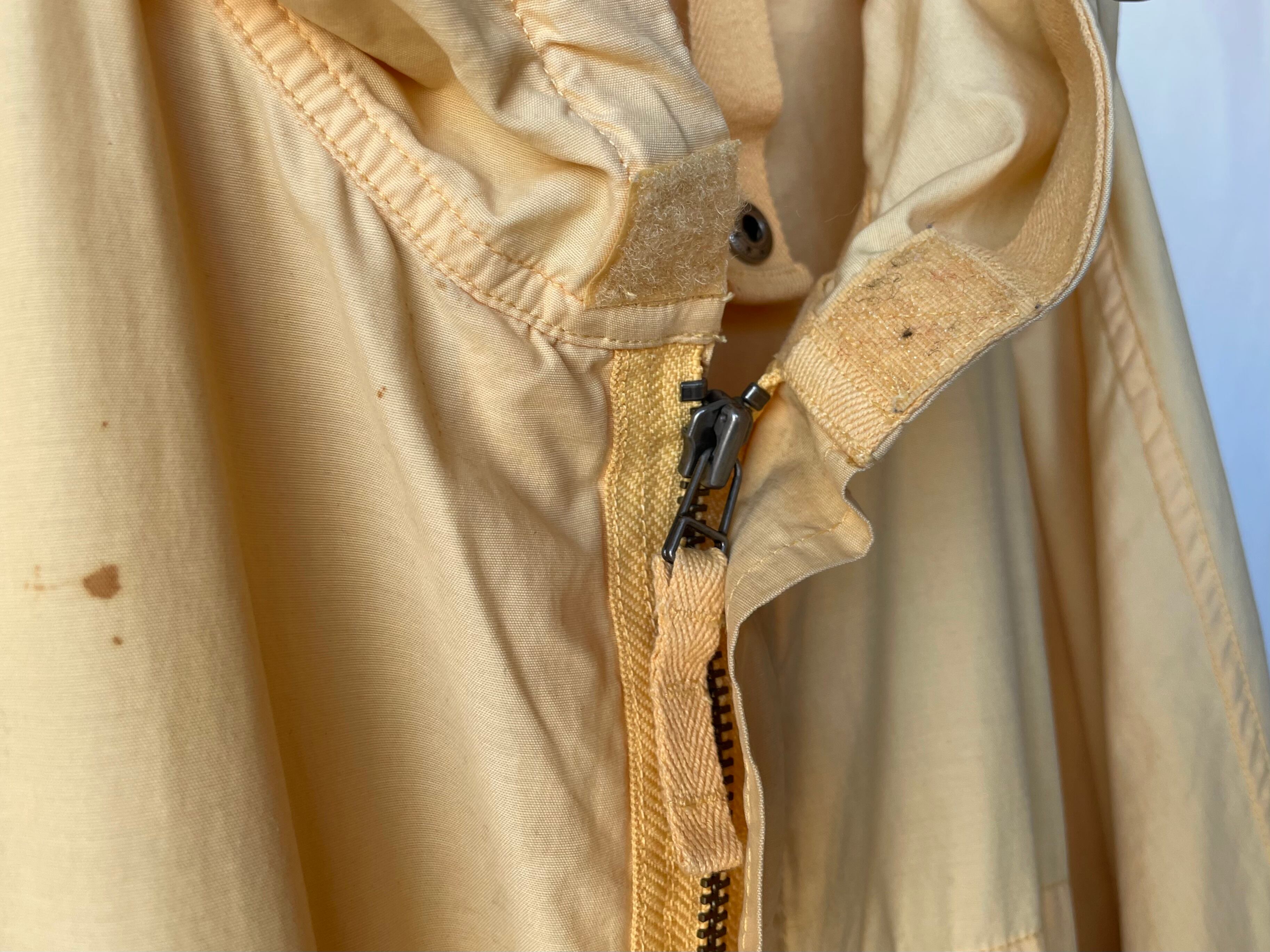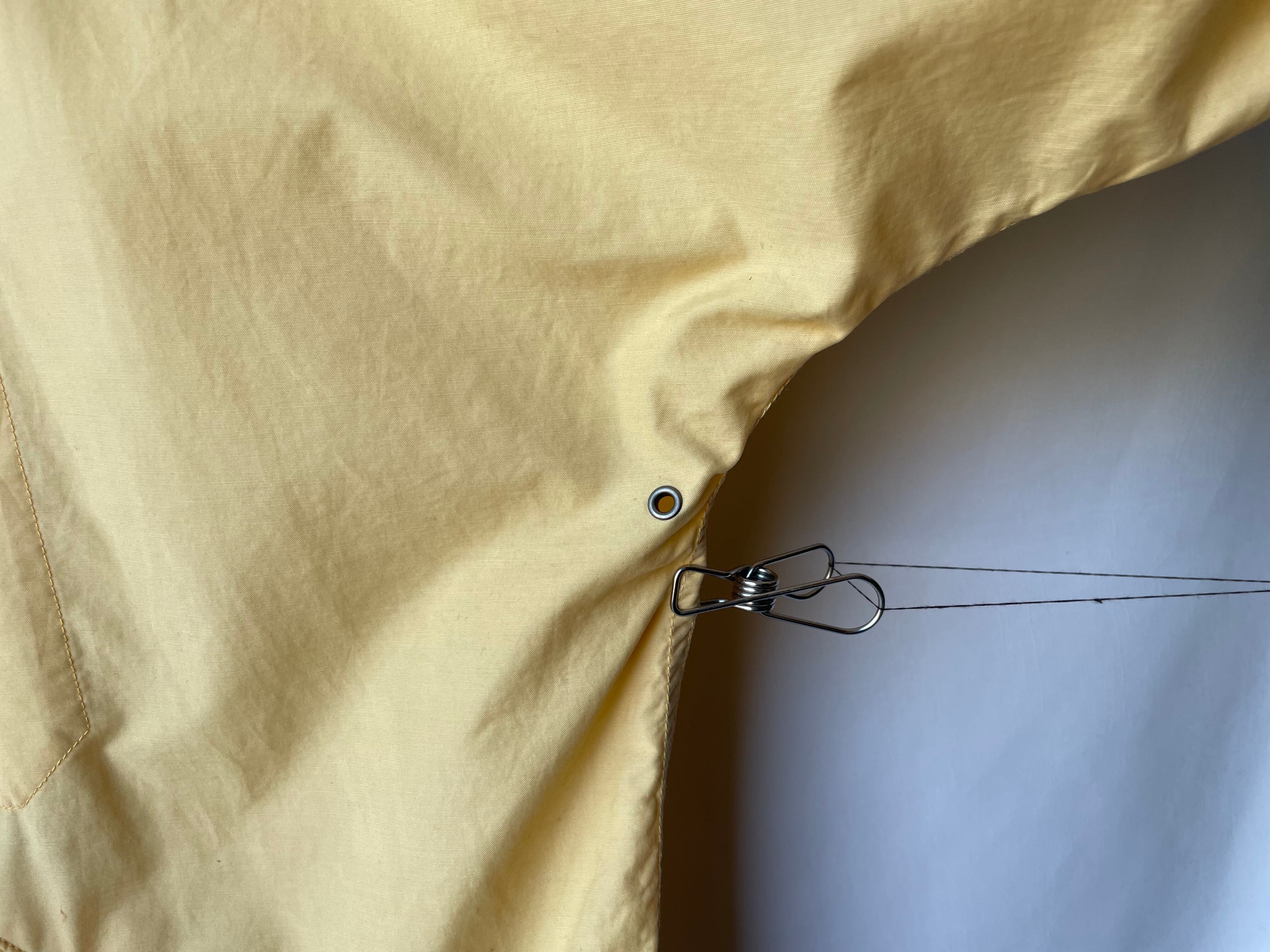 高密度に織られた薄手のコットン/ナイロンによる、鈍い艶のある淡いペールイエロー。