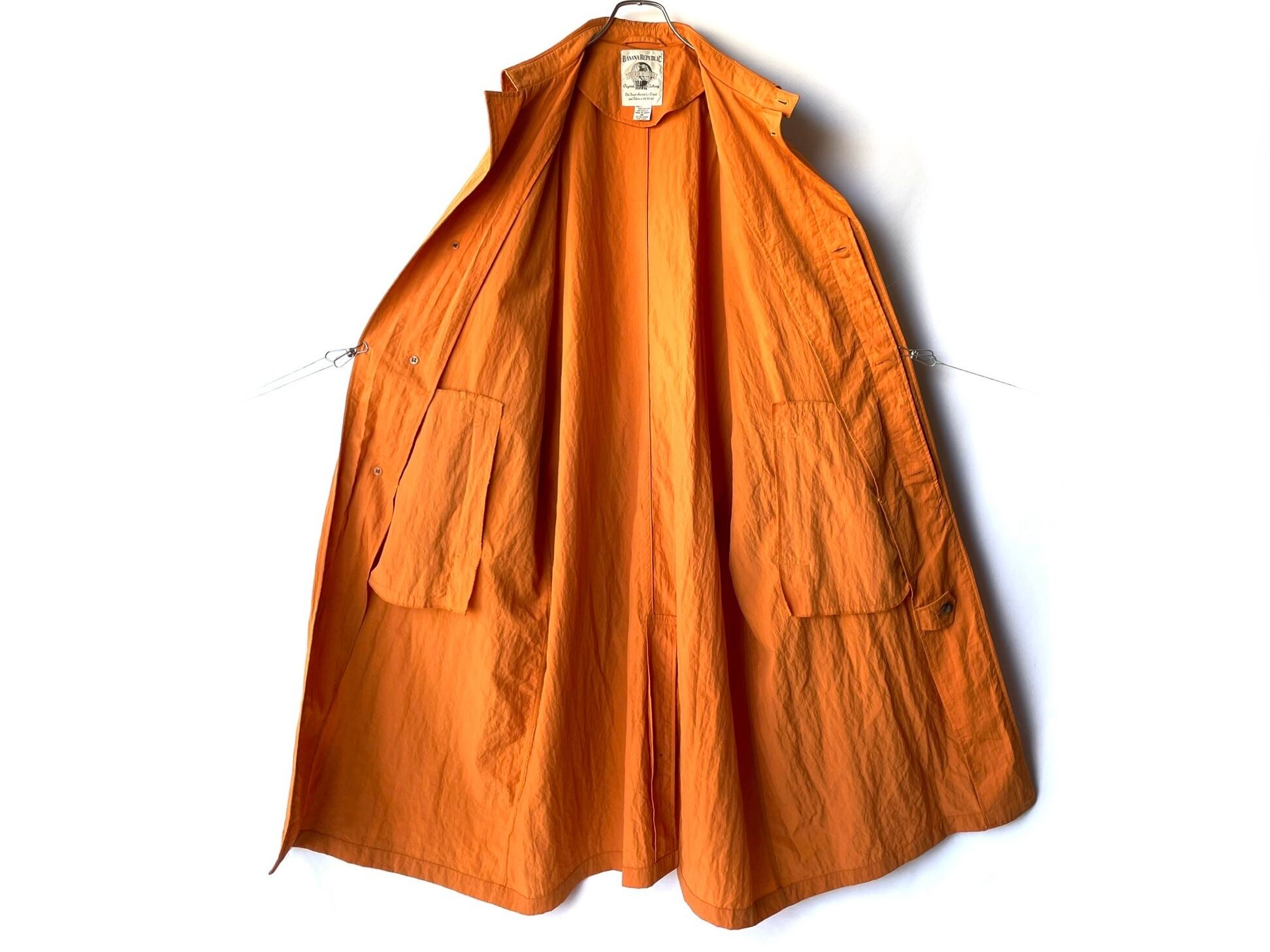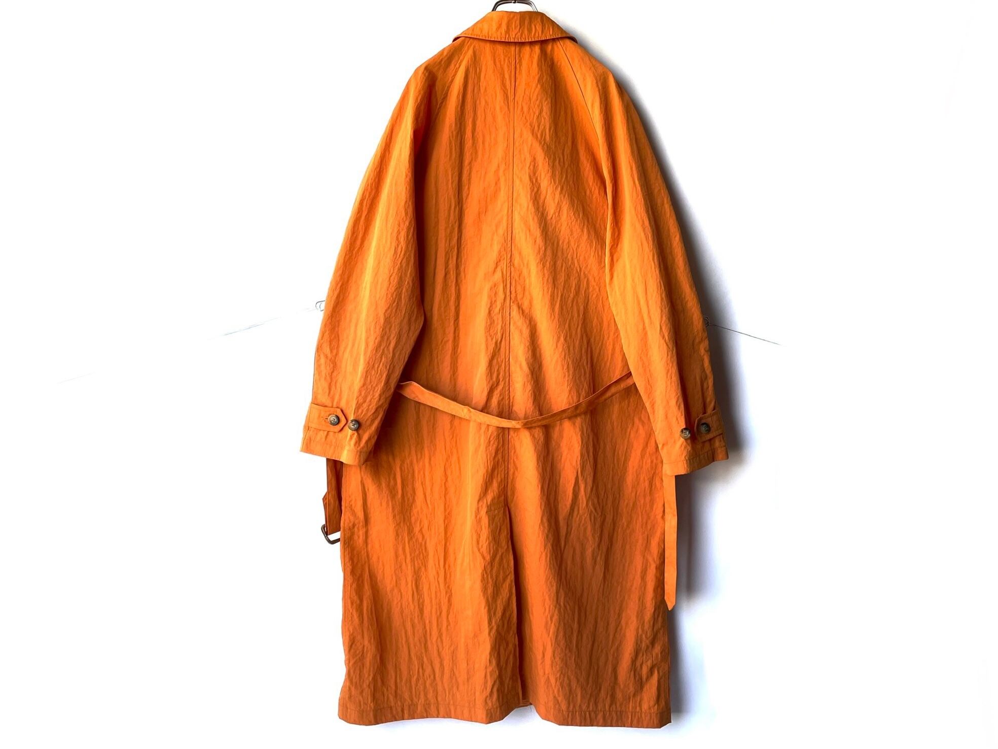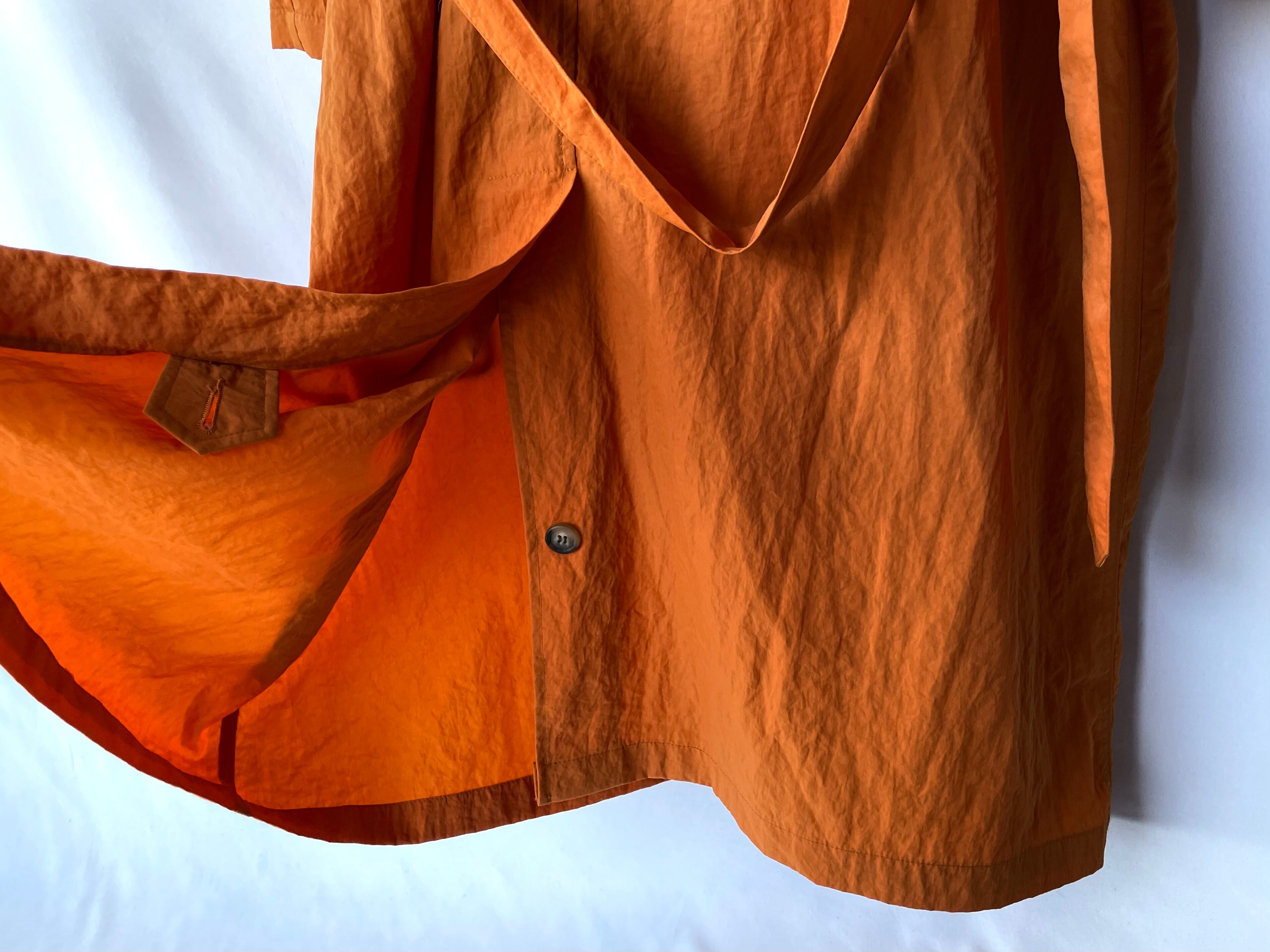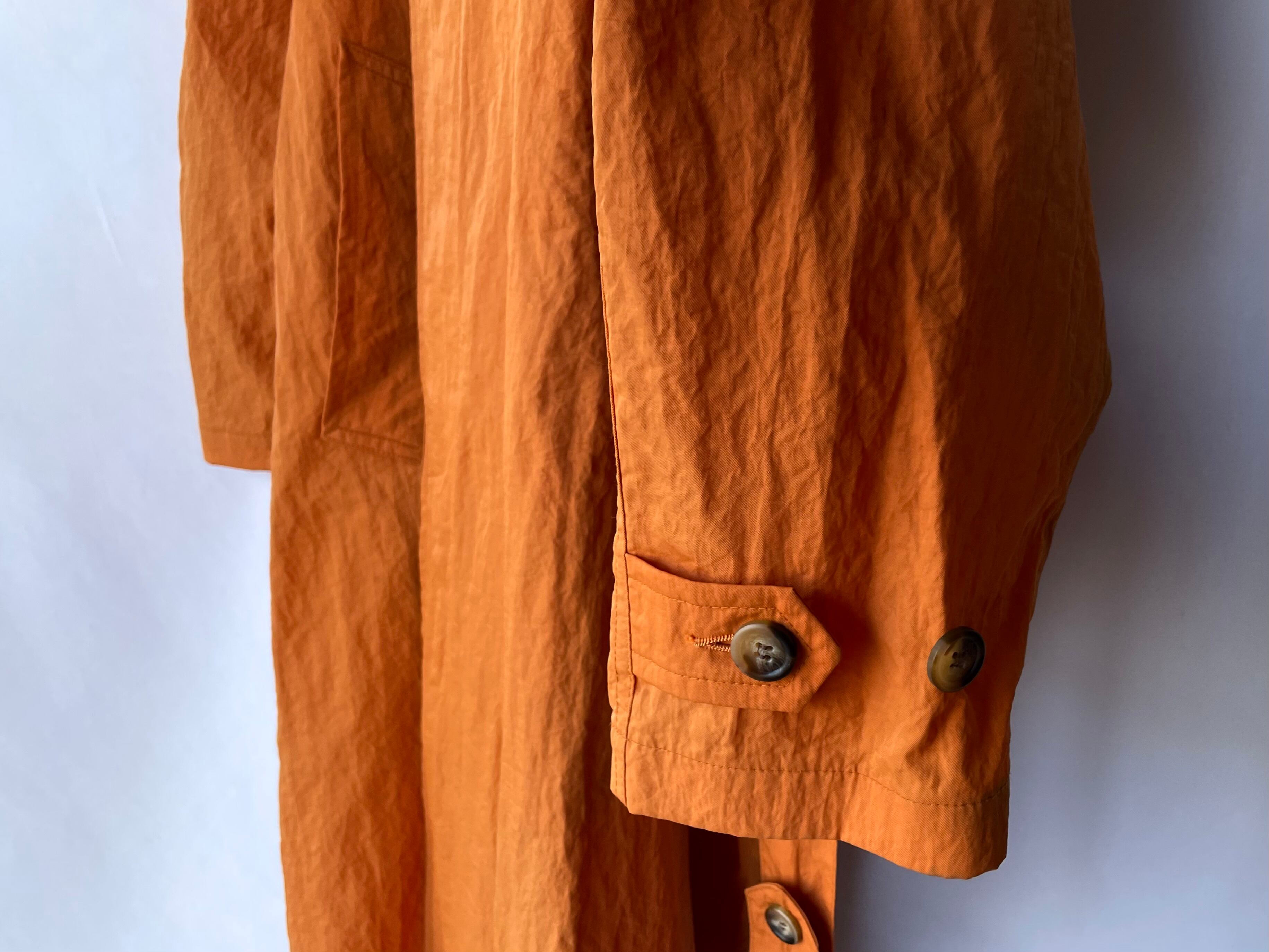 シワ感のあるナイロンの一枚地による、ライトウェイトなステンカラーコート。