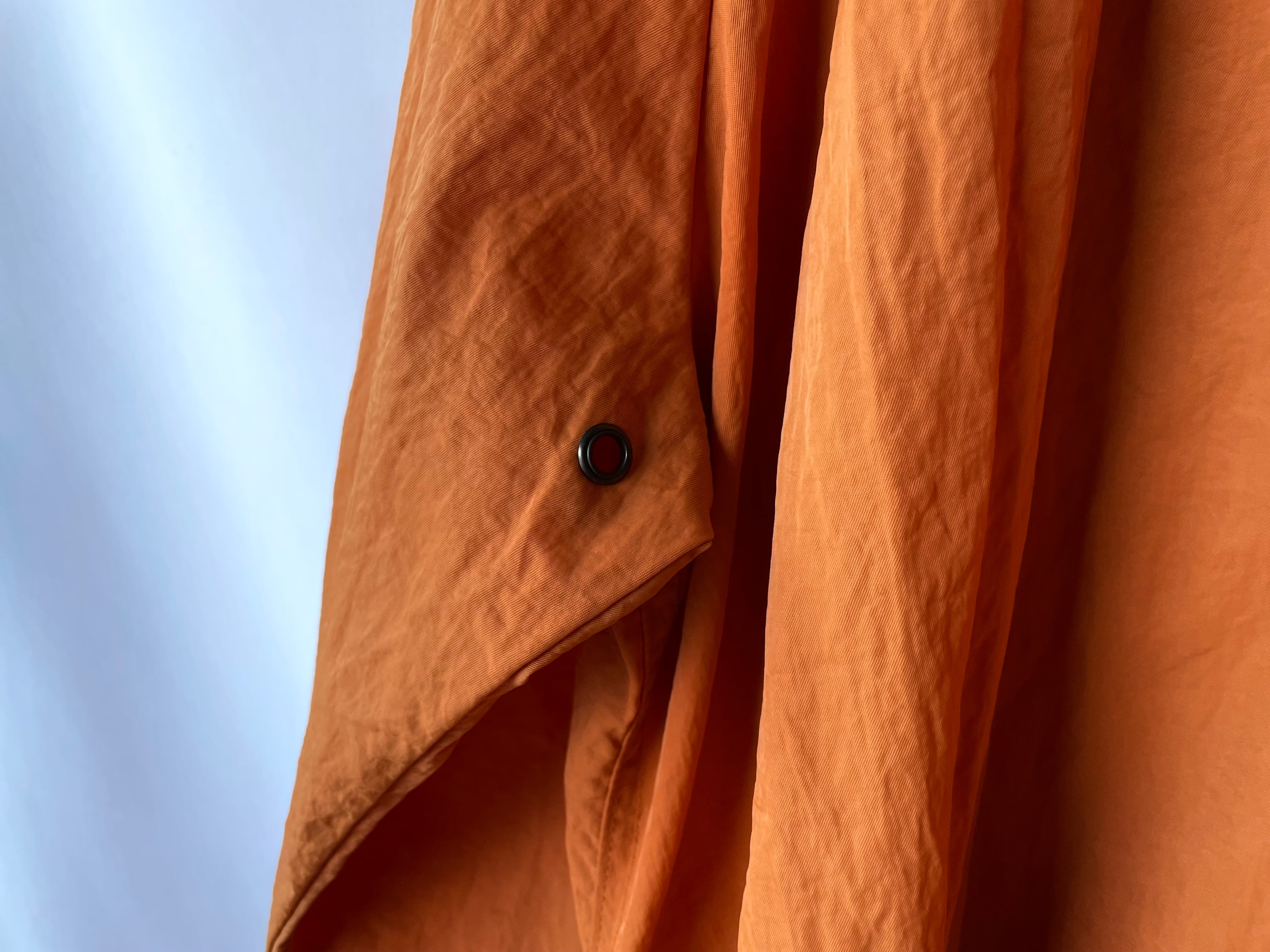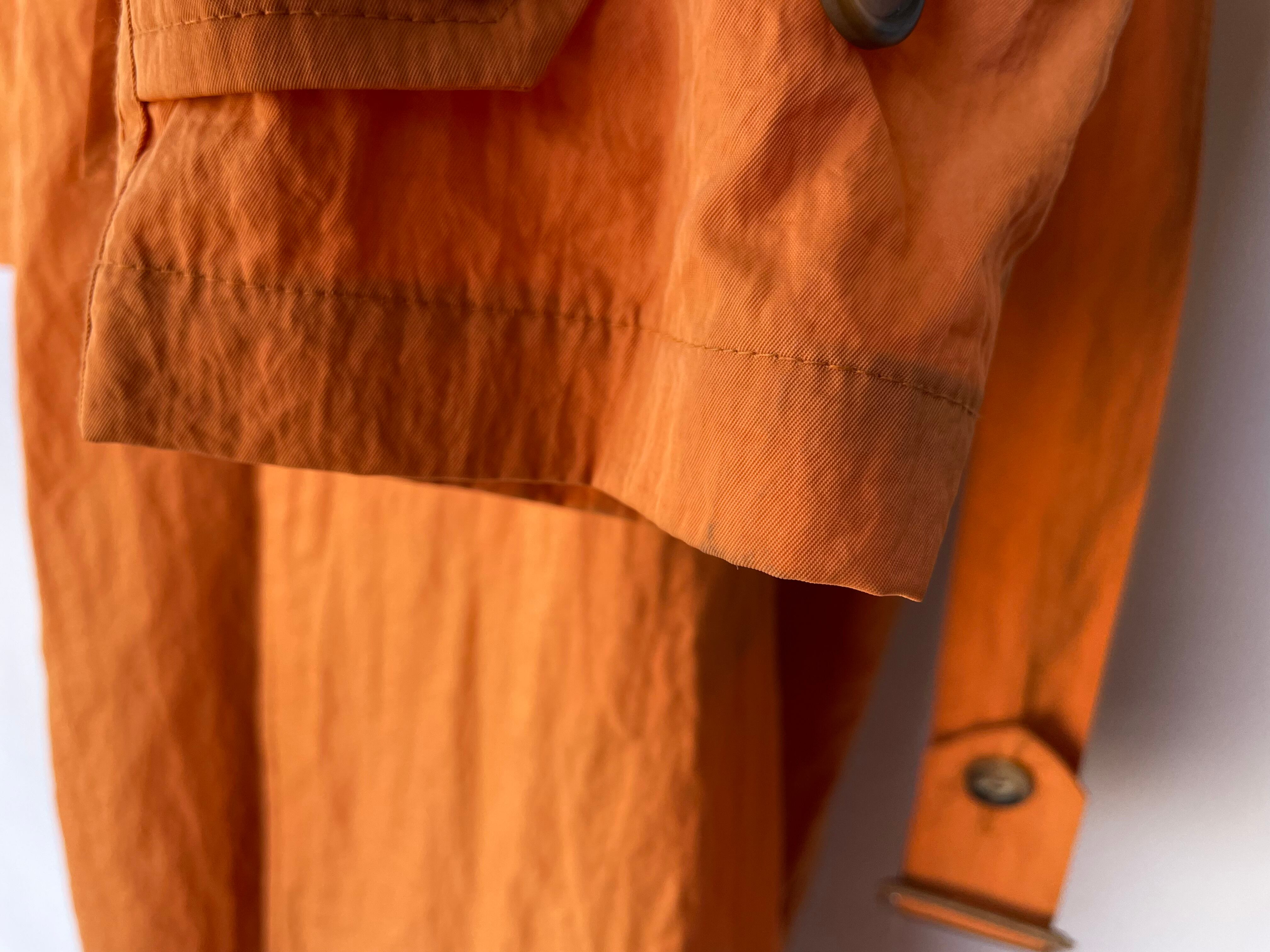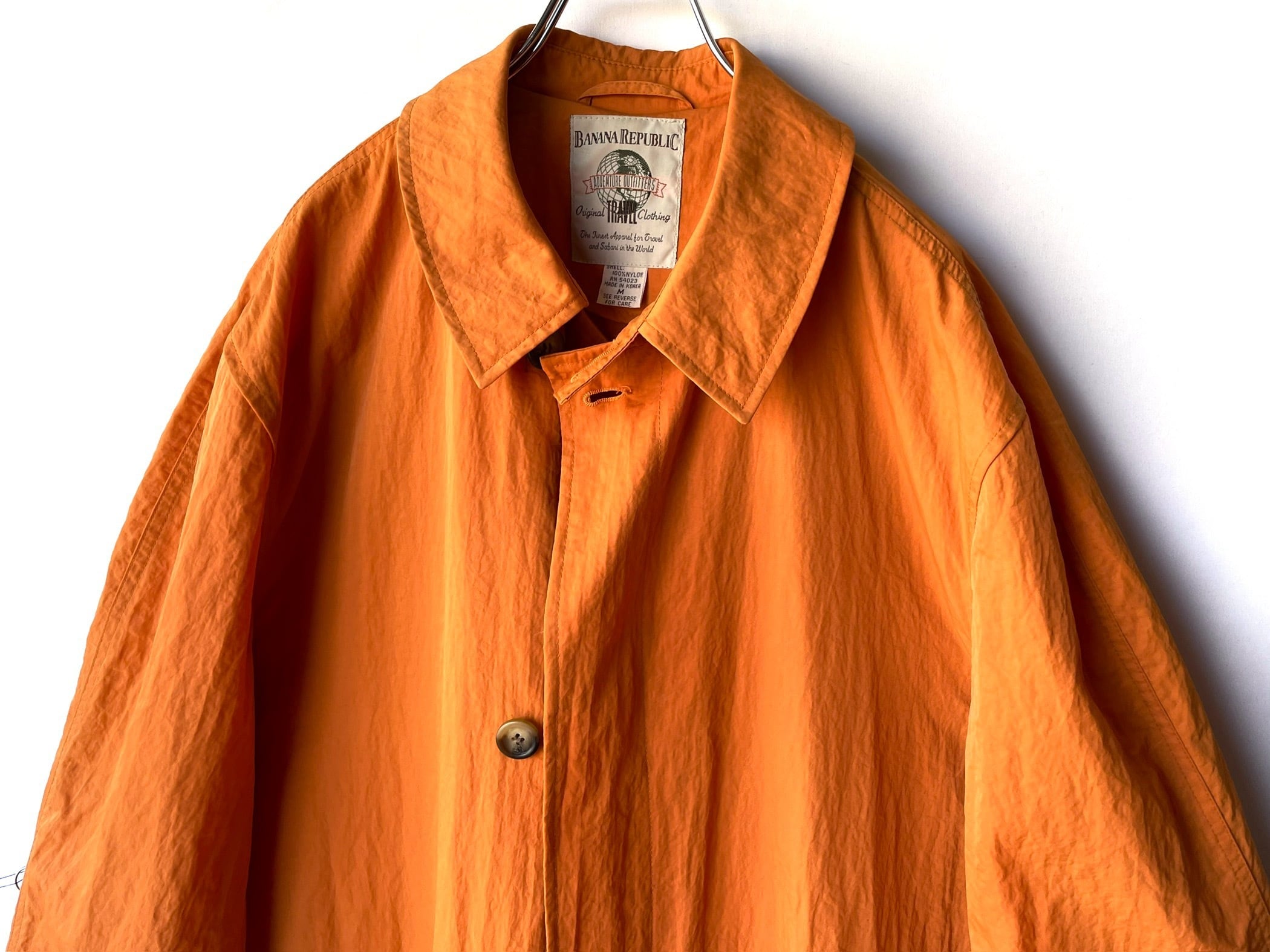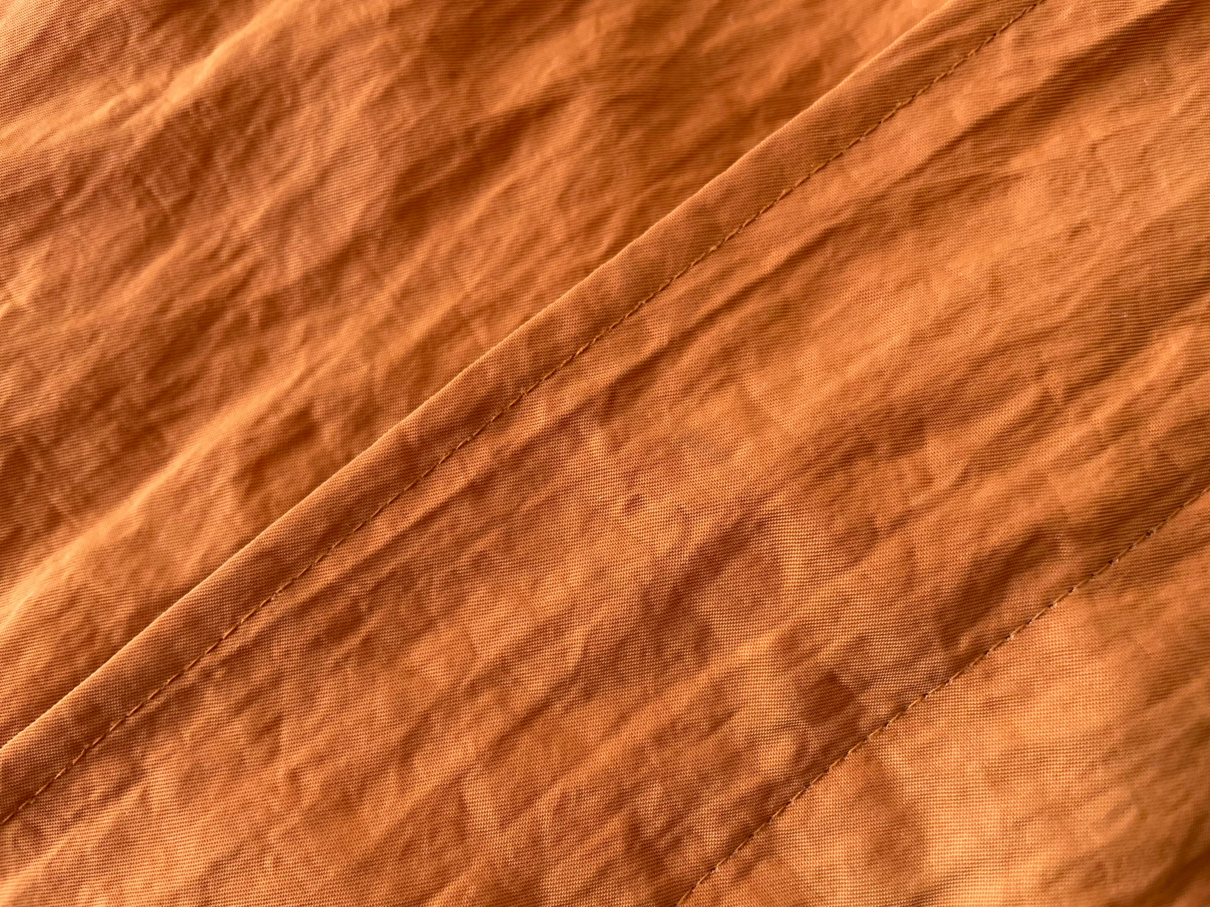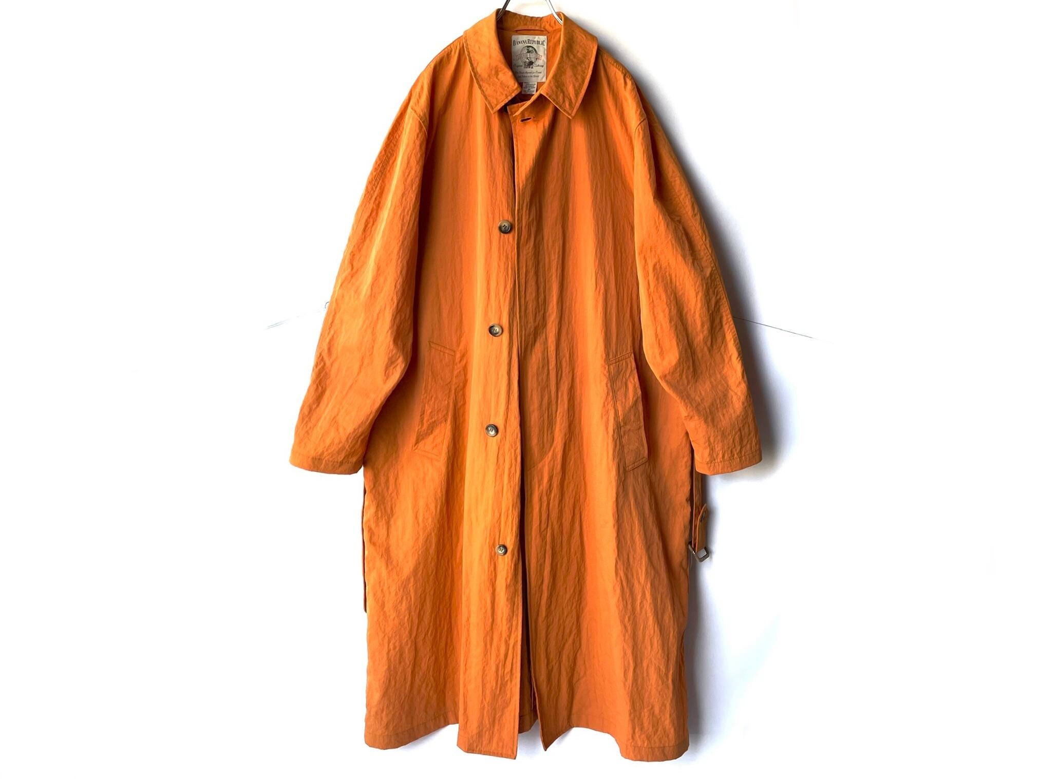シワ感のあるナイロンの一枚地による、ライトウェイトなステンカラーコート。
