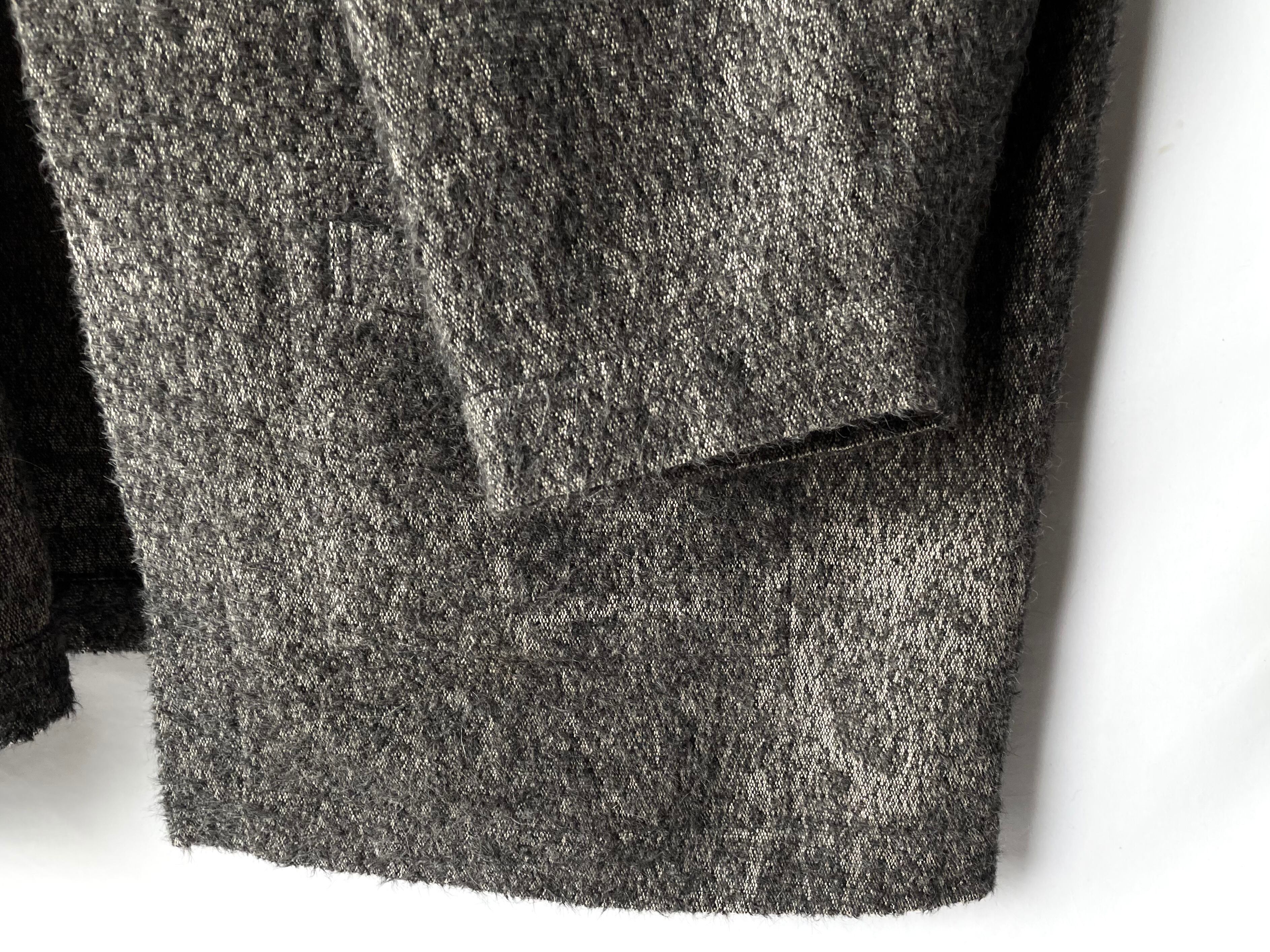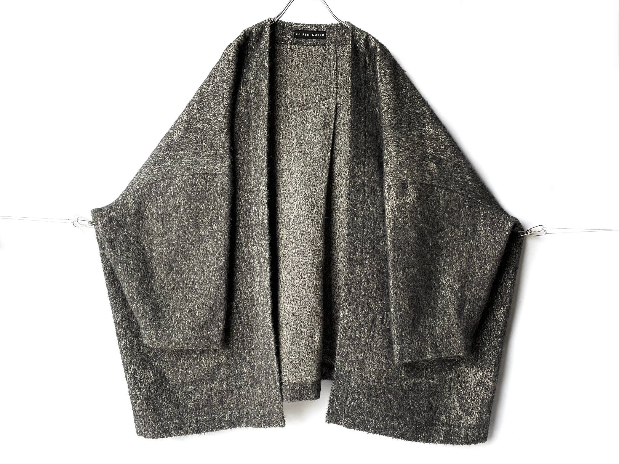 グレーベースに深いチャコールの毛糸が乗せられた様な、独特な奥行きのある織生地。