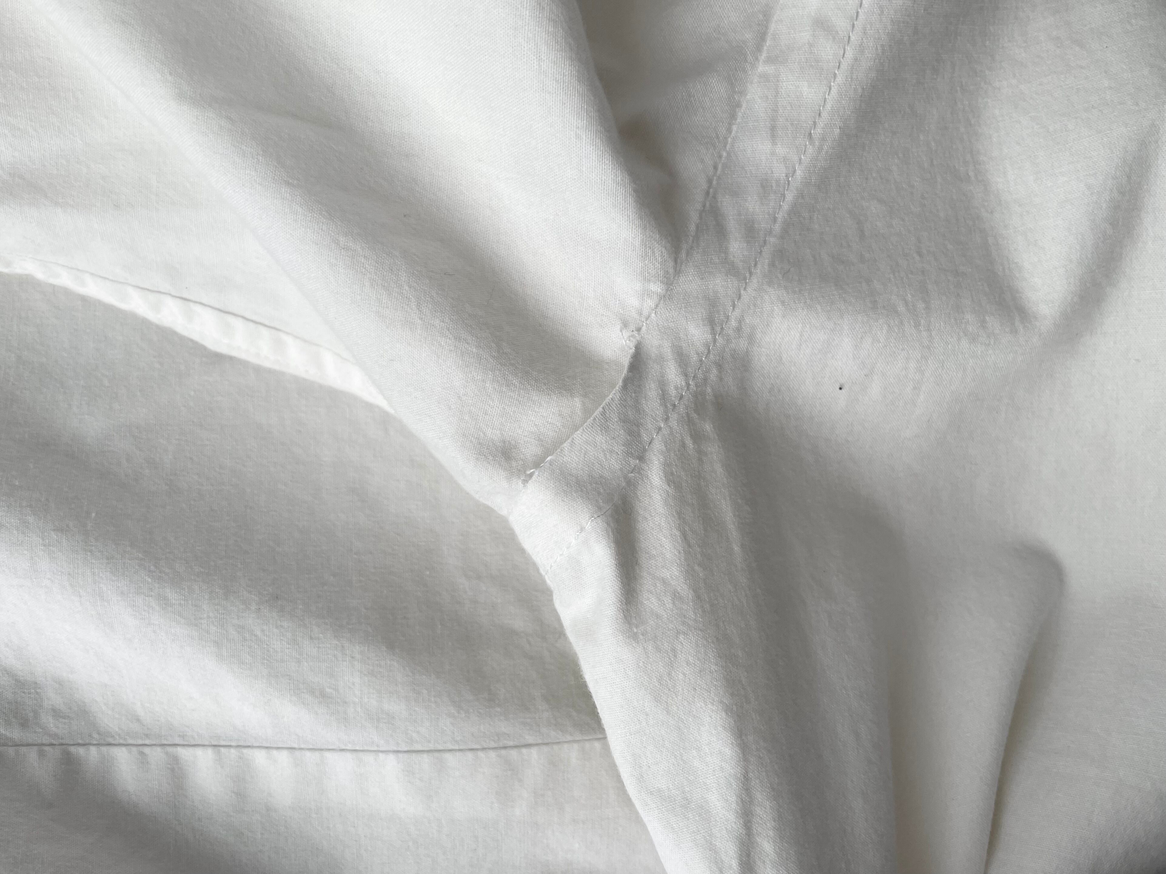 袖先はダブルカフス、襟縁の工夫が見えるダブルステッチ。