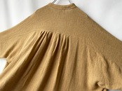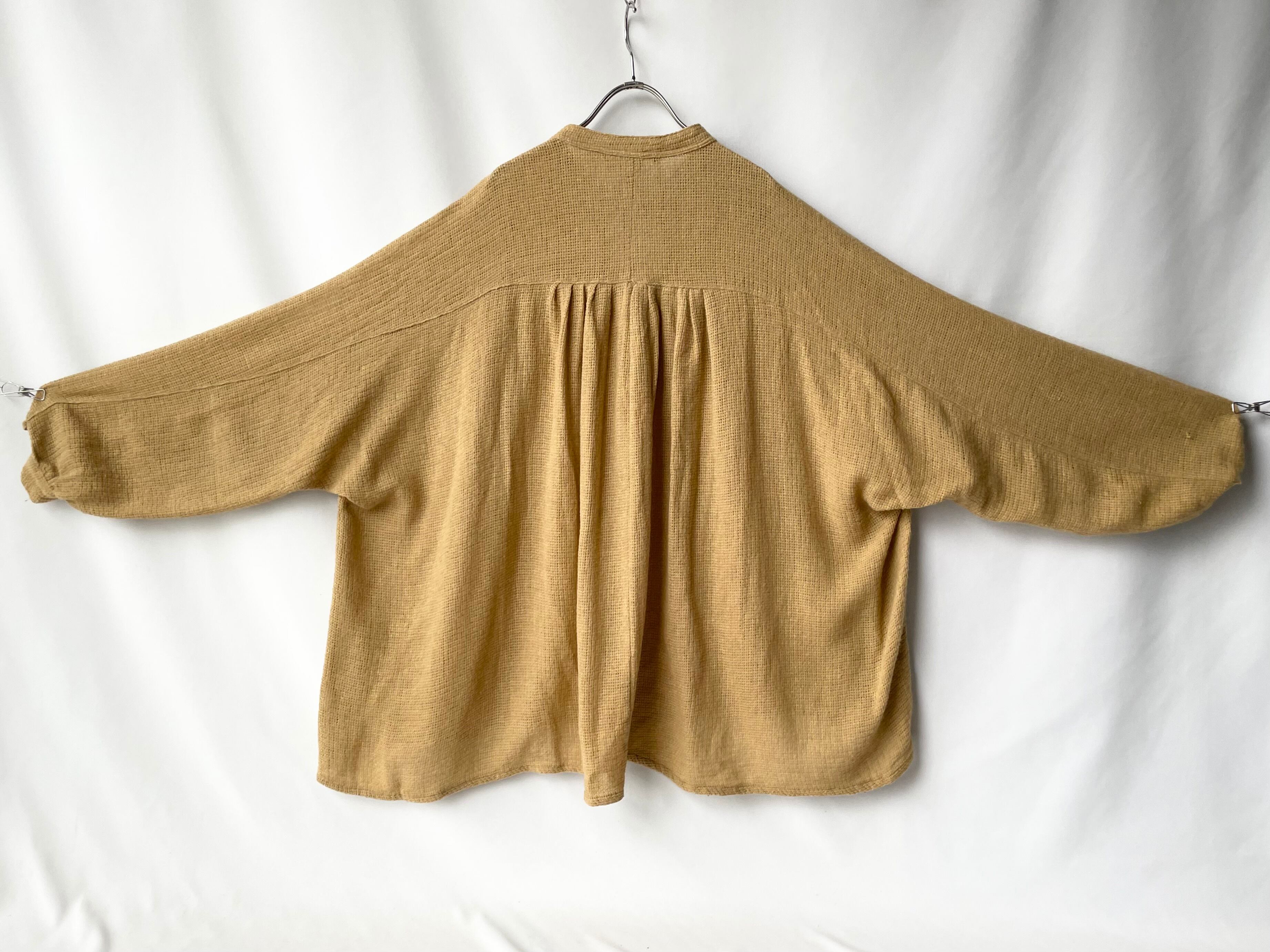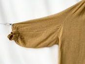 シャツアイテムにおいてのラグランスリーブ、肩周り/背面のギャザーデザイン。