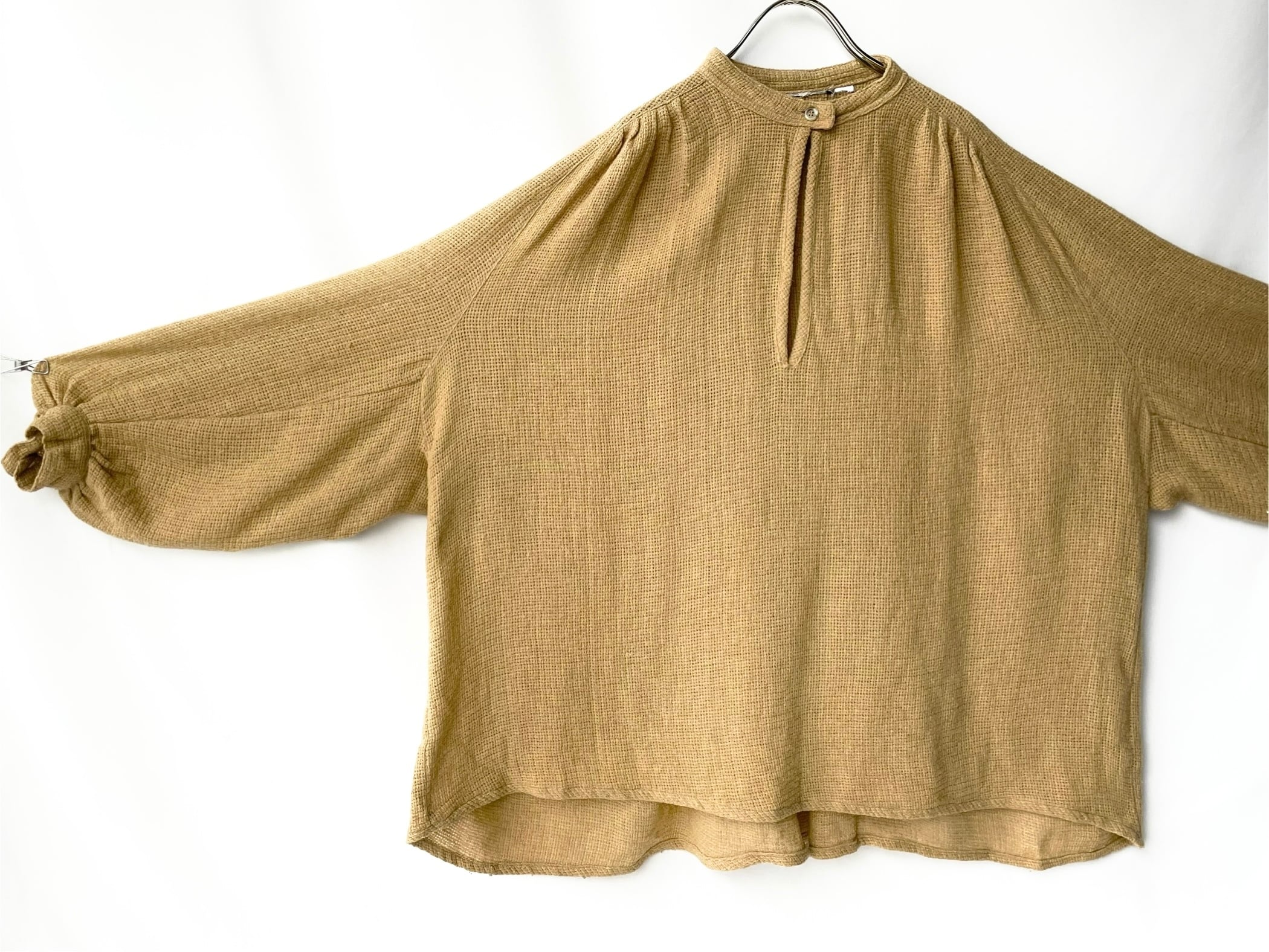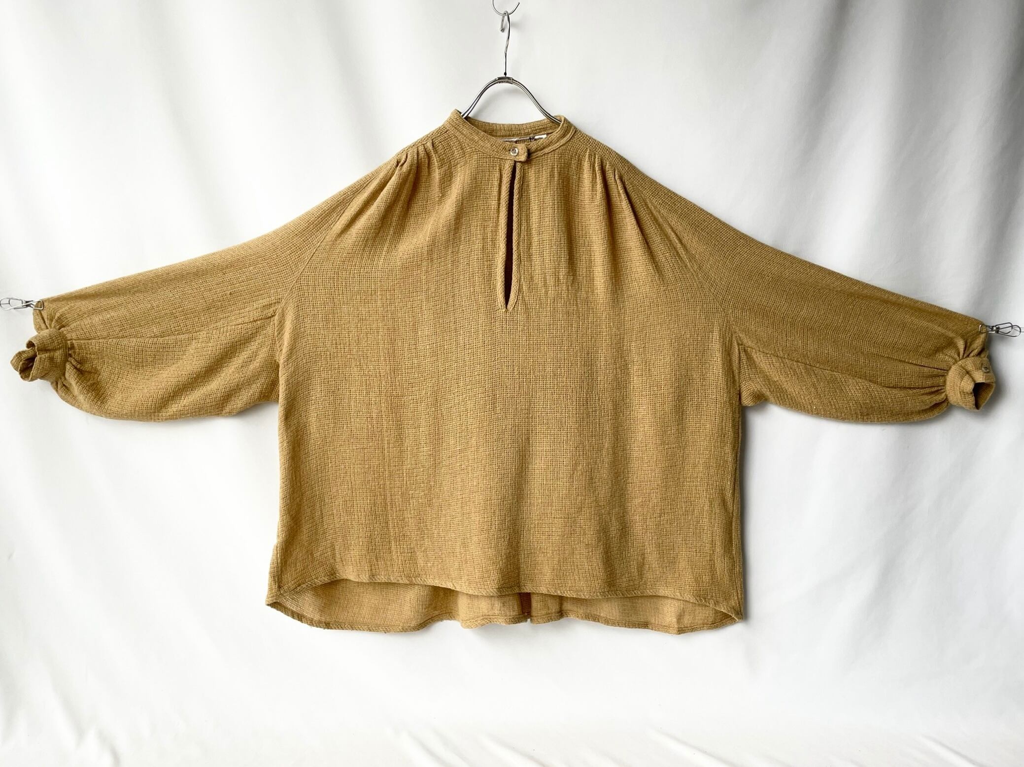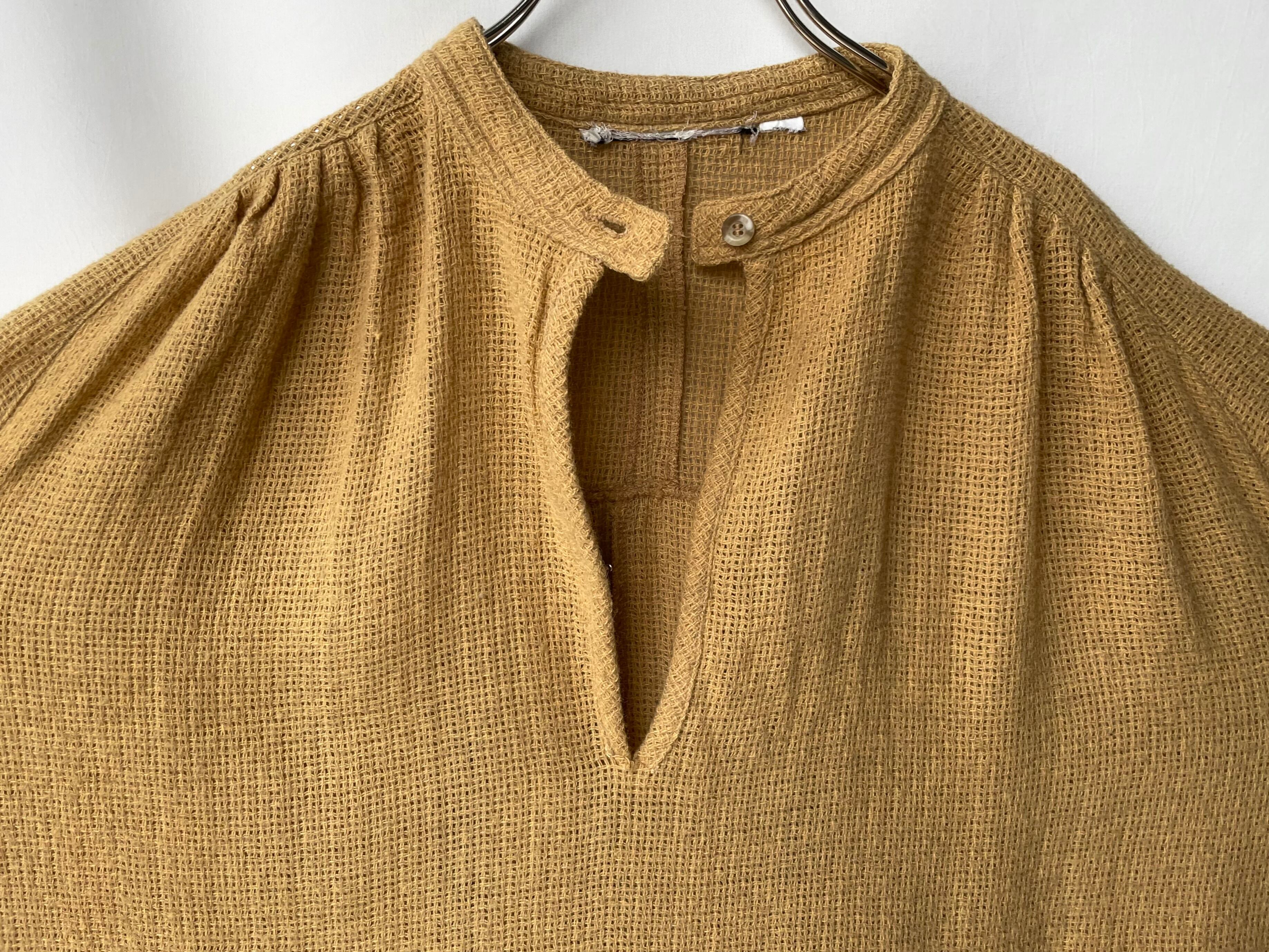 首元一つボタンのプルオーバー仕様。