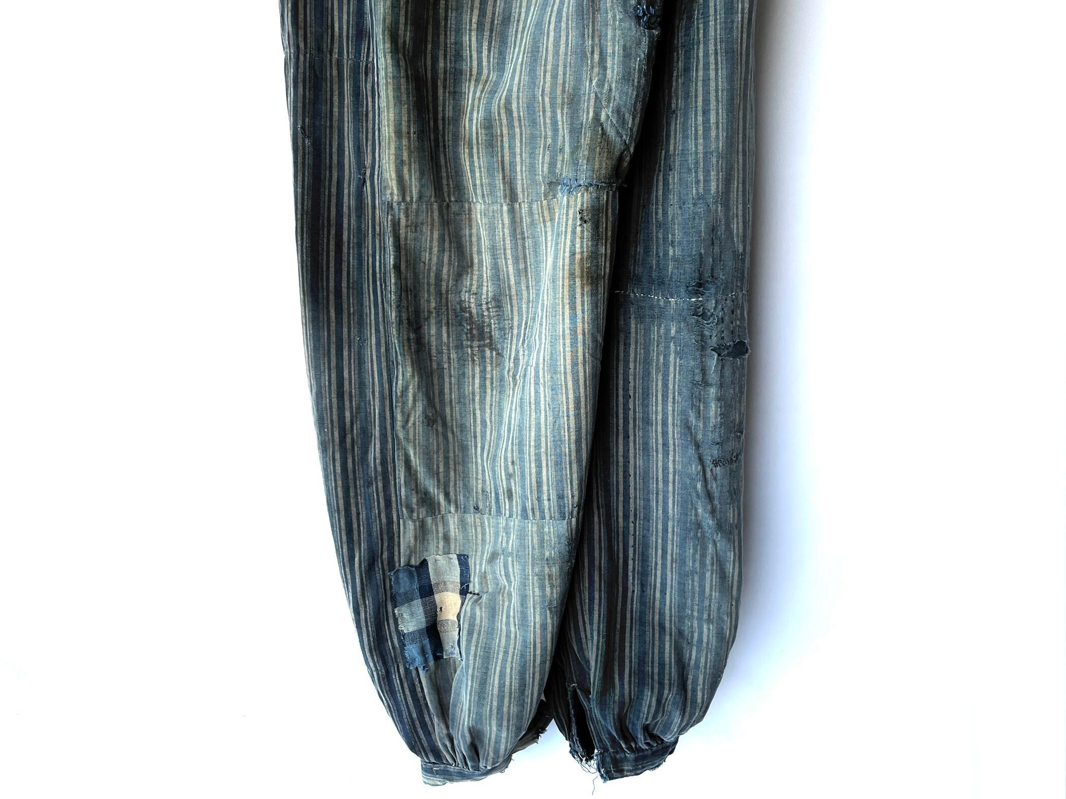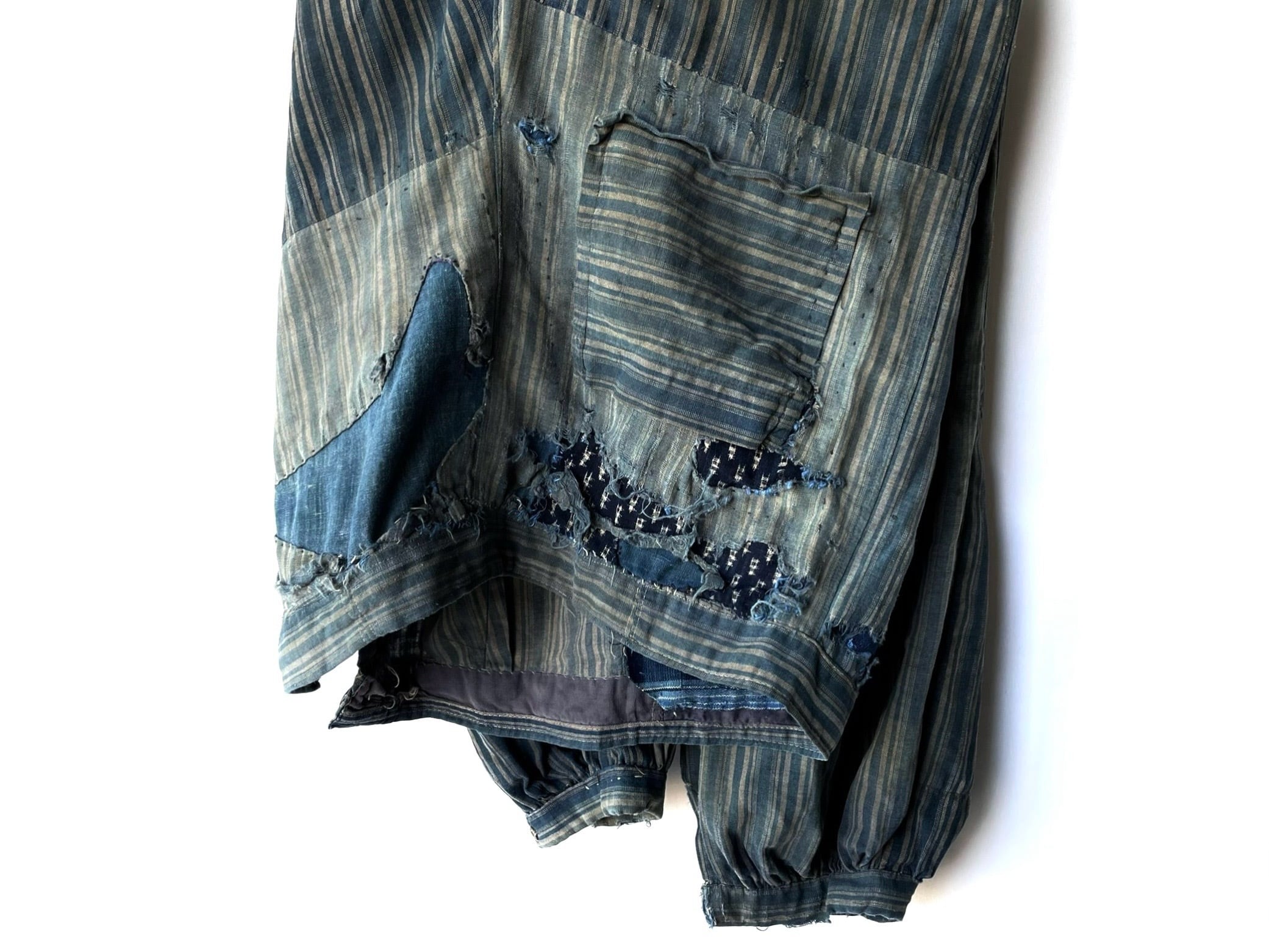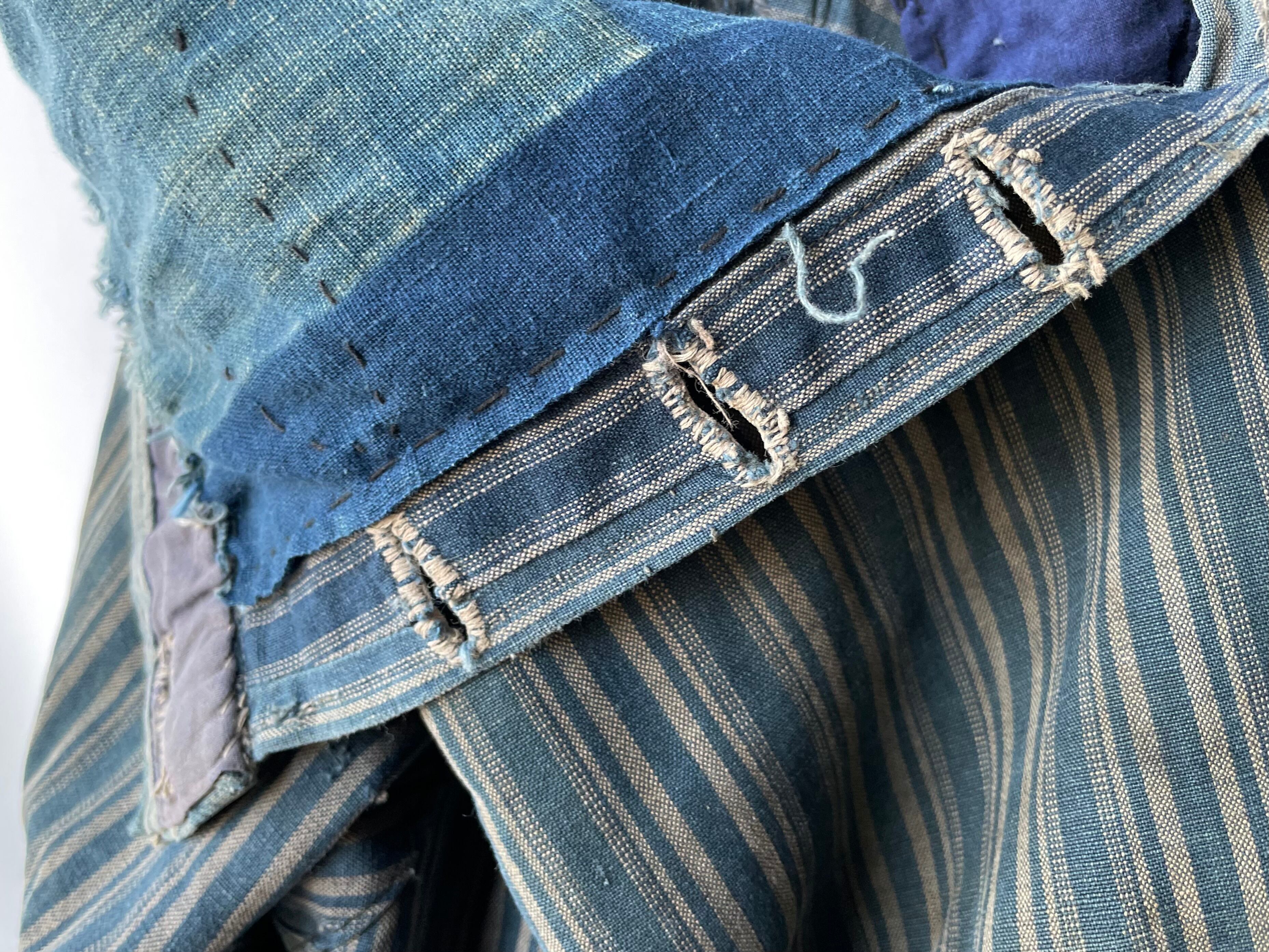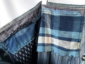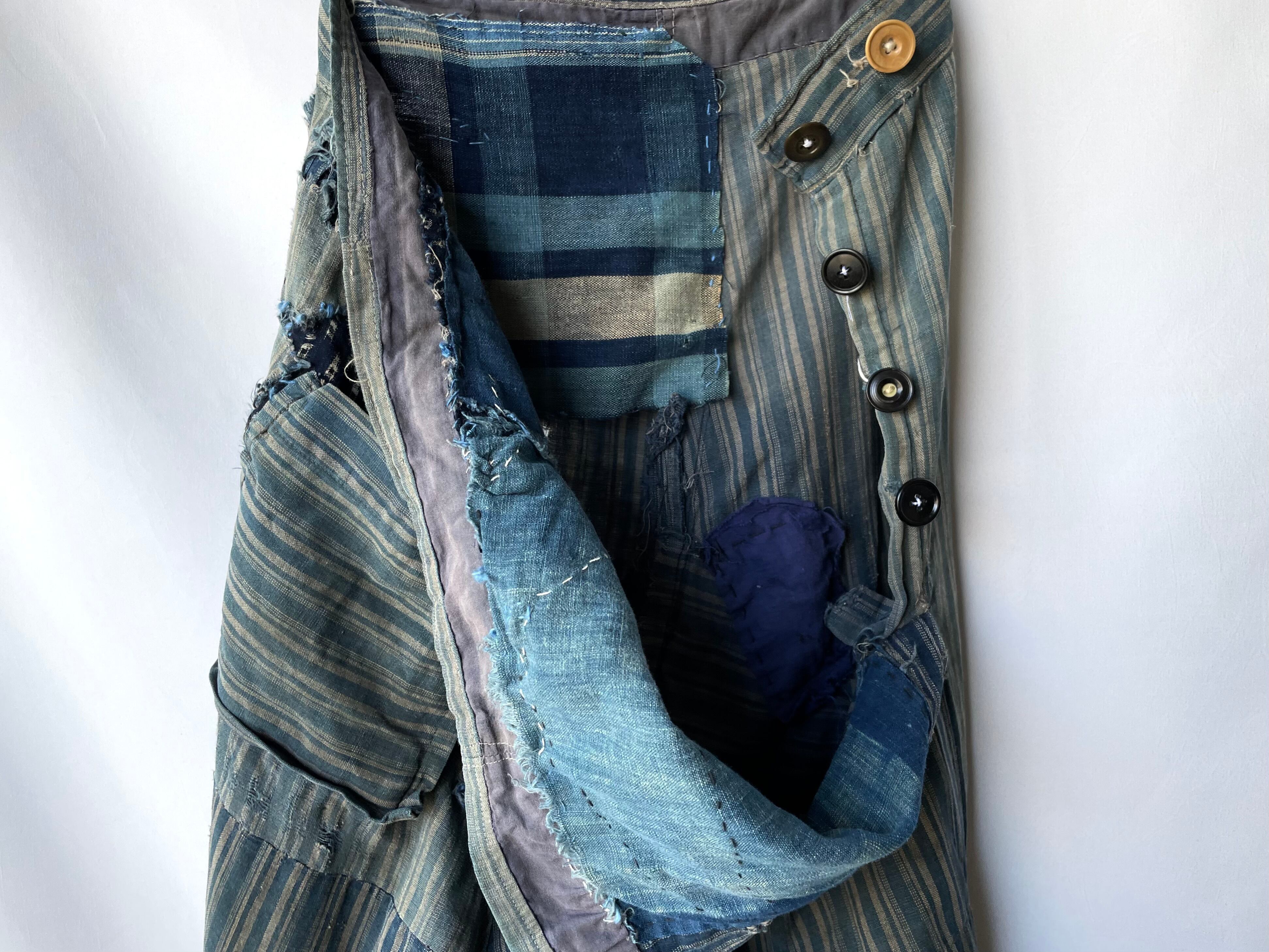 厚みや柄も異なる藍色の古布で何度も補修された、日本の美しい襤褸。