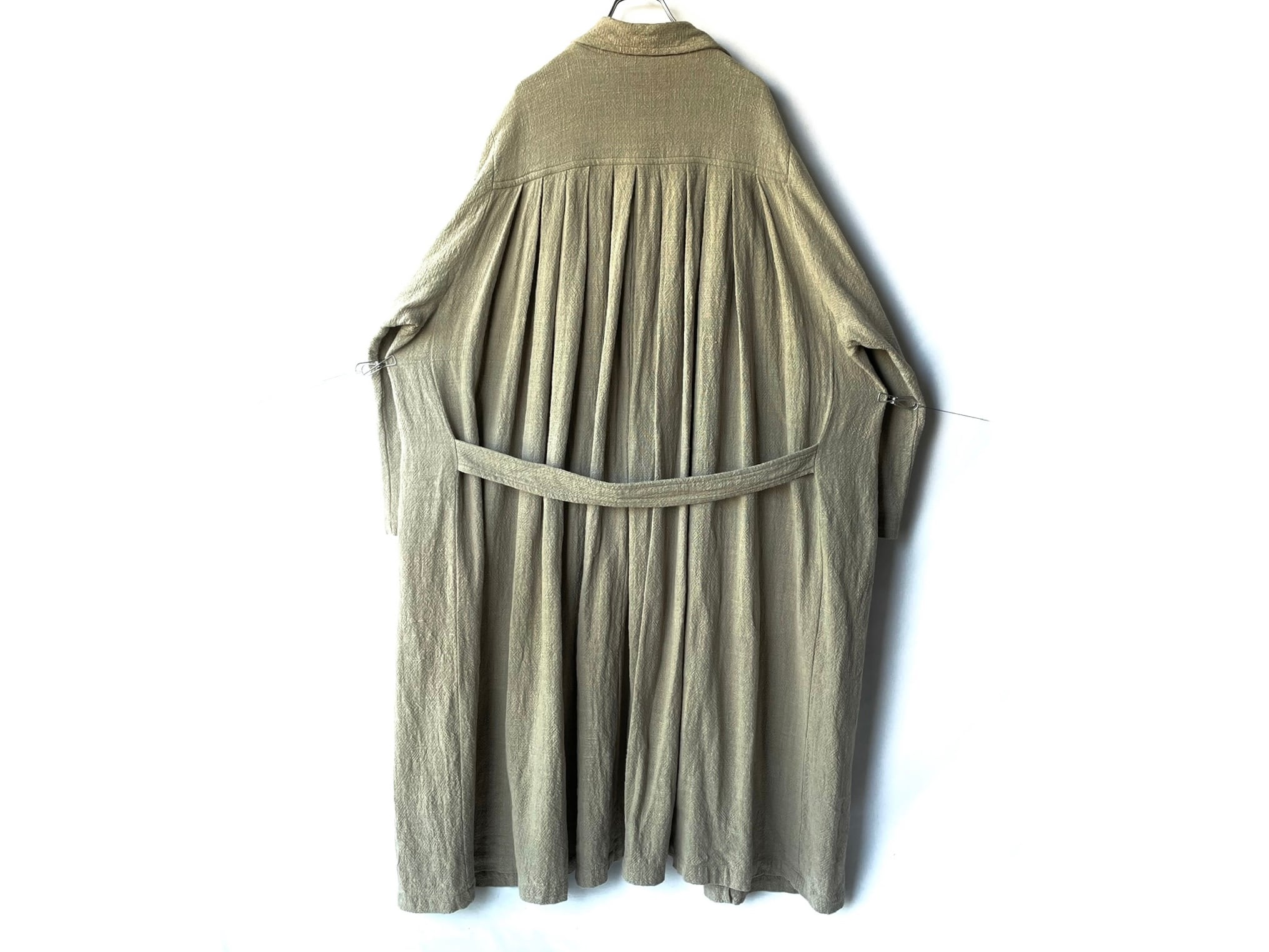 裾幅で約129×2cm程もある膨大な生地量が、背面の腰帯と無数のタックでまとめられております。