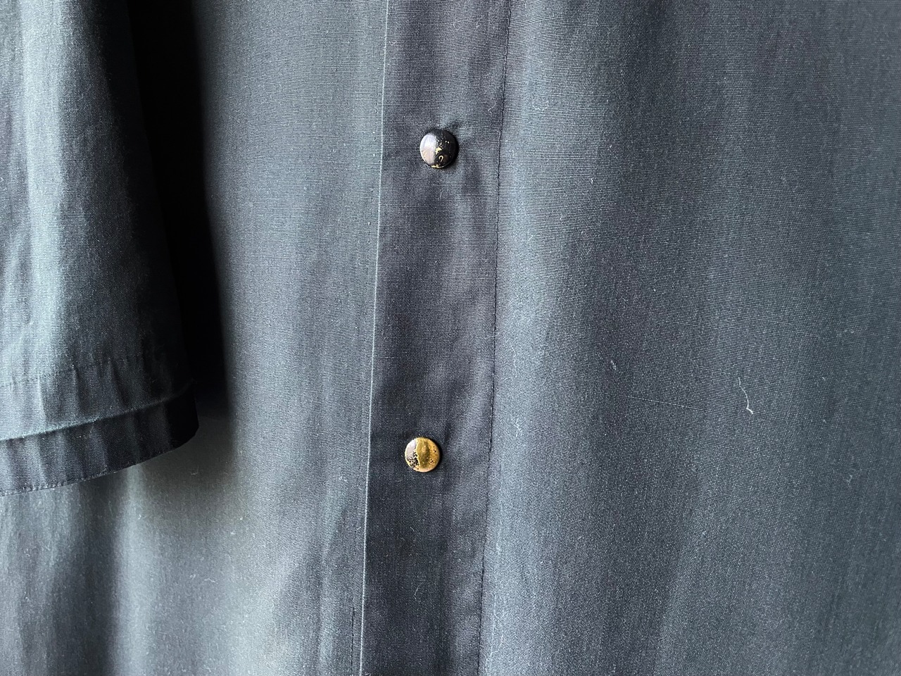 計10個のスナップが並ぶ、たっぷりロング丈のシャツコート。