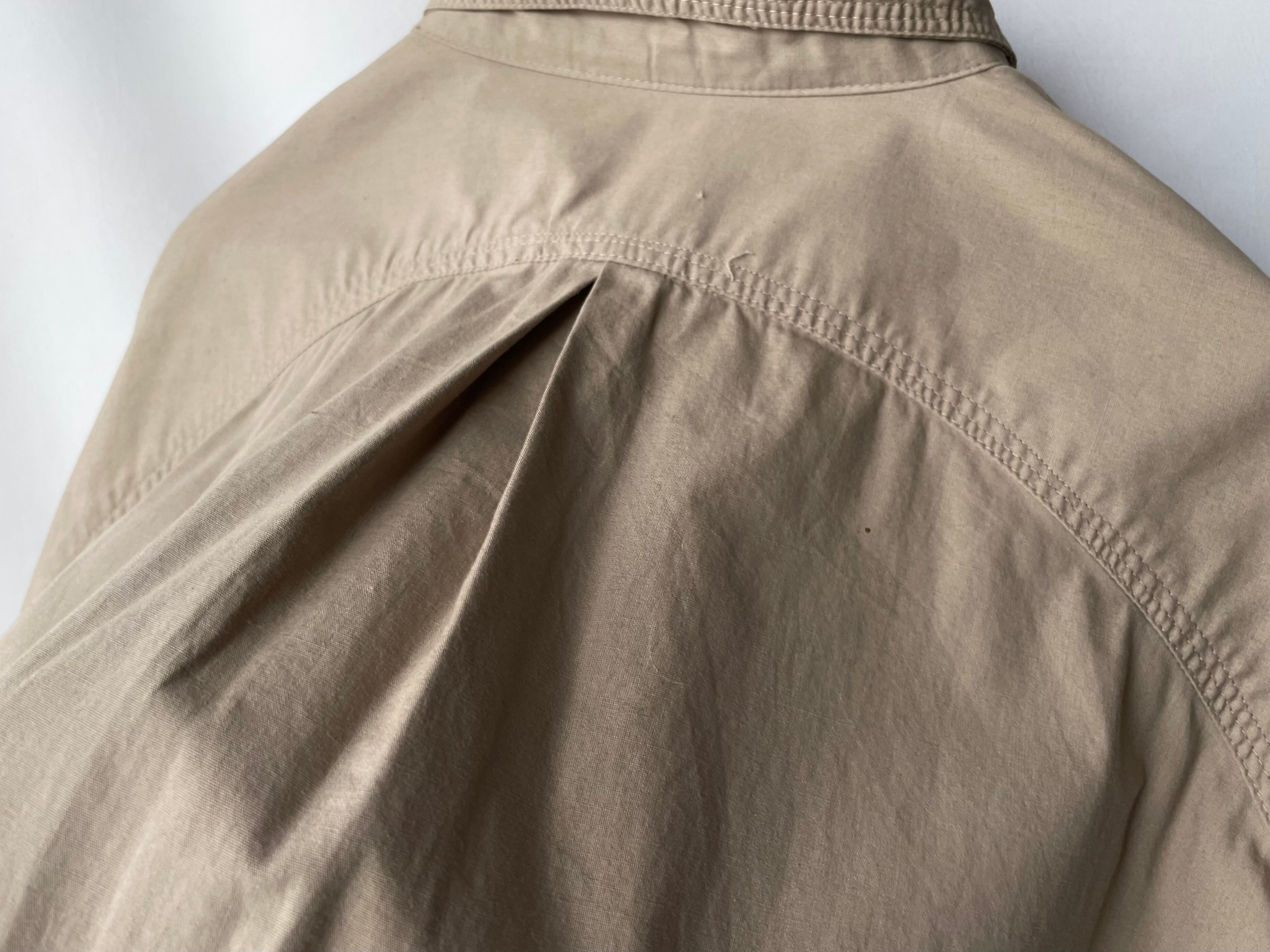 Inverted pleats that split from deep at the back of the neck.
