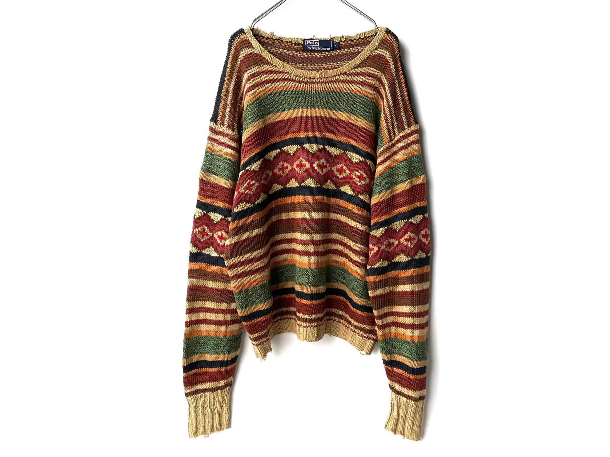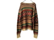品のある好配色のネイティブ柄にL表記のリラックスシルエット。