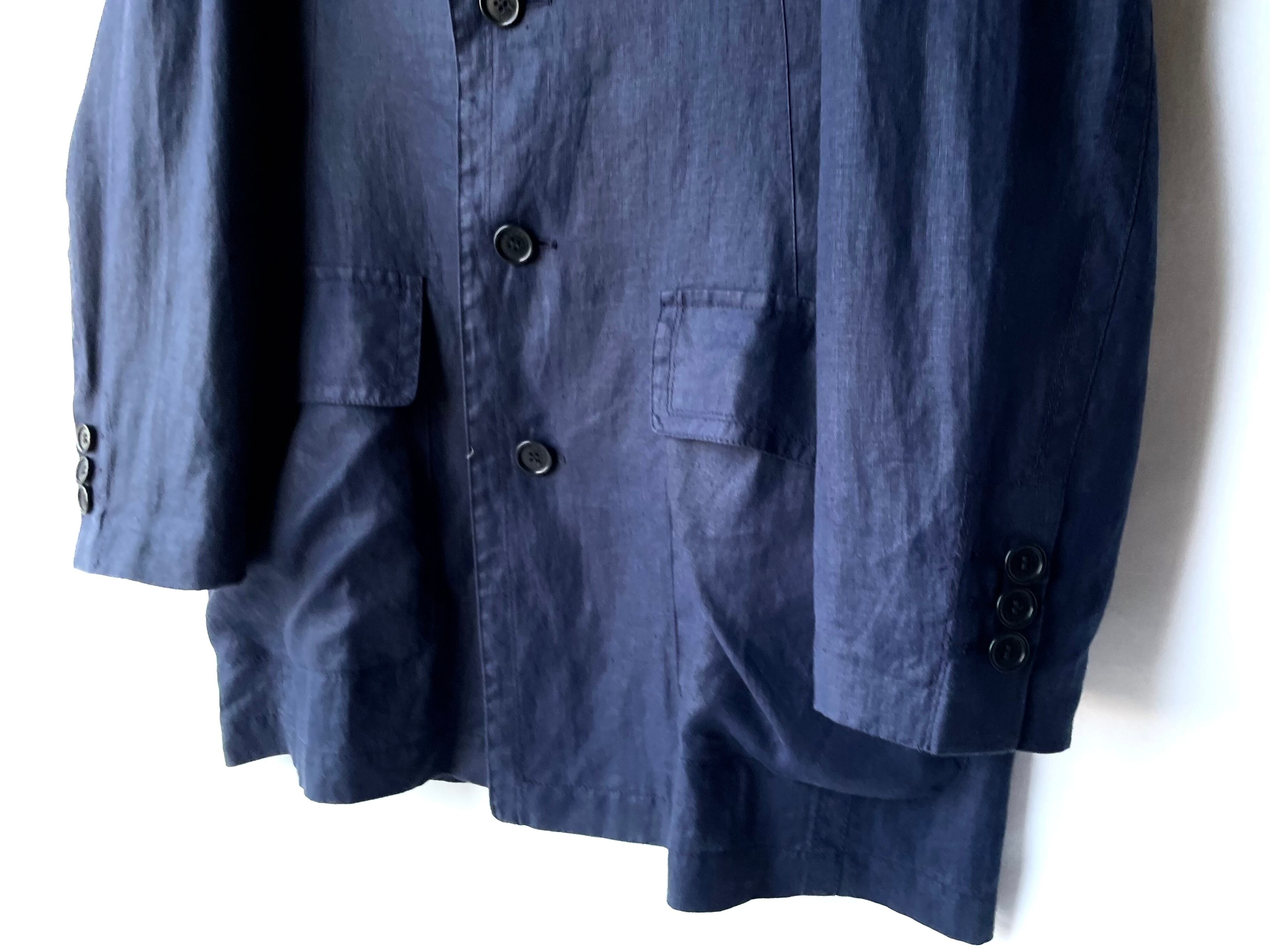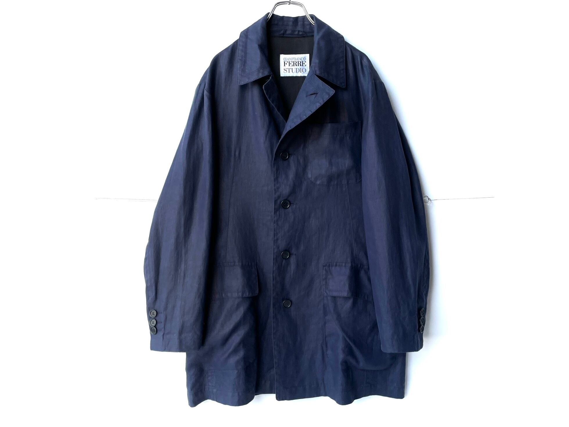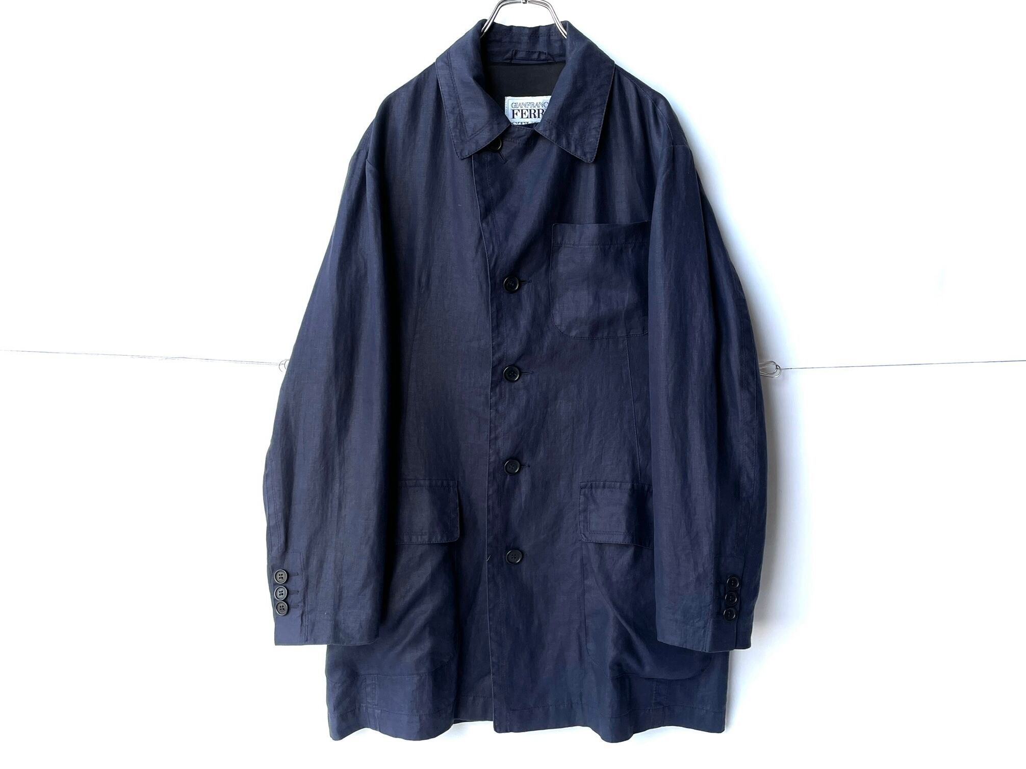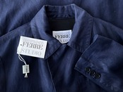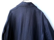 深く重なる首元へ緩やかに湾曲した、特徴的なシングルブレスト。