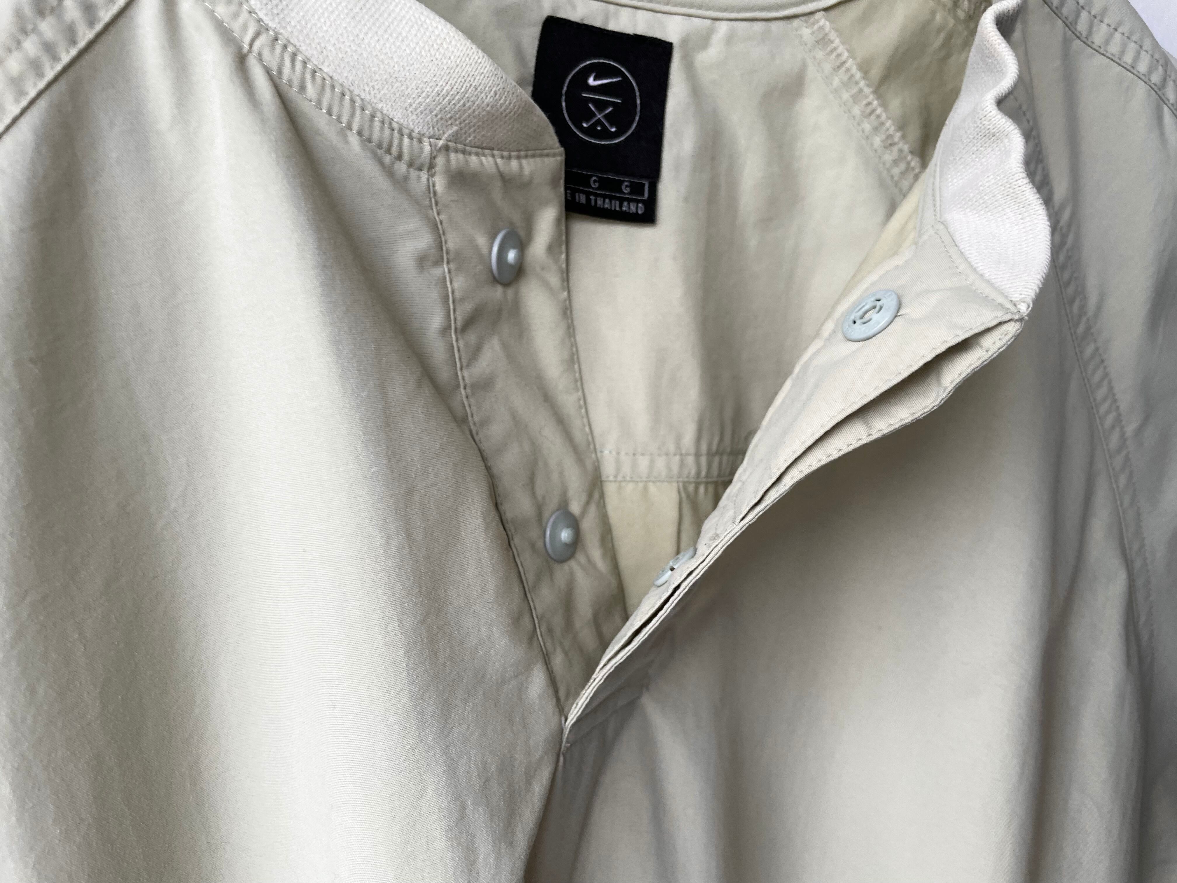 Pullover design with two rows of Hiyo buttons separated by stitching.