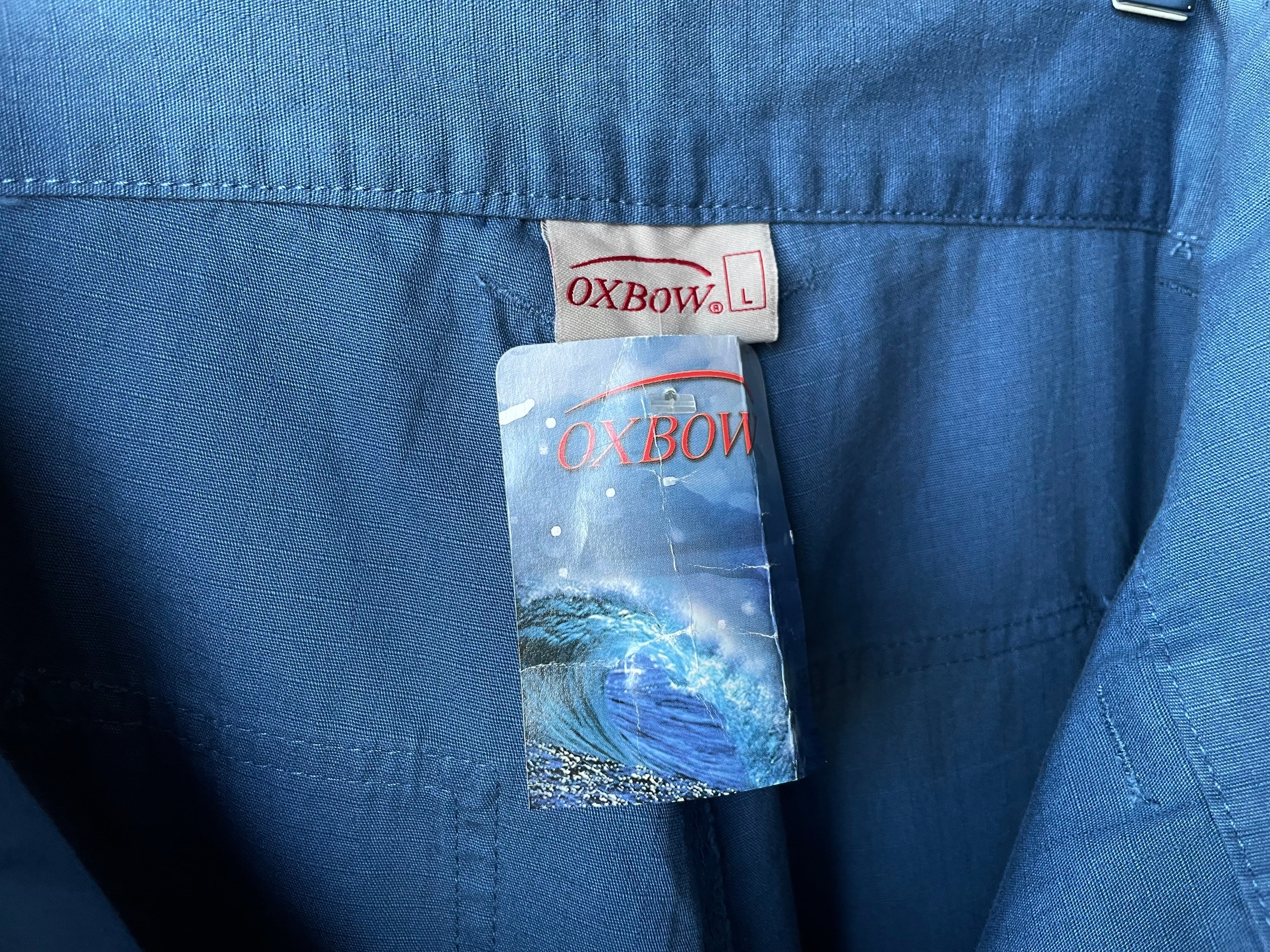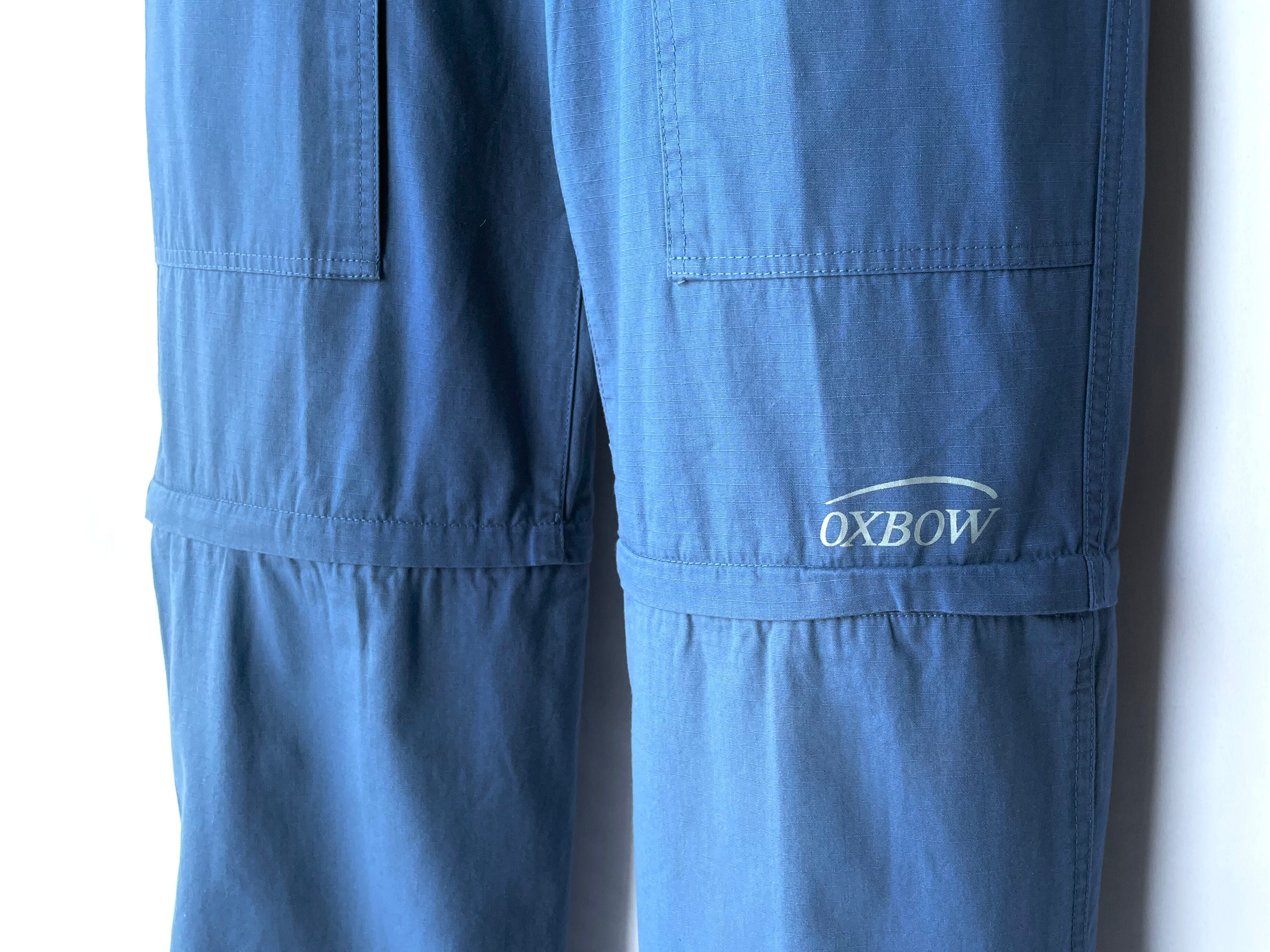 Large trapezoidal back pocket and small knee pocket with zip closure.