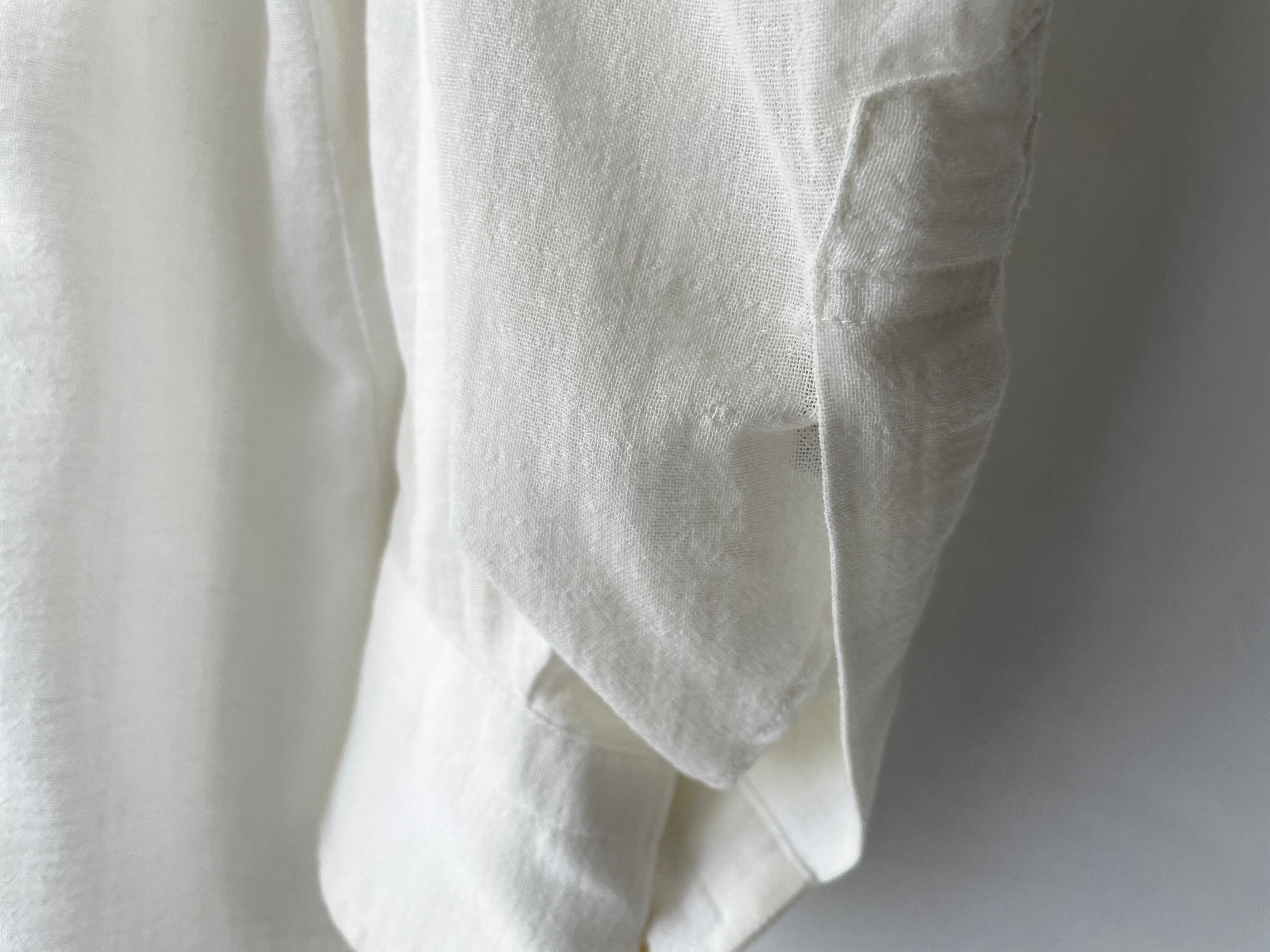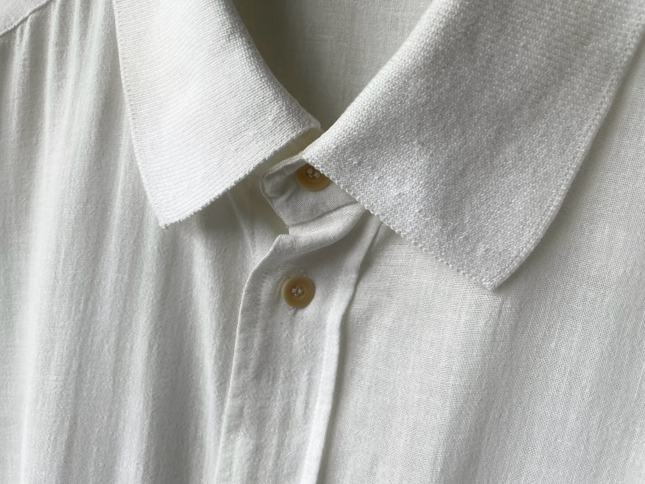 緩い織り目が見える繊細なコットンボディに、襟/ポケット縁は同色のリブ切り替え。