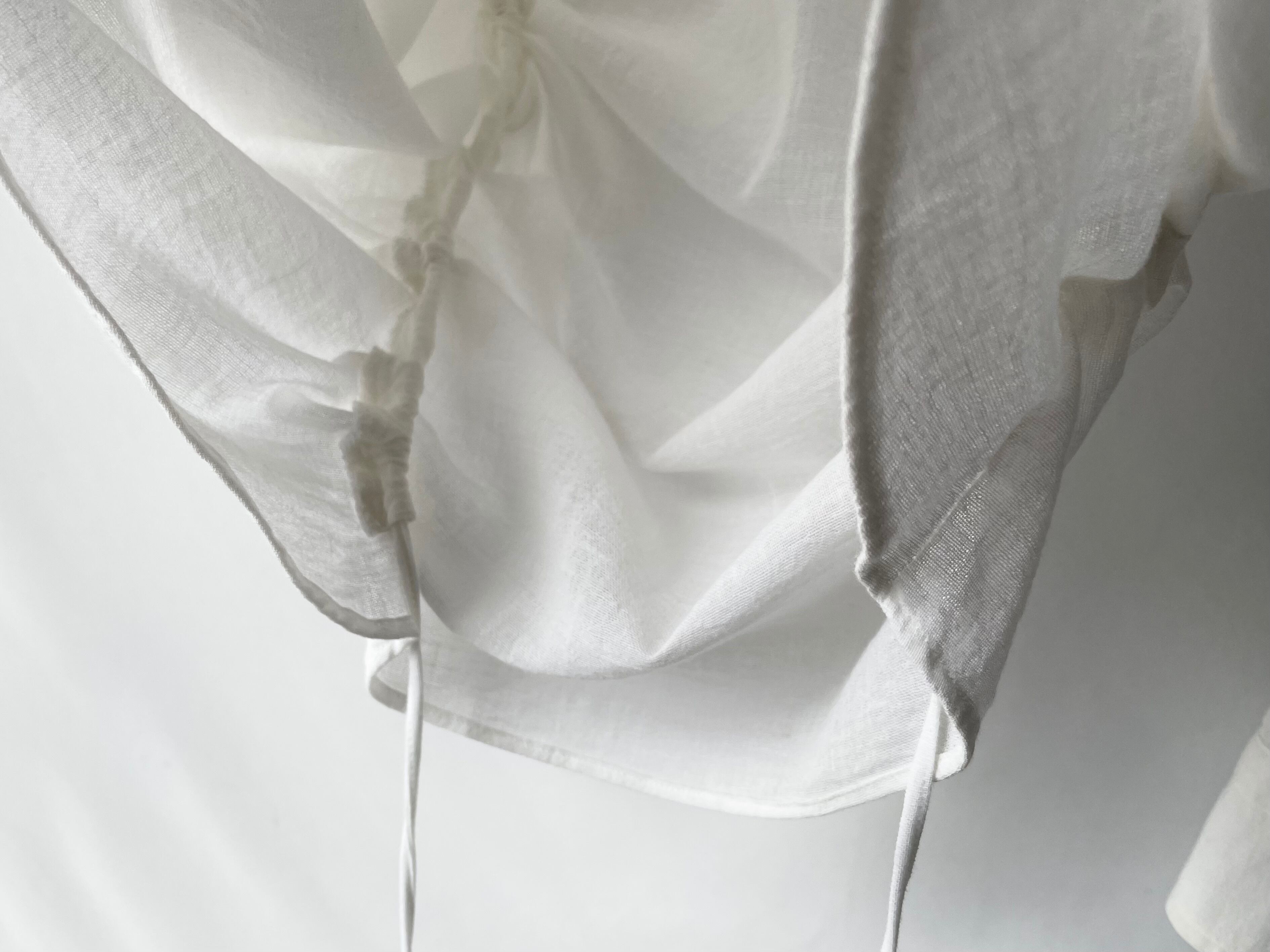 両袖のシーム、背面中央~裾に入る4本のドローコード。