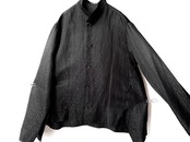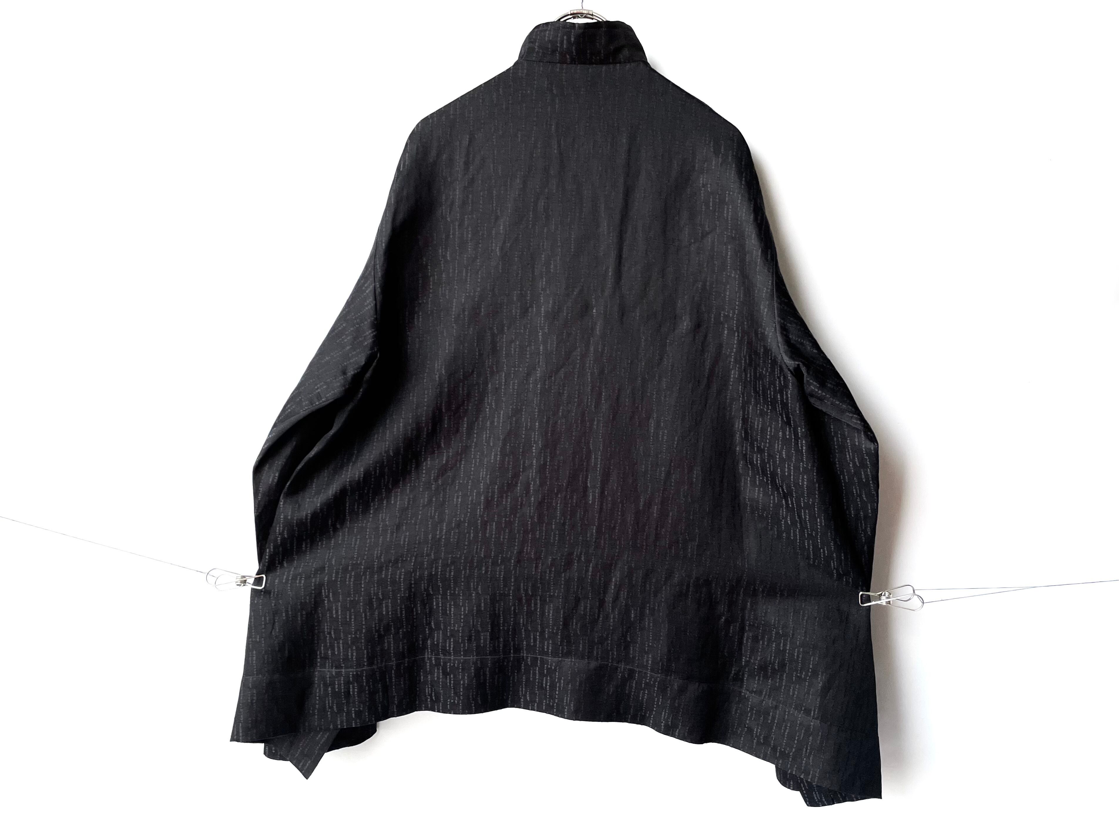 たっぷりな生地分量の後生地が前身頃までオーバーラップした、特殊なパターンのフレアシルエット。