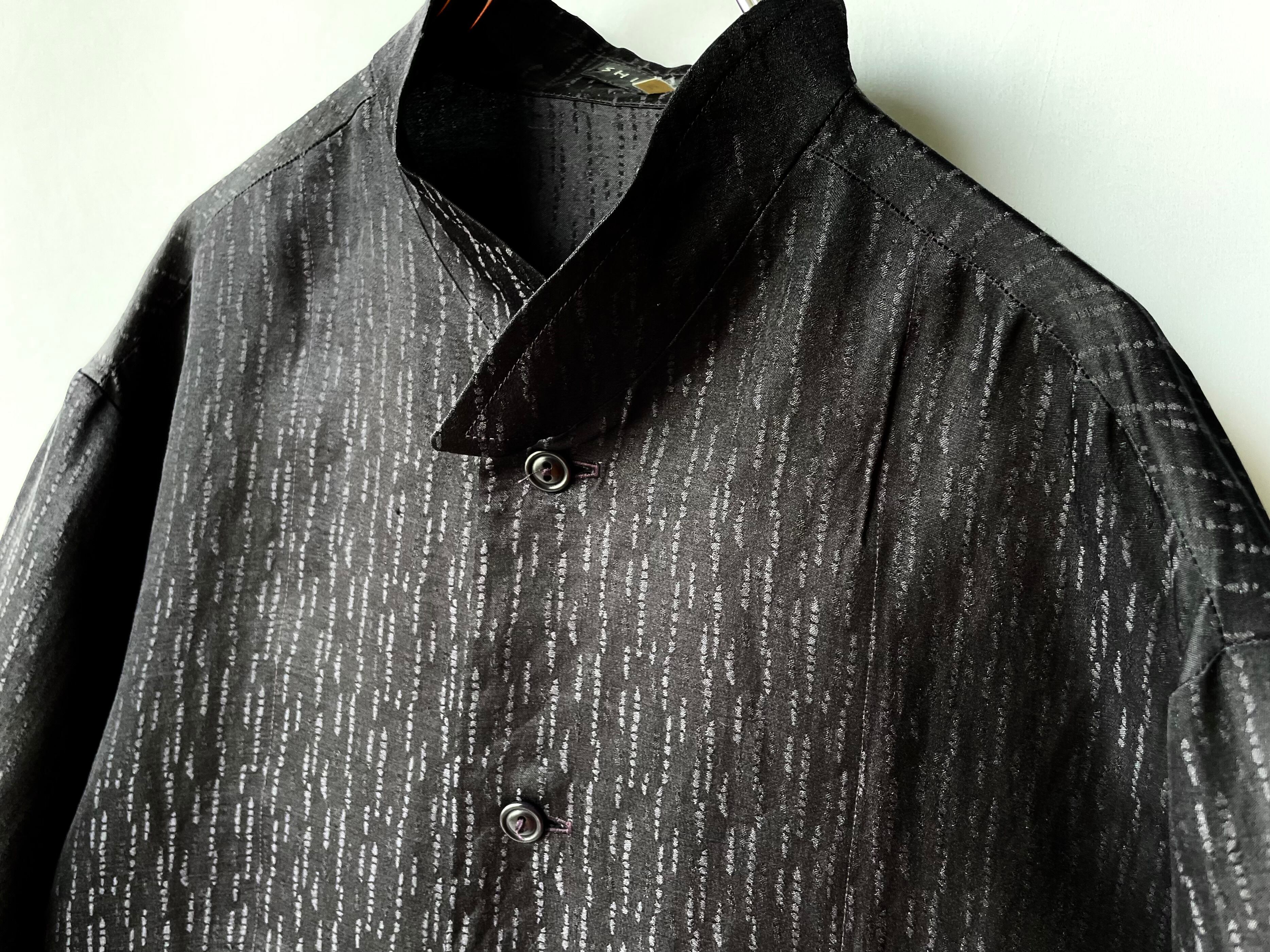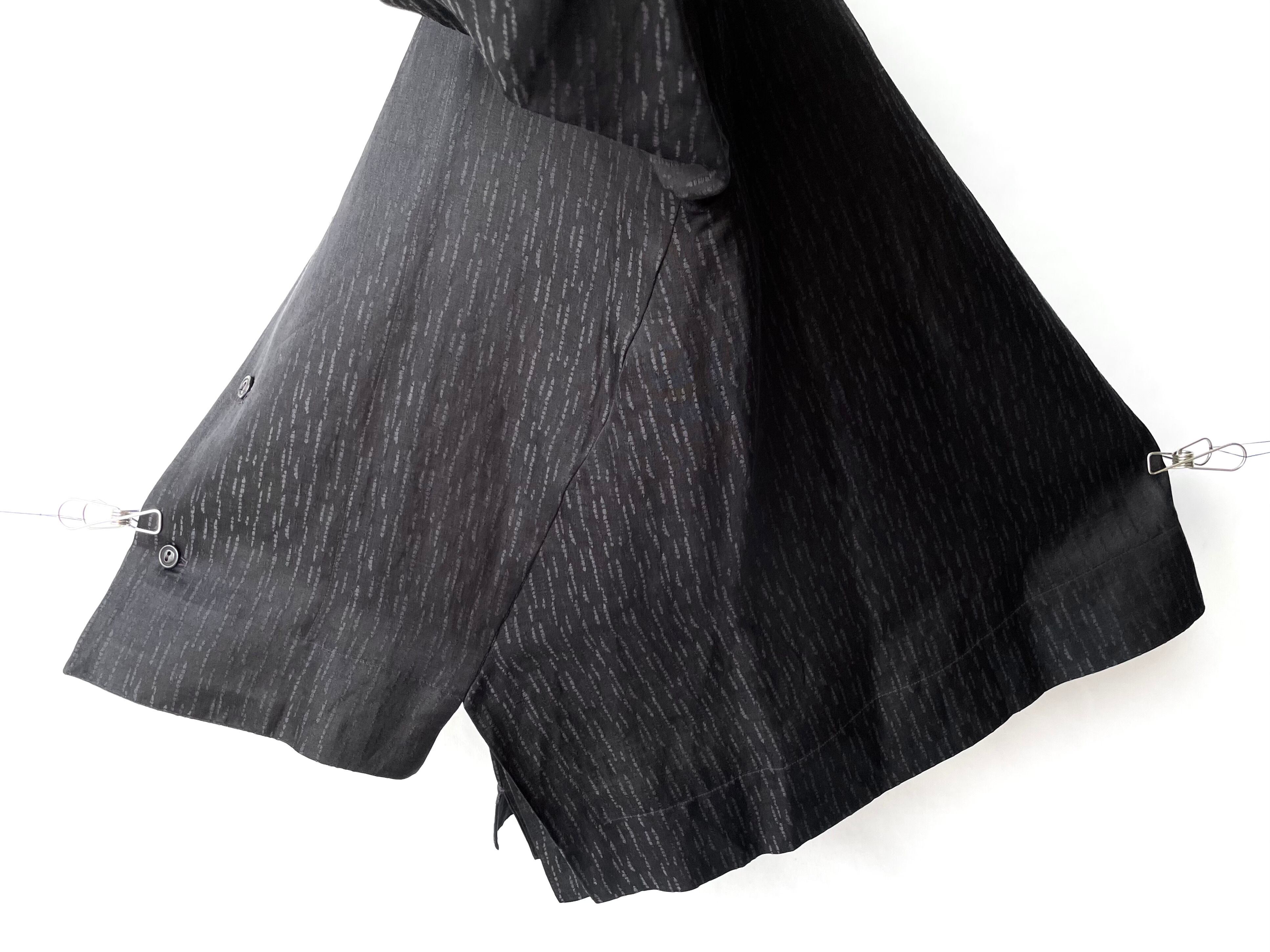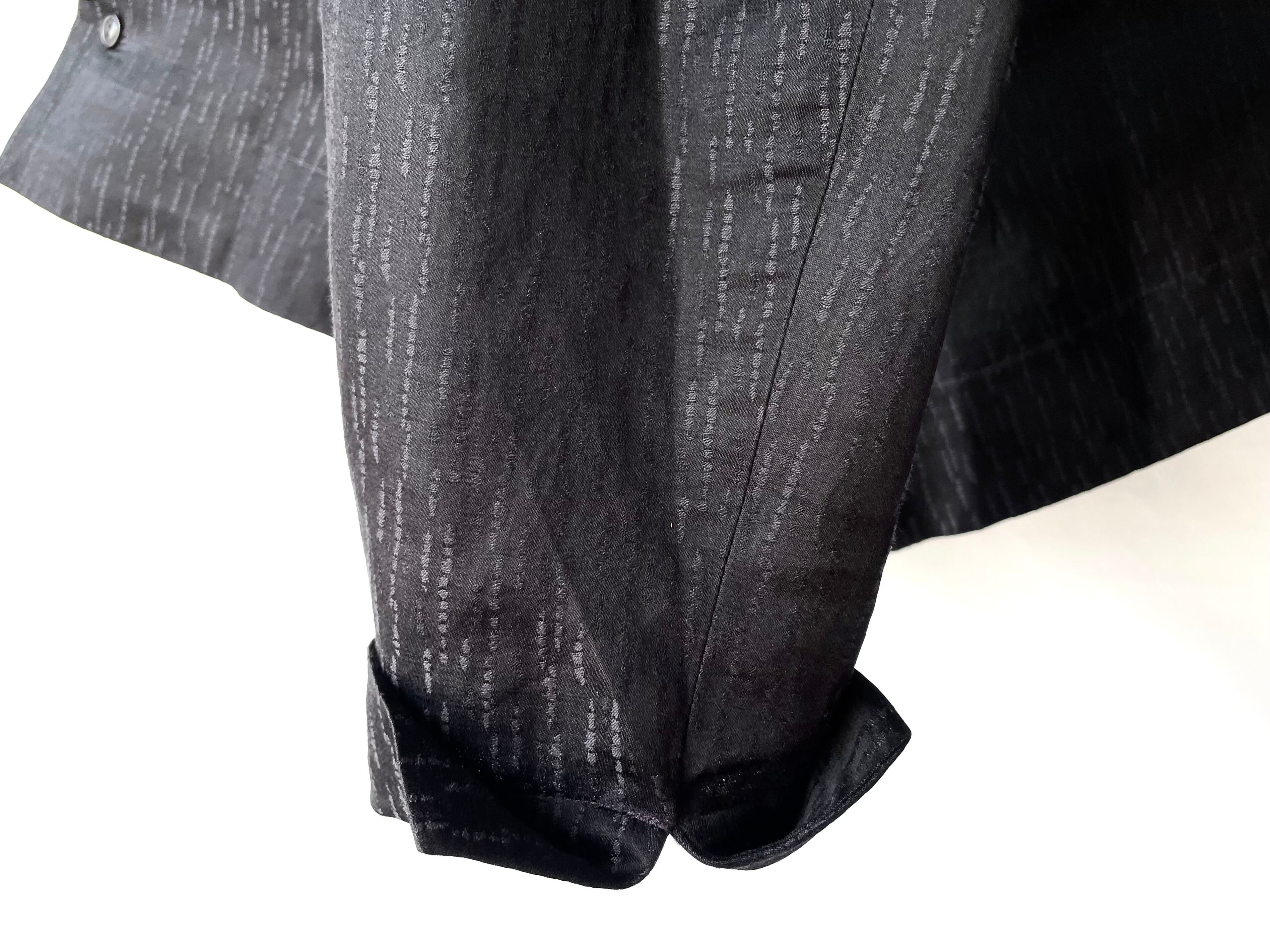 細かな水滴の様な織柄が入る、深い濃紺~黒の上質なリネン/シルク混紡生地。