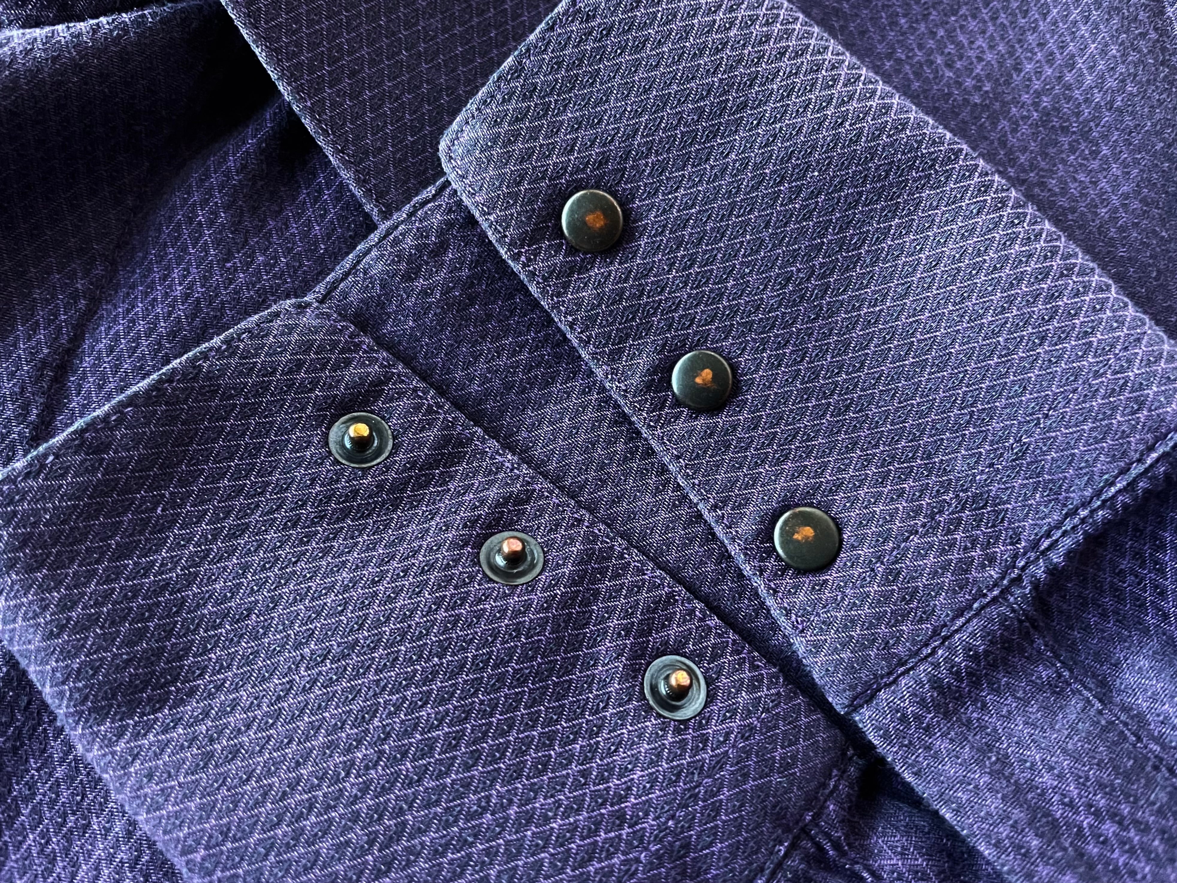 アイコンとも言えるスナップボタンの比翼フロント。