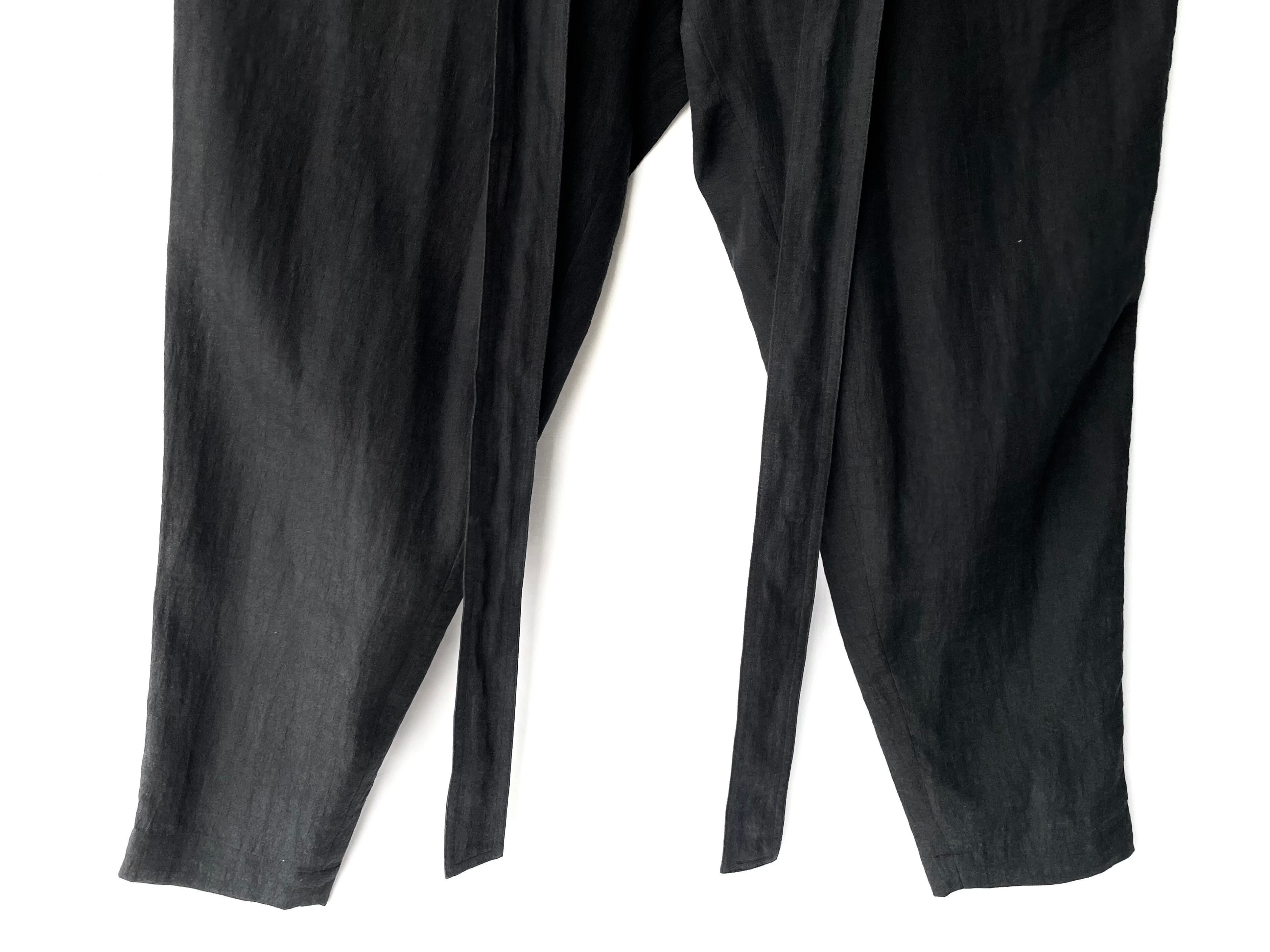 Special detail: Excess fabric extended from the waistband is tied around the waist.