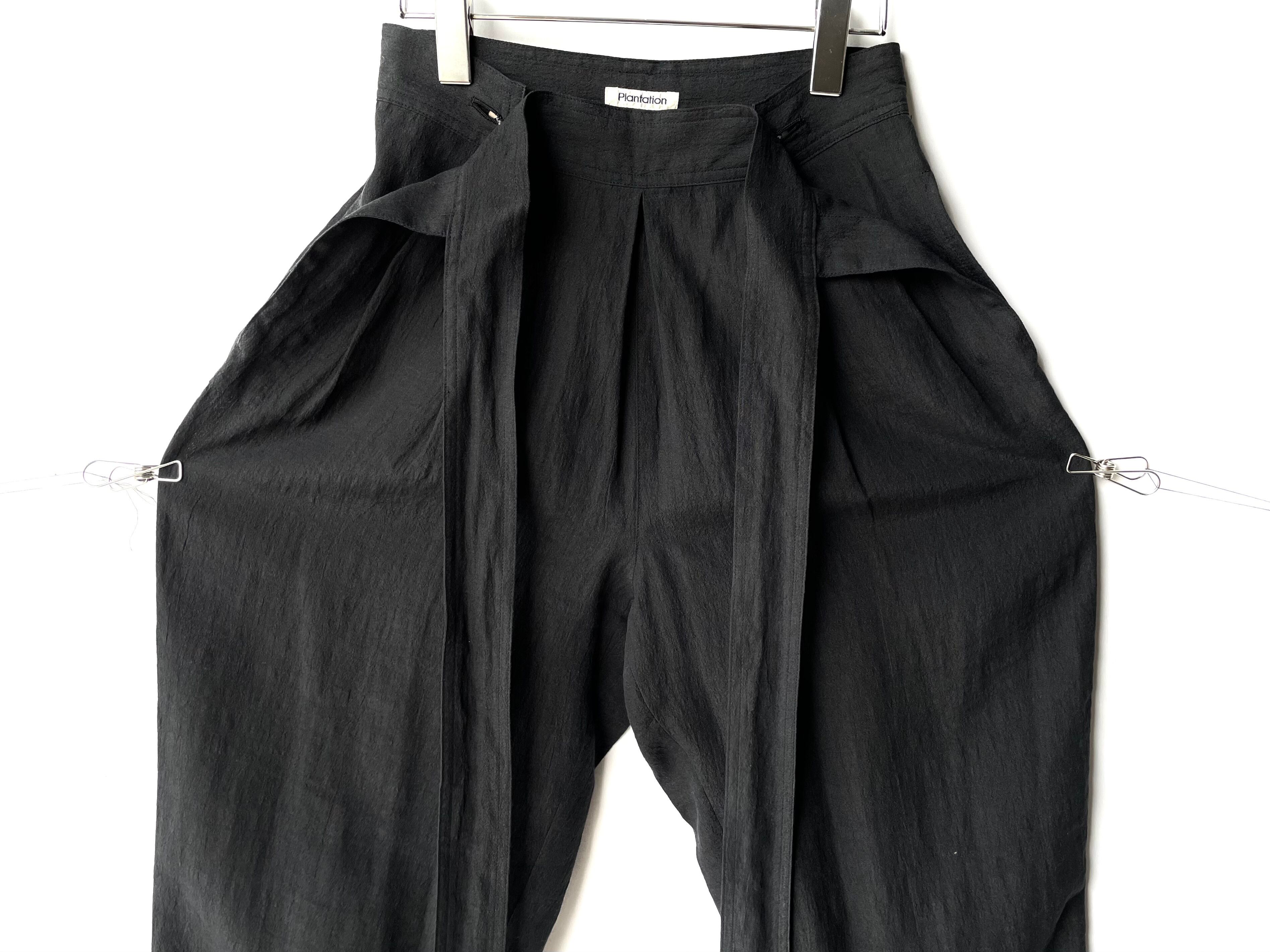 腰帯から延長された余剰の生地を腰回りで結ぶ特別なディテール。