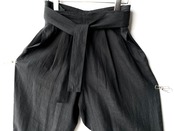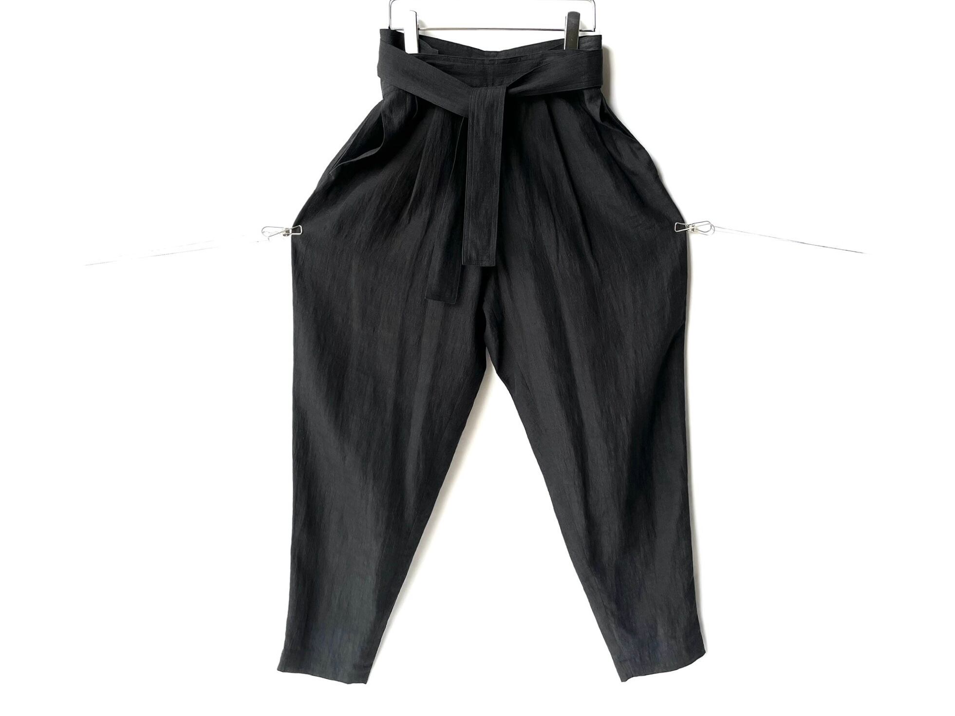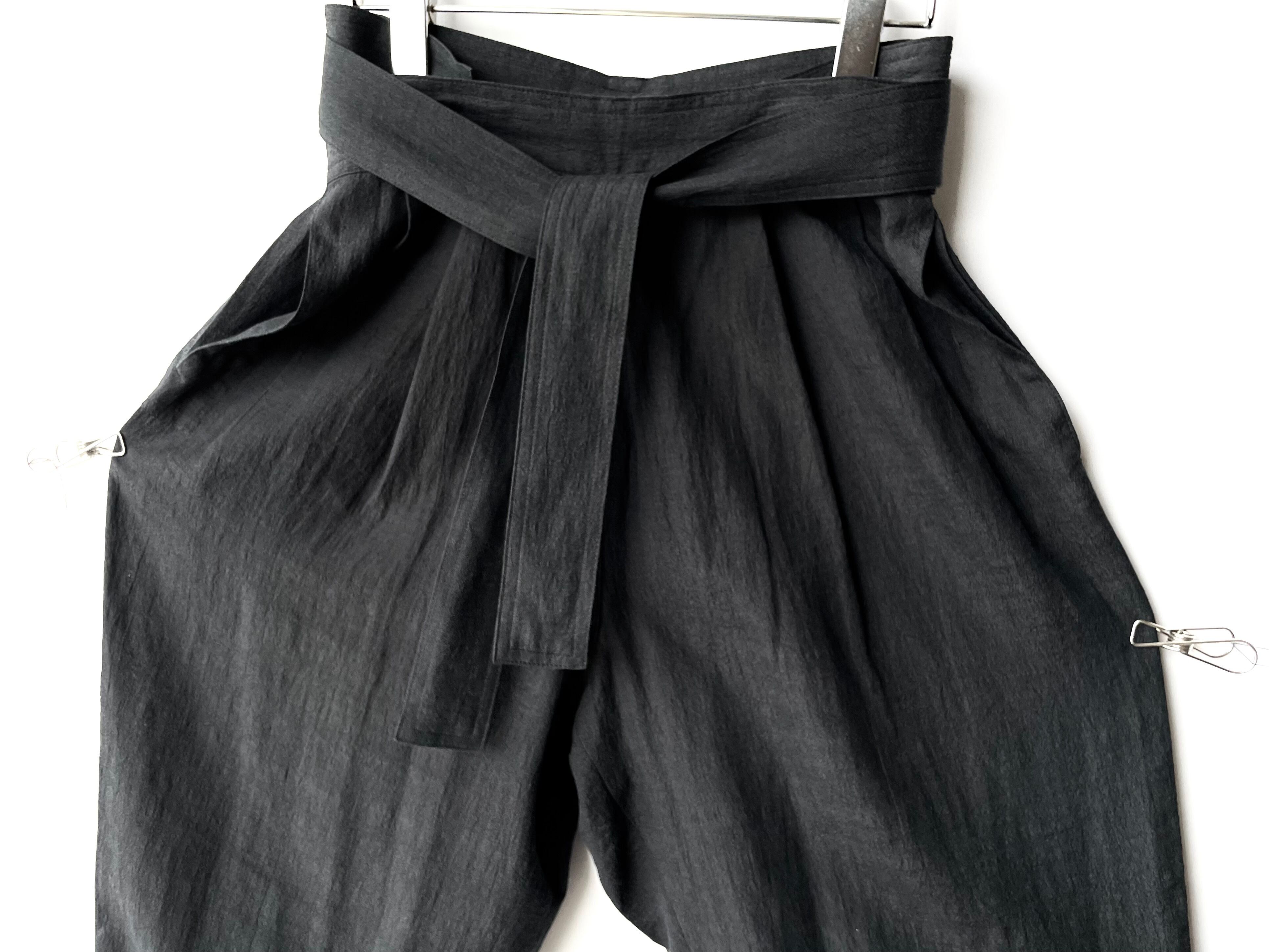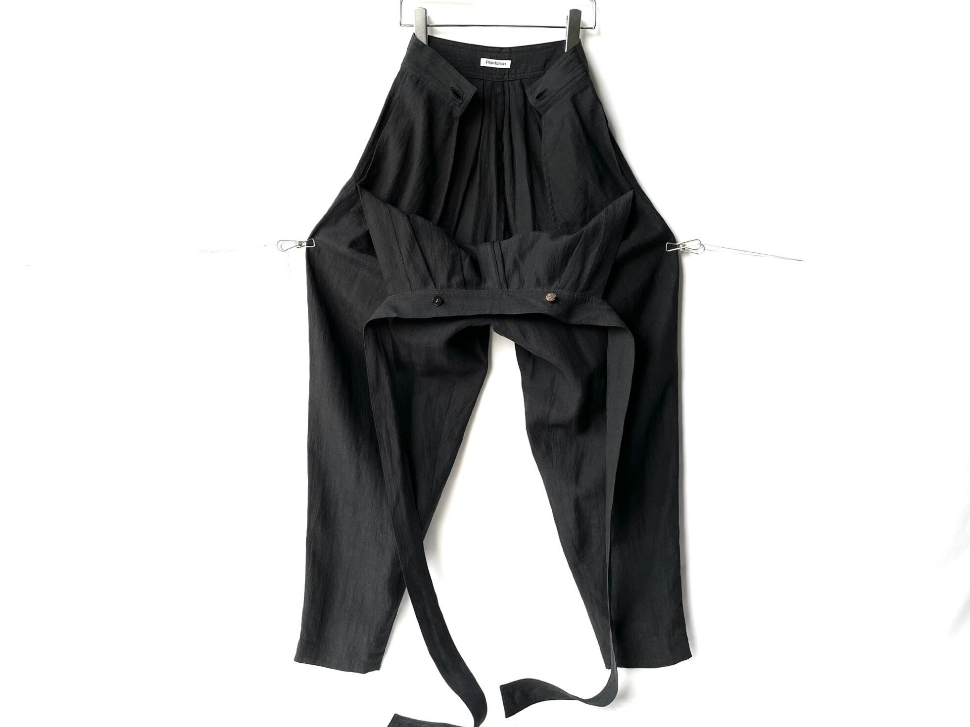 Including the symmetrical deep tuck design, I assume that it was inspired by Japanese clothing such as hakama and monpe.