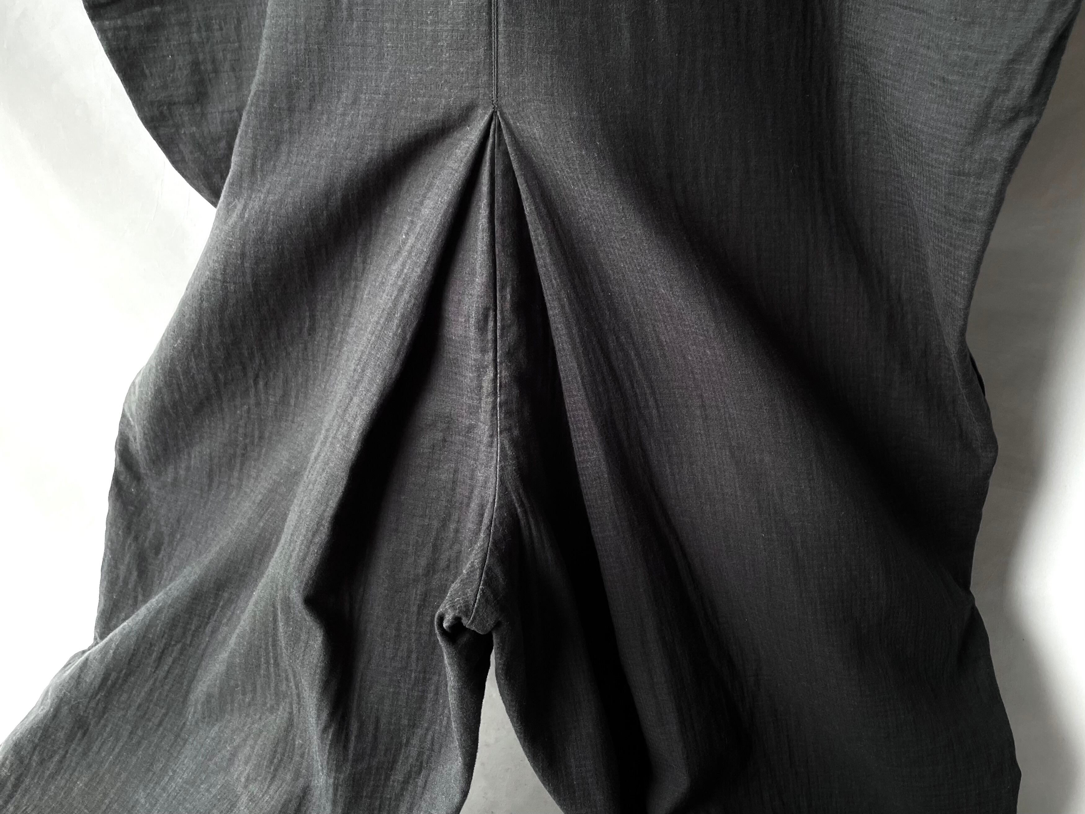 たっぷりな生地量が股下で重なり合い、着用時には独特な膨らみが生まれます。