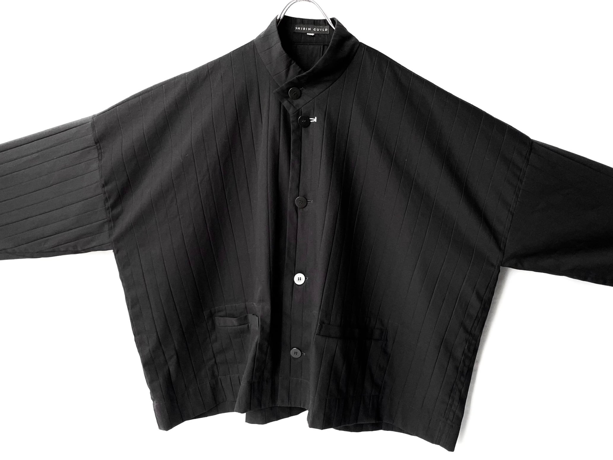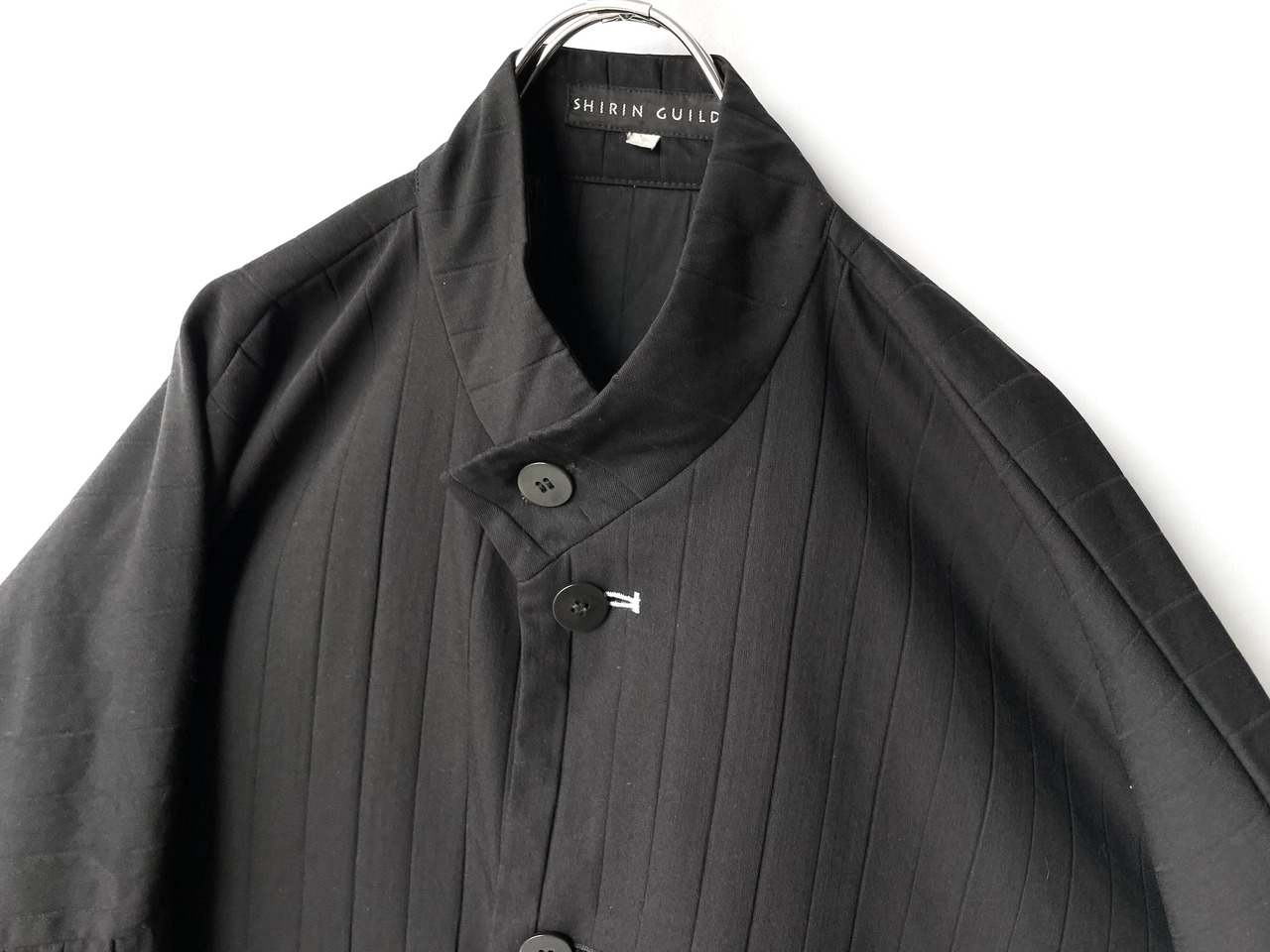 ステッチが映える裾ポケット、首に巻き付く特殊なスタンドカラーデザイン。