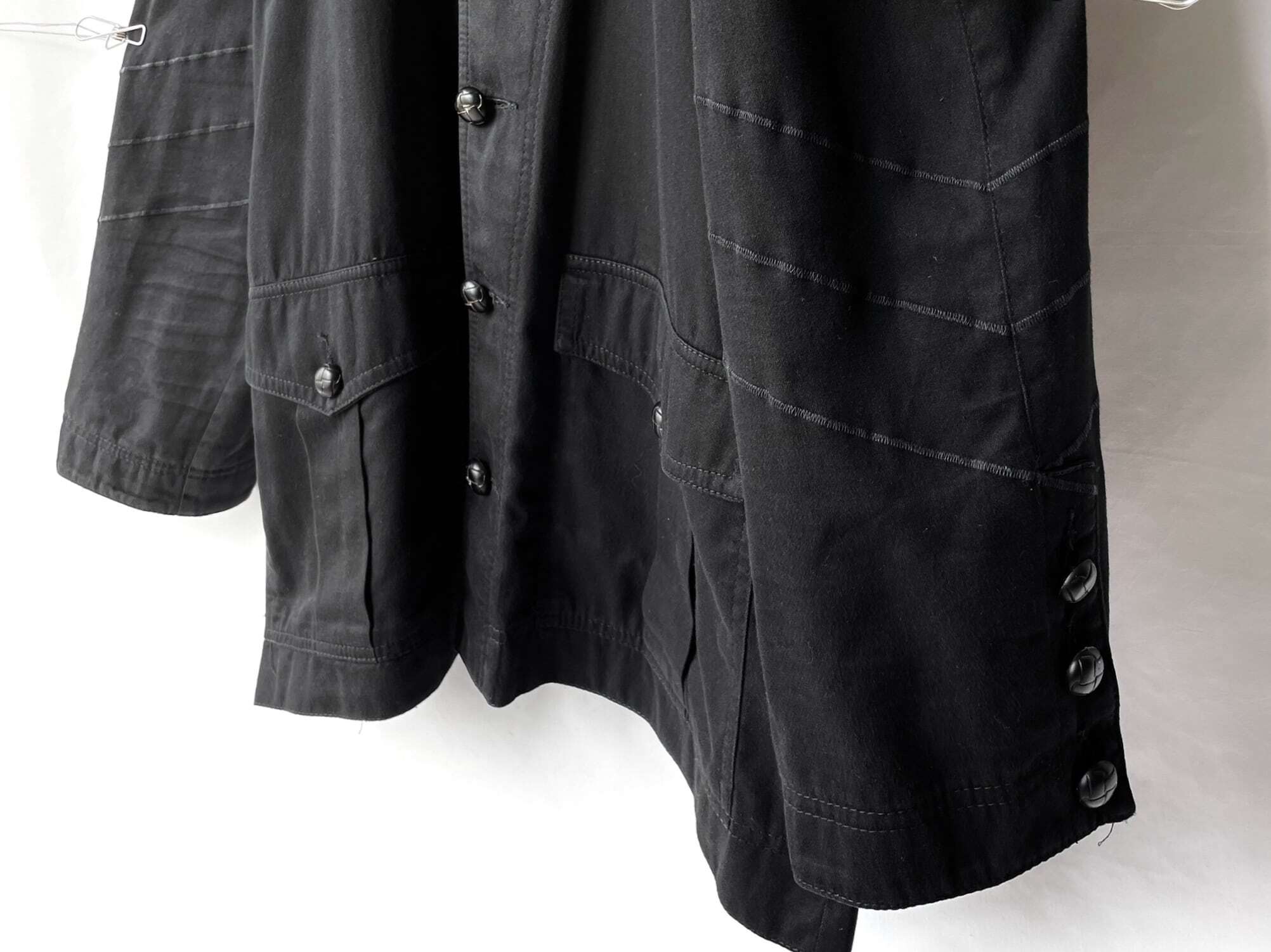 両袖のステッチワーク、開閉可能な3連のカフスボタン。