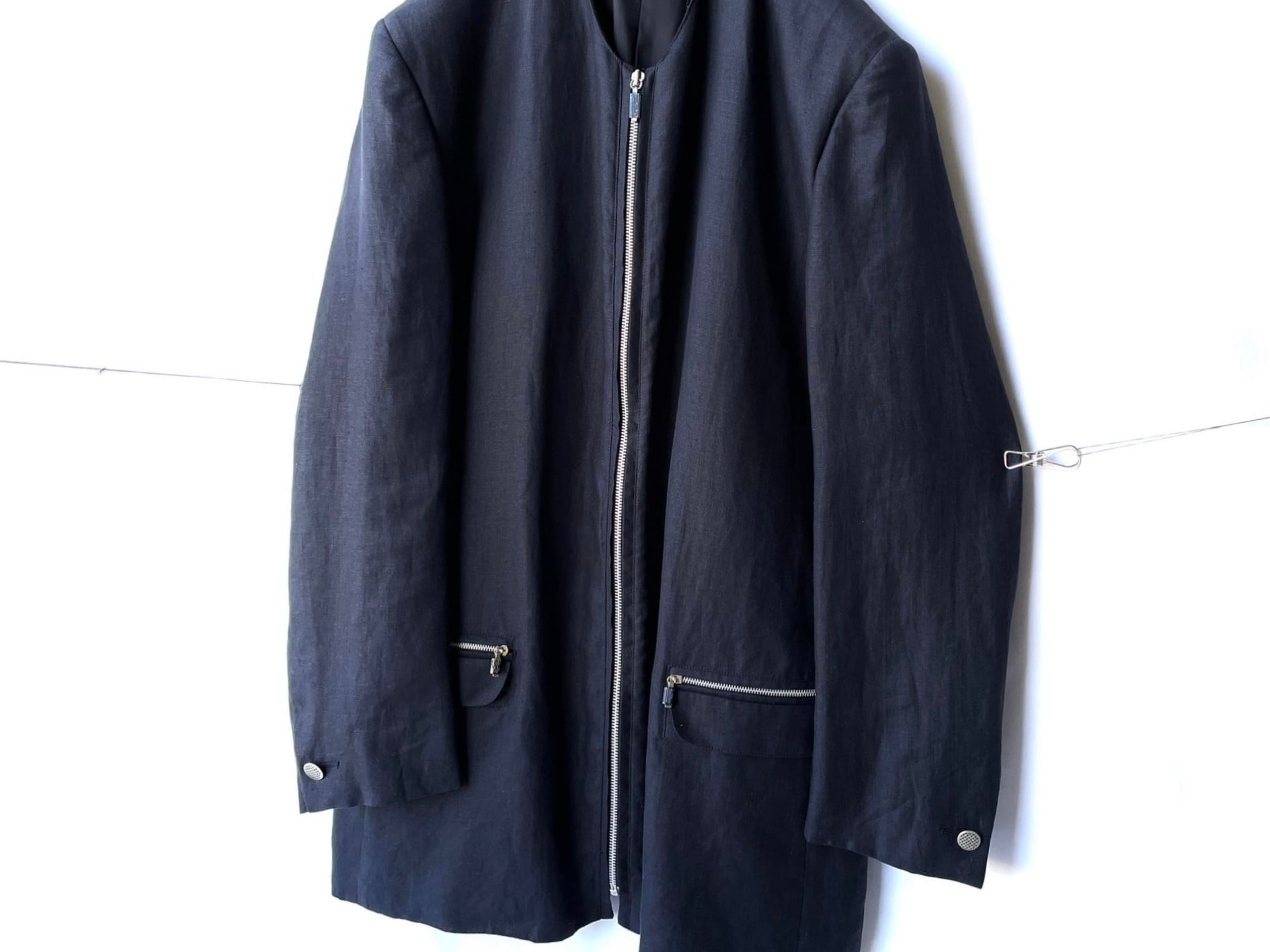 フルジップのカラーレスデザイン、カフスは同色の刻印ボタン。