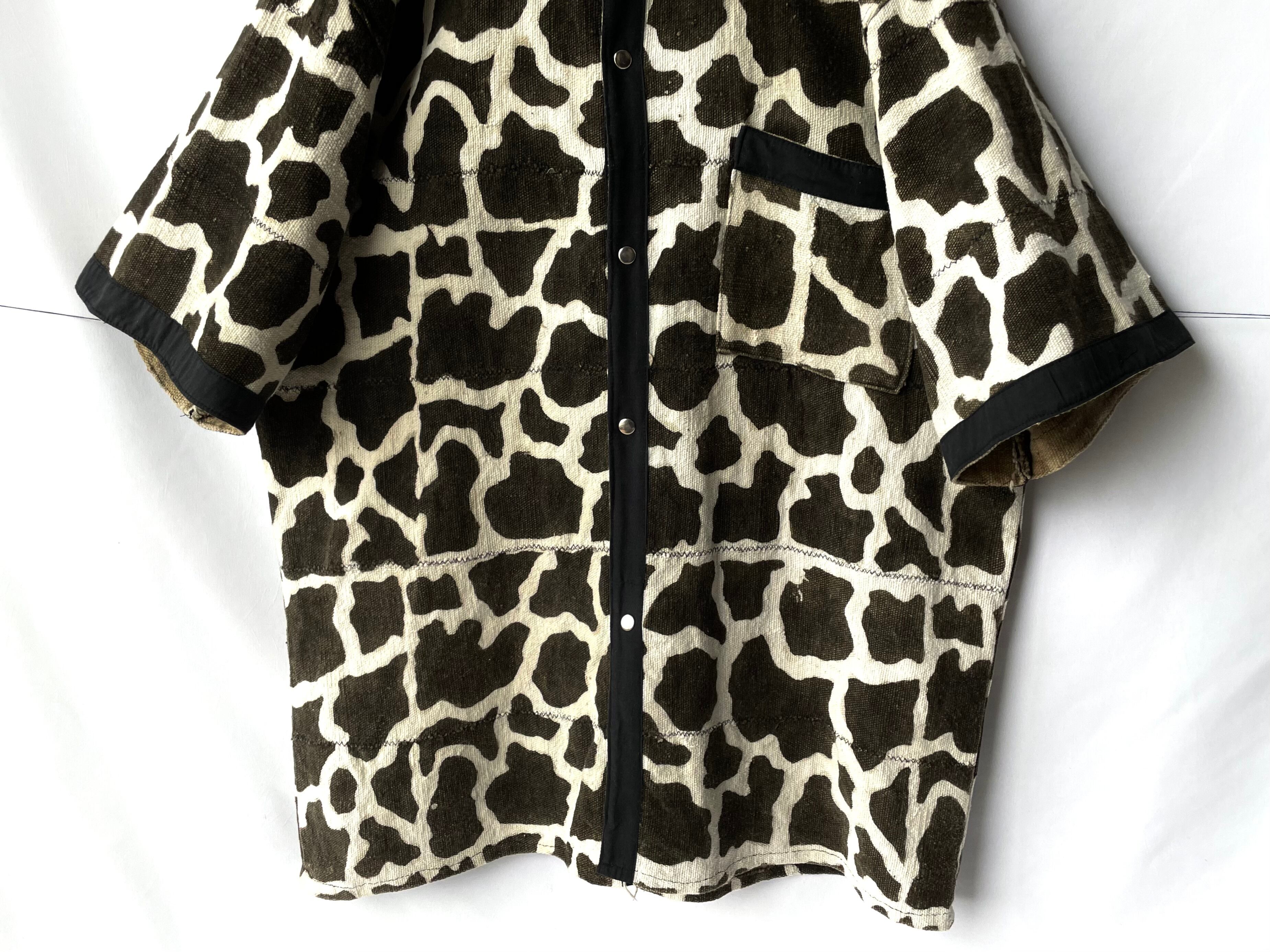 アフリカ/マリの伝統的な泥染め布が使用された、ハーフスリーブのシャツジャケット。