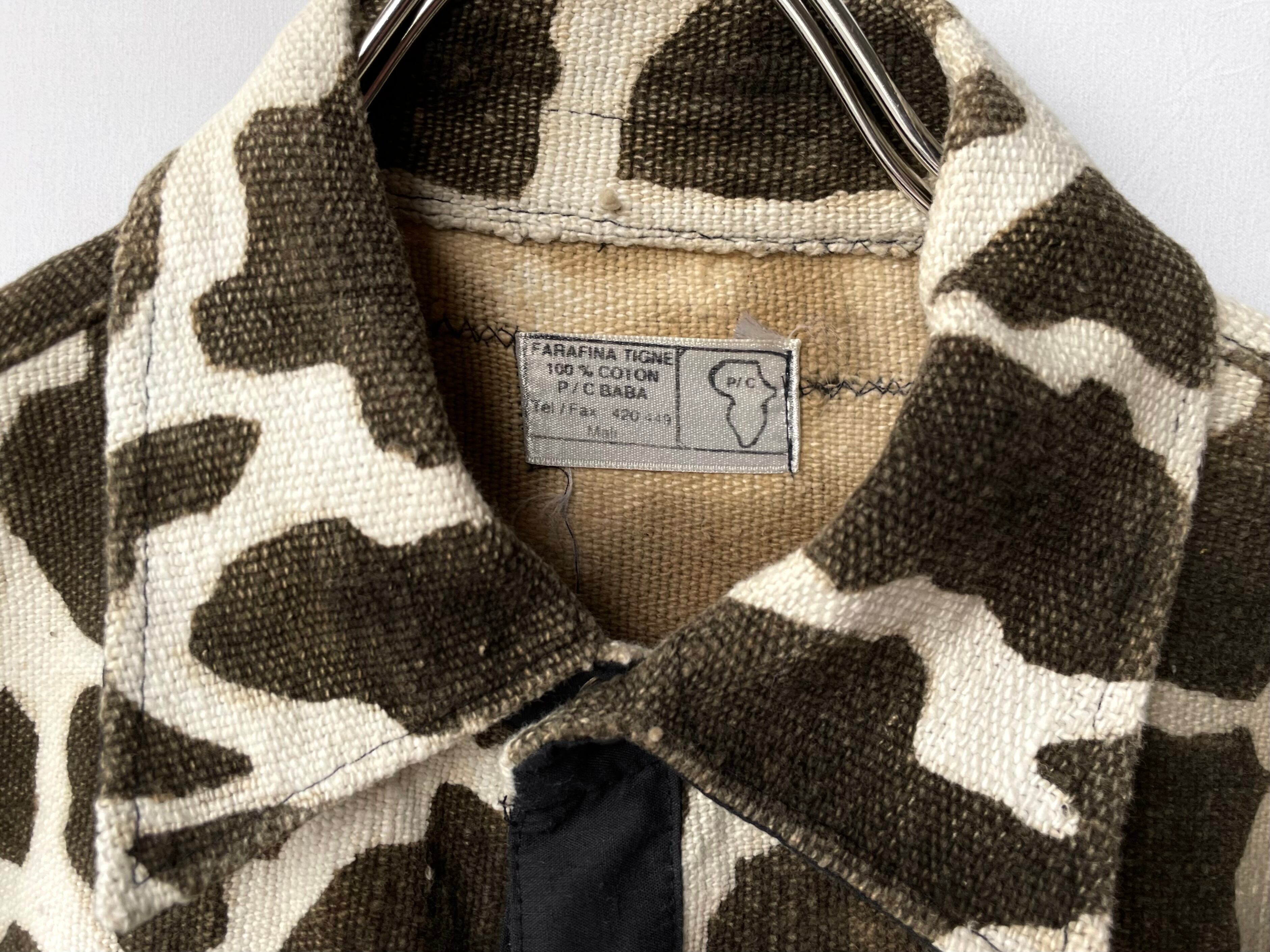 A half-sleeved shirt jacket made from traditional African/Malian mud-dyed fabric.