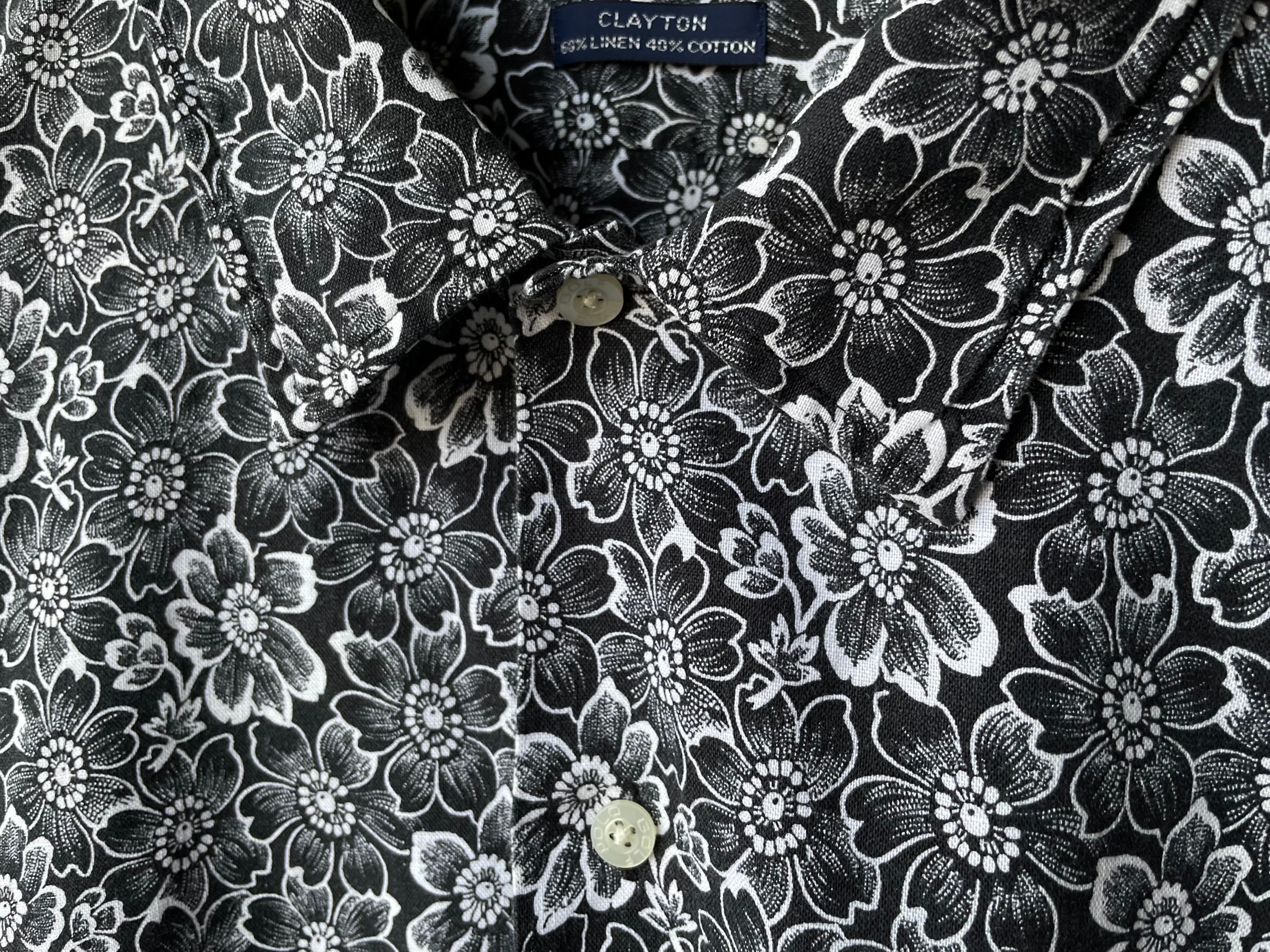 大小様々な花柄が重なり合う、和彫の様なオールパターン。