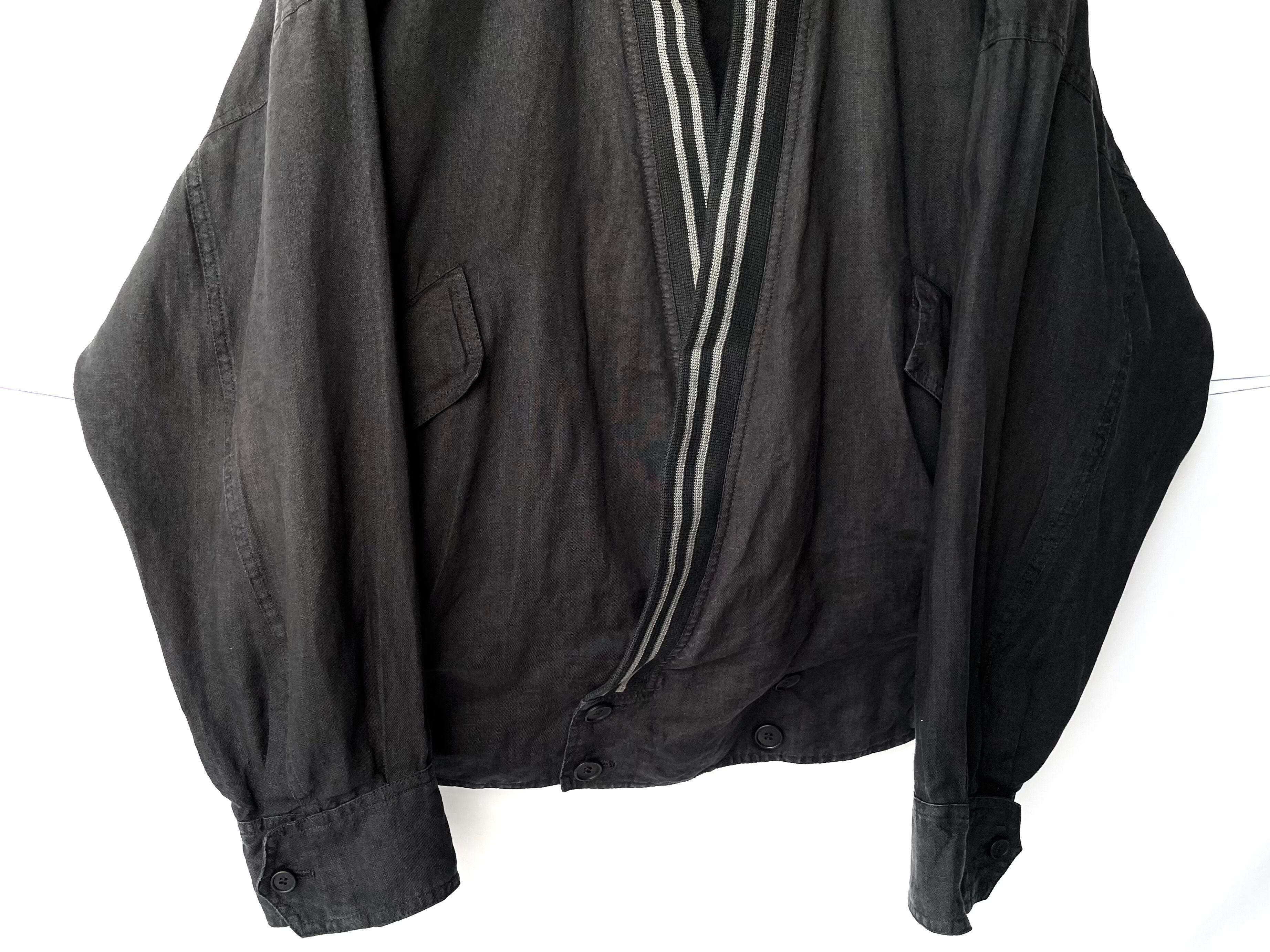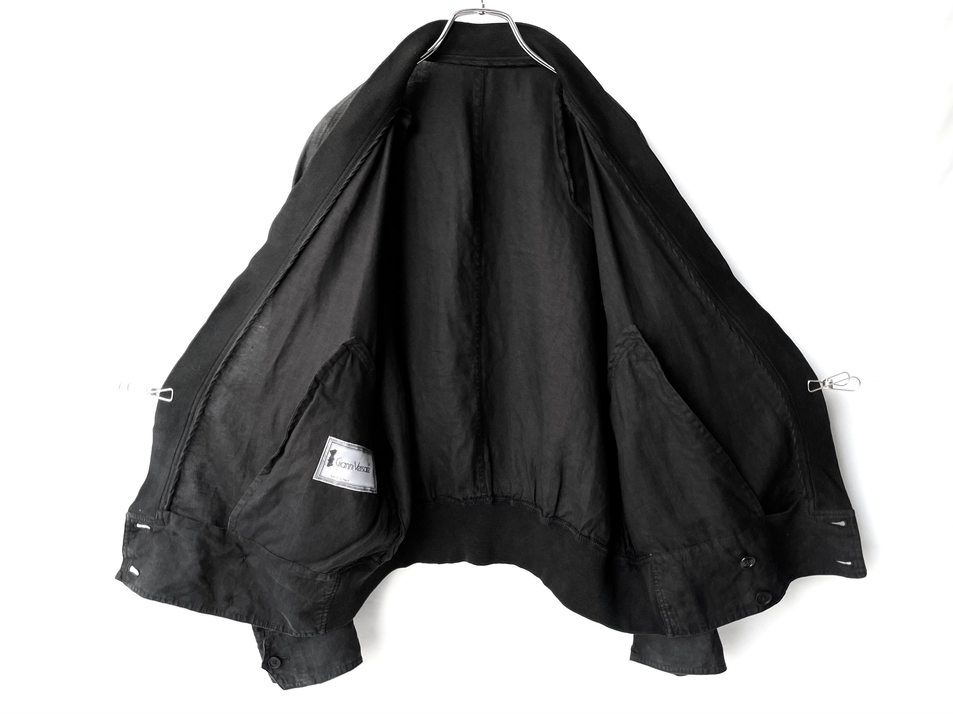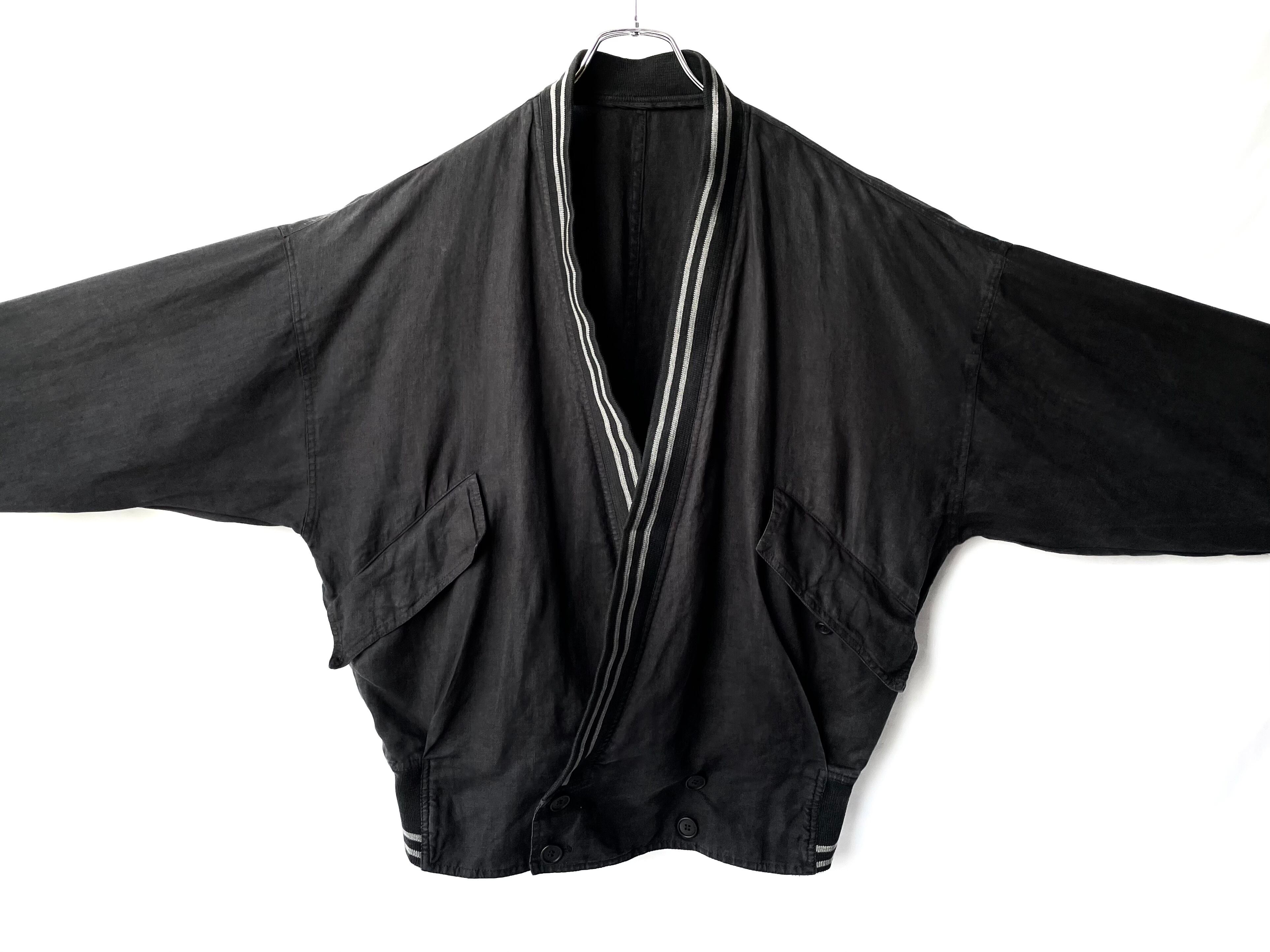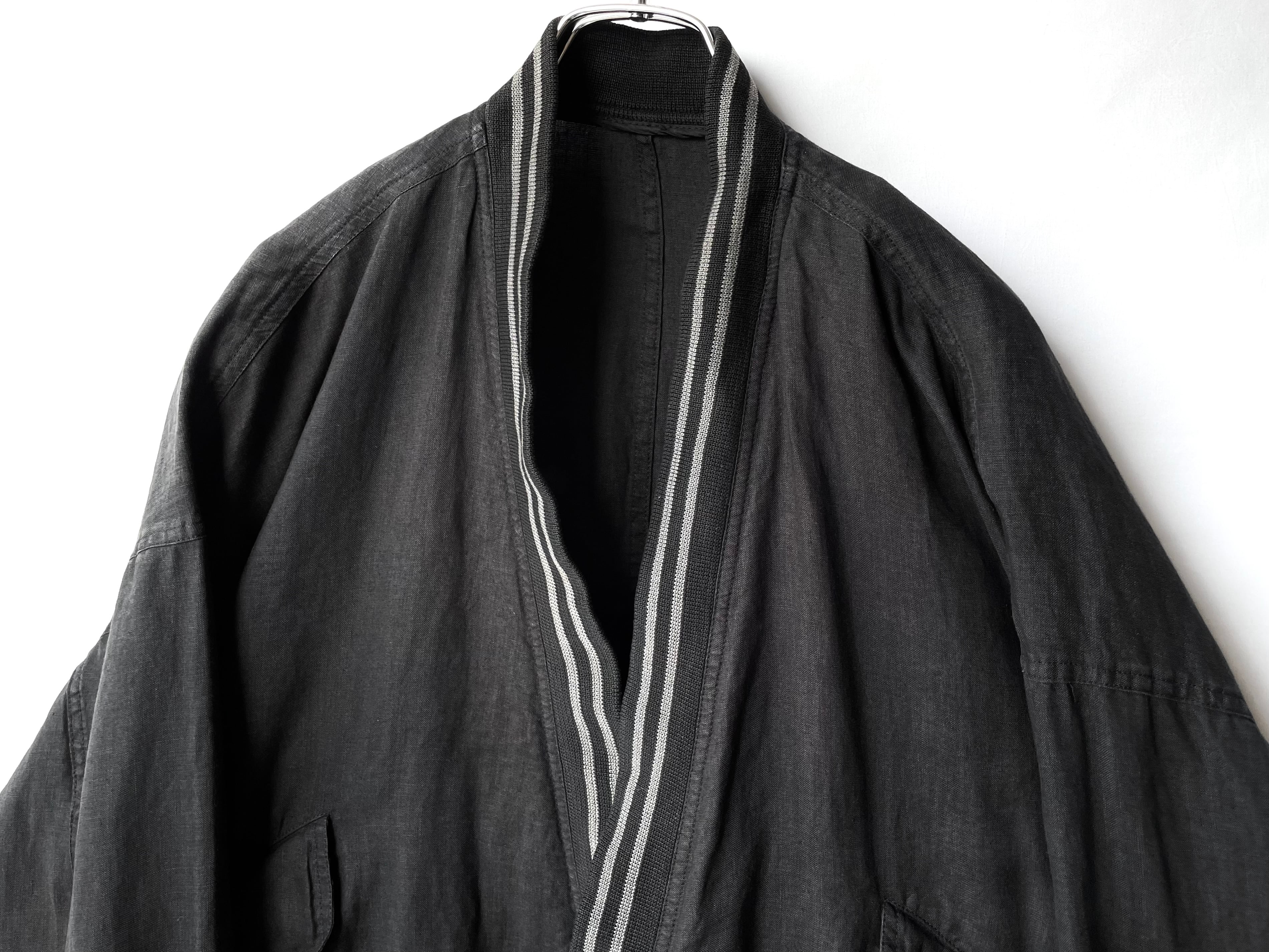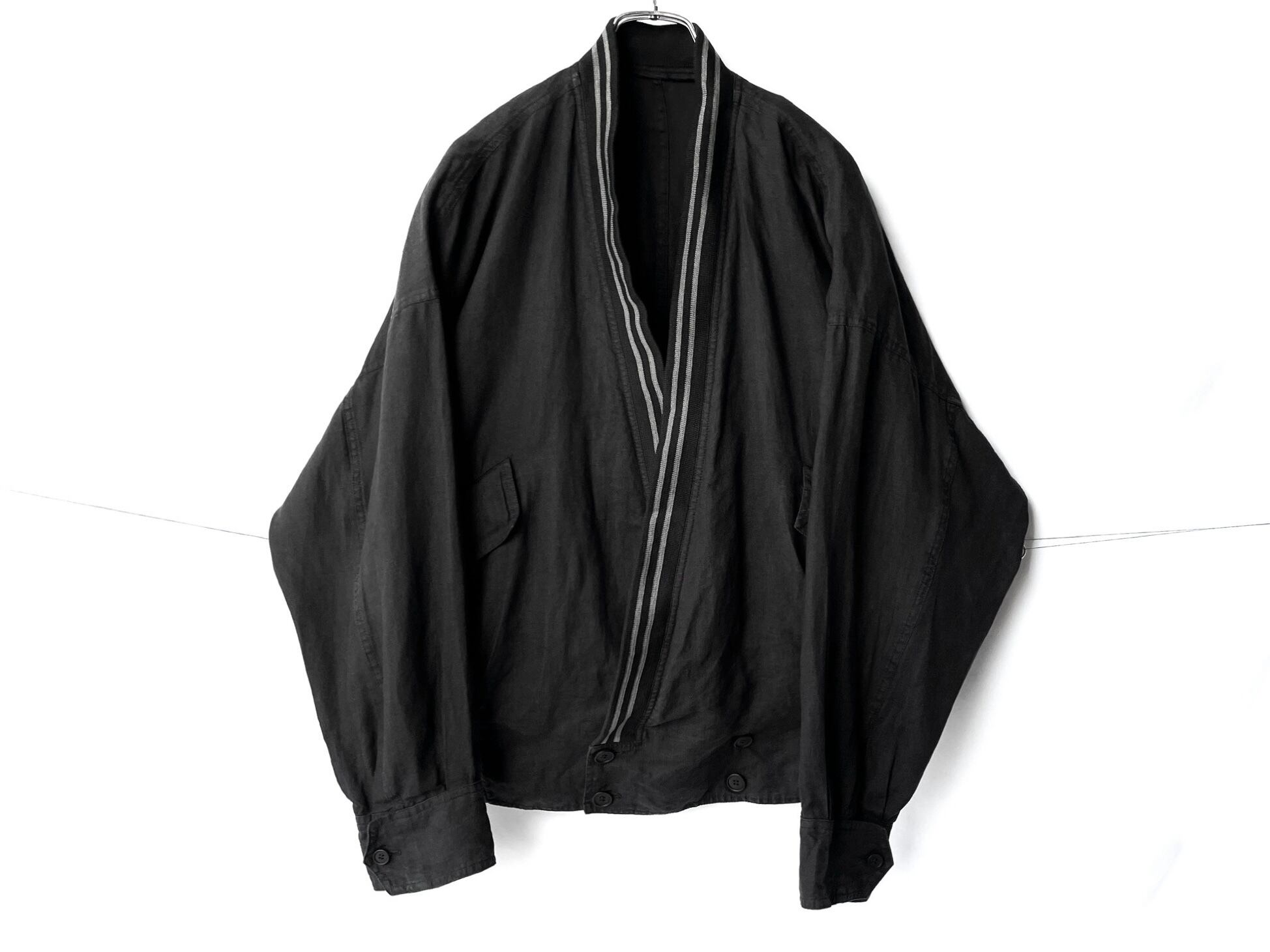A short shirt blouson that combines elements of Japanese Samue with Western sports/workwear.