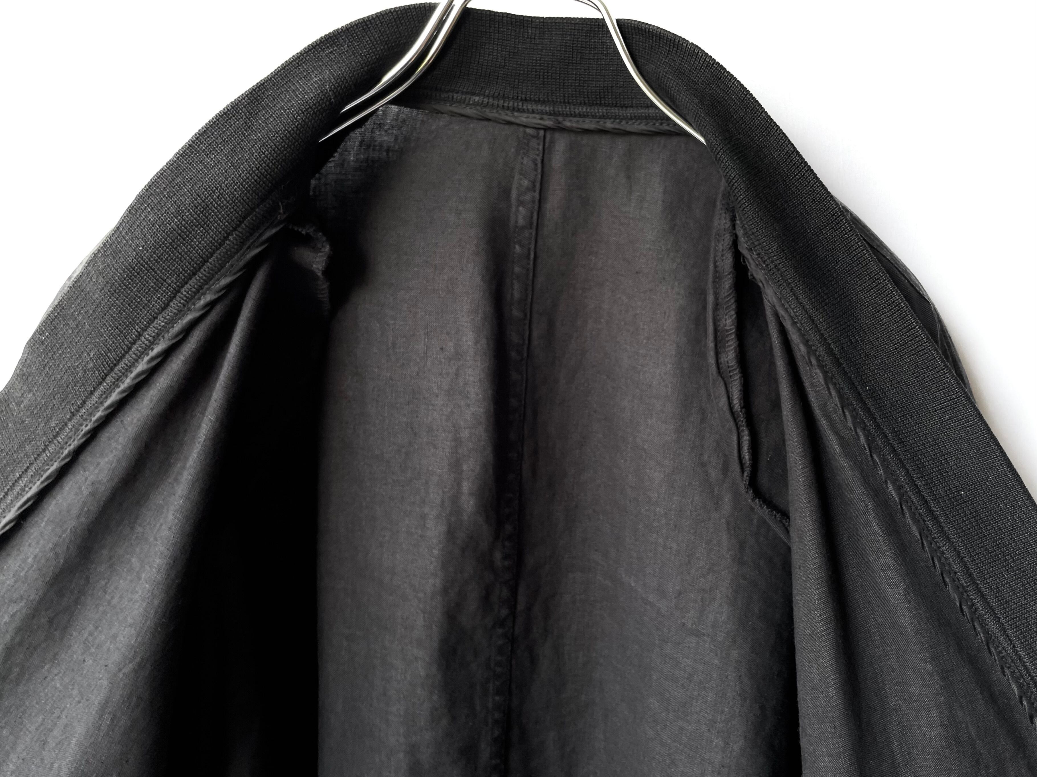 黒×グレーのリブ生地で切り替えられた特殊なラペルデザイン。