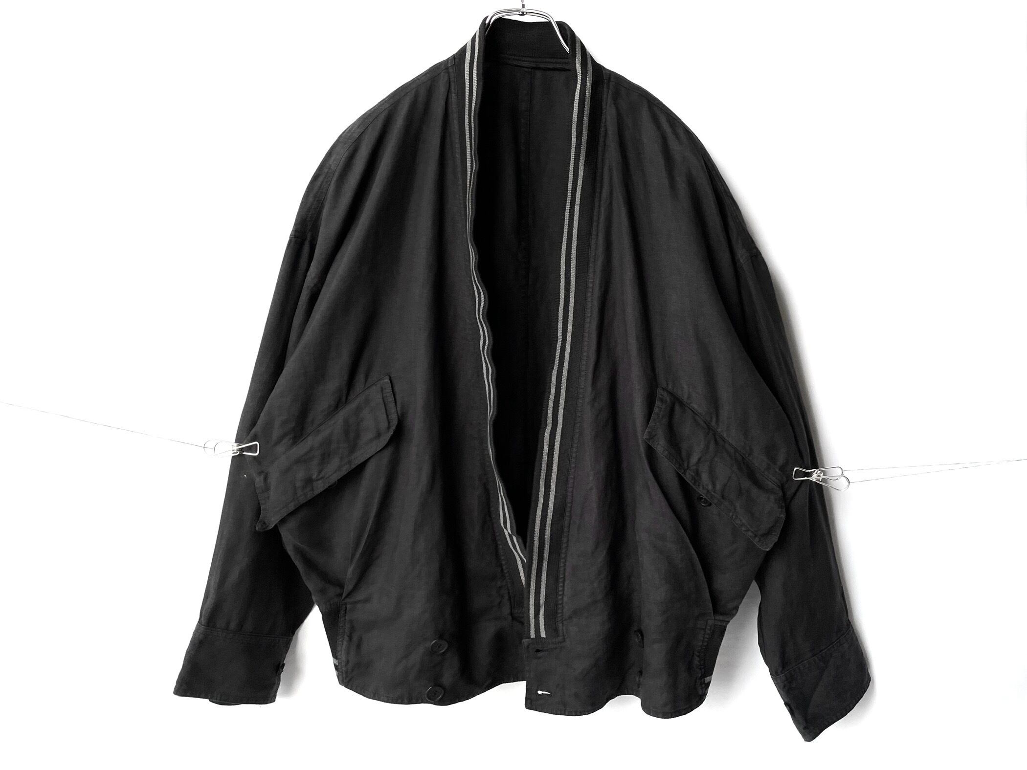 西洋のスポーツ/ワークウェアに日本の作務衣の要素を足した様な、短丈のシャツブルゾン。