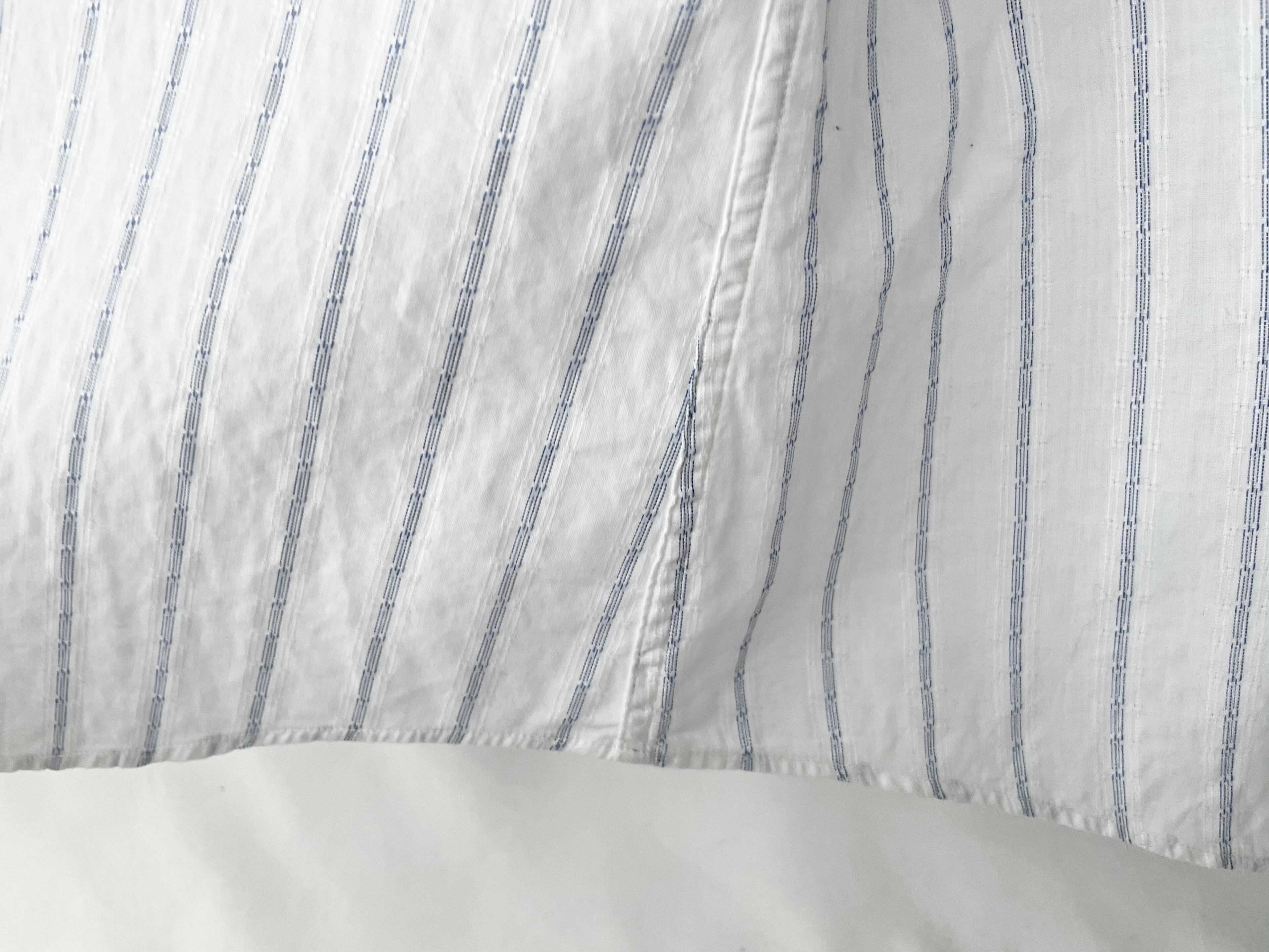 白地に青糸が混じる、細かな凹凸のある織柄生地。