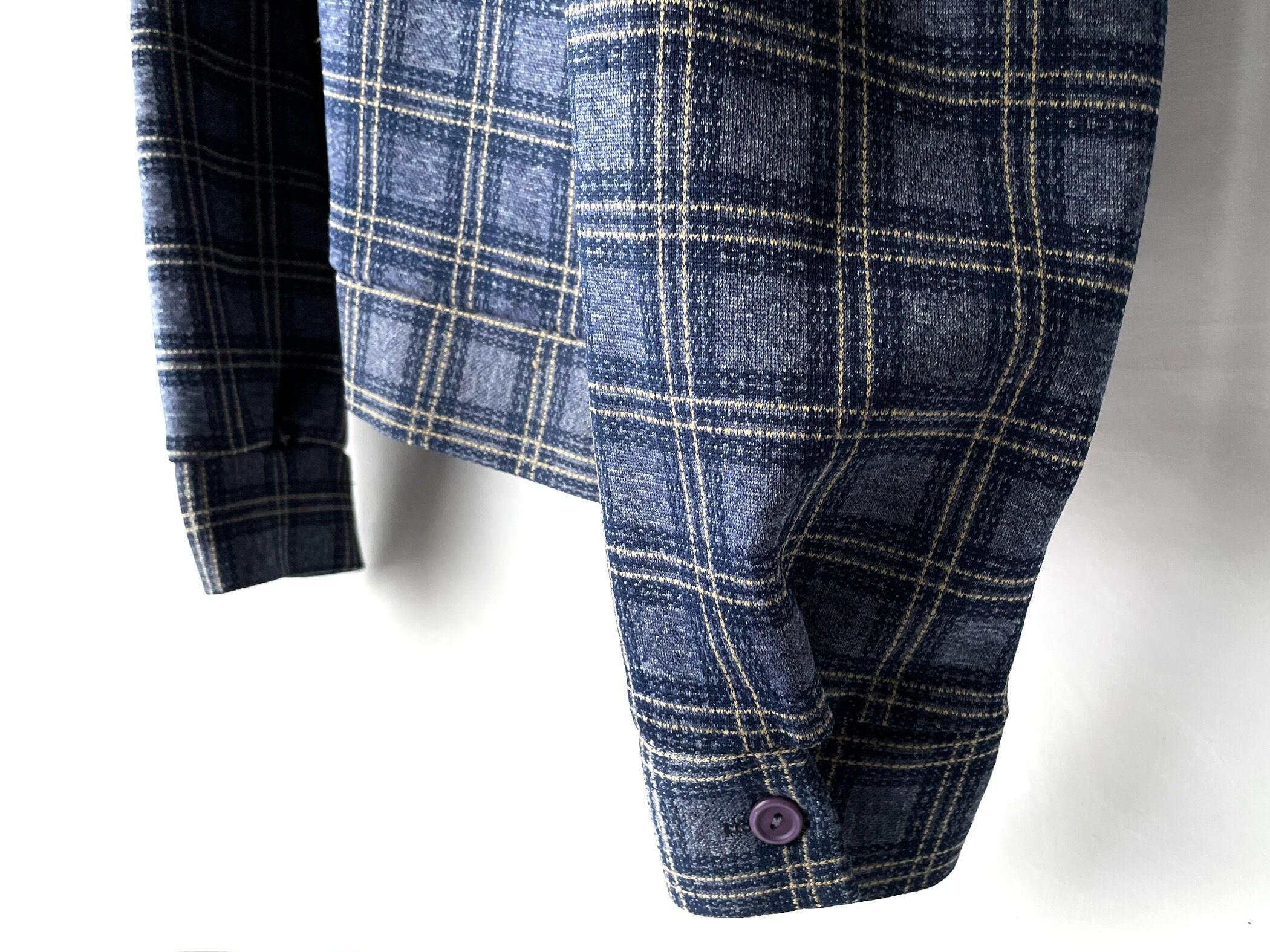 ぼんやりとした発色のネイビーブルーの格子柄。