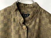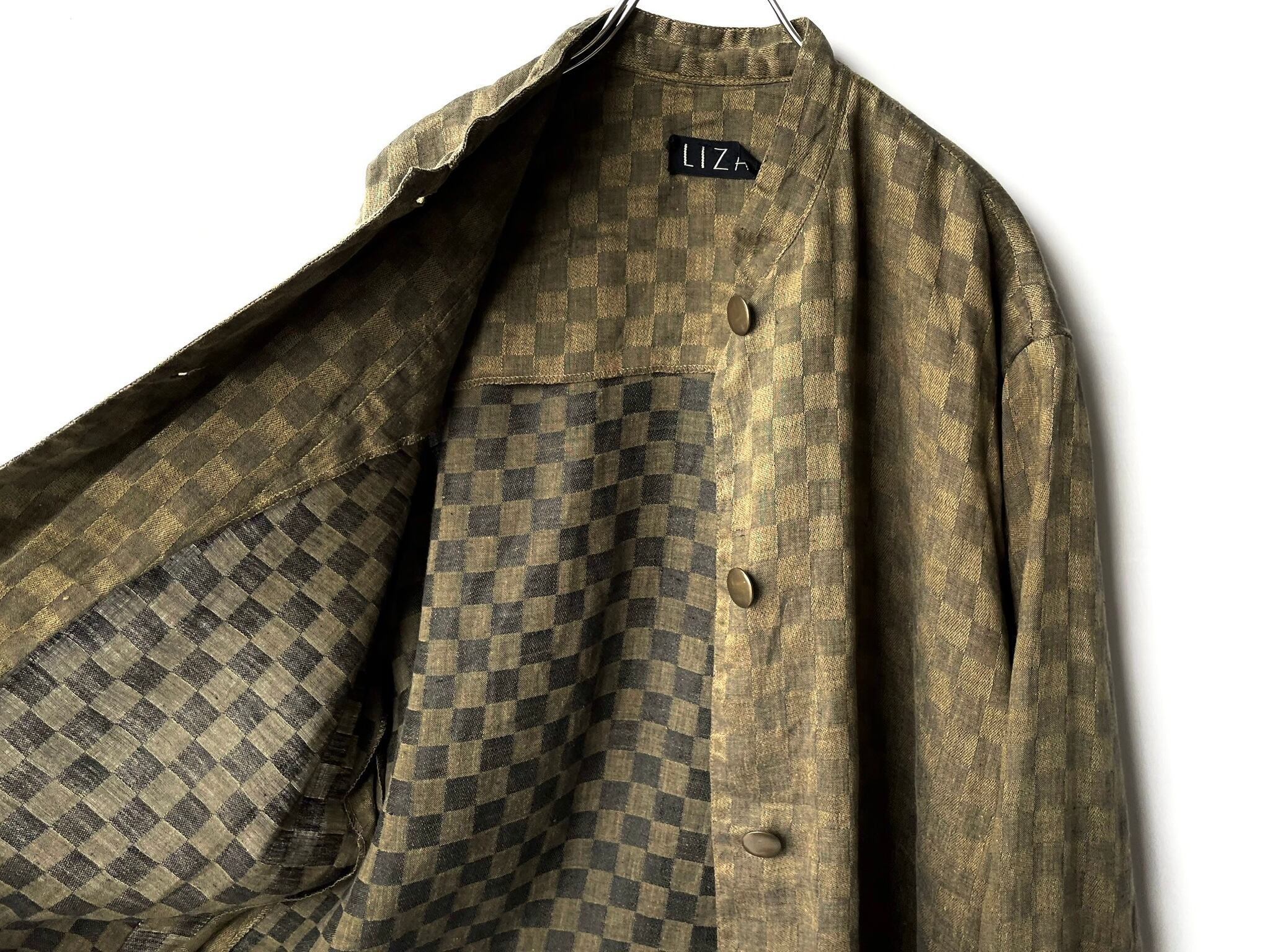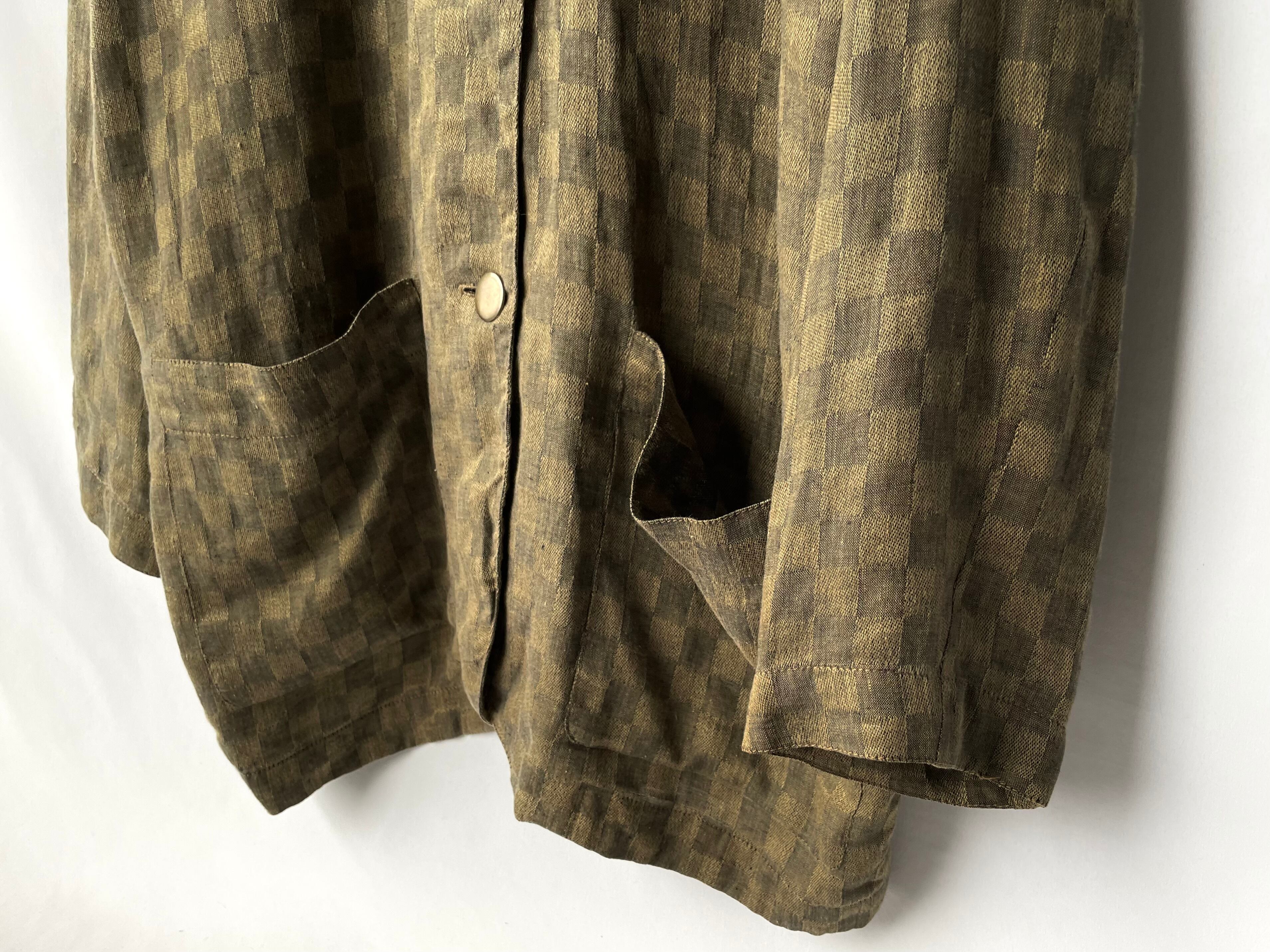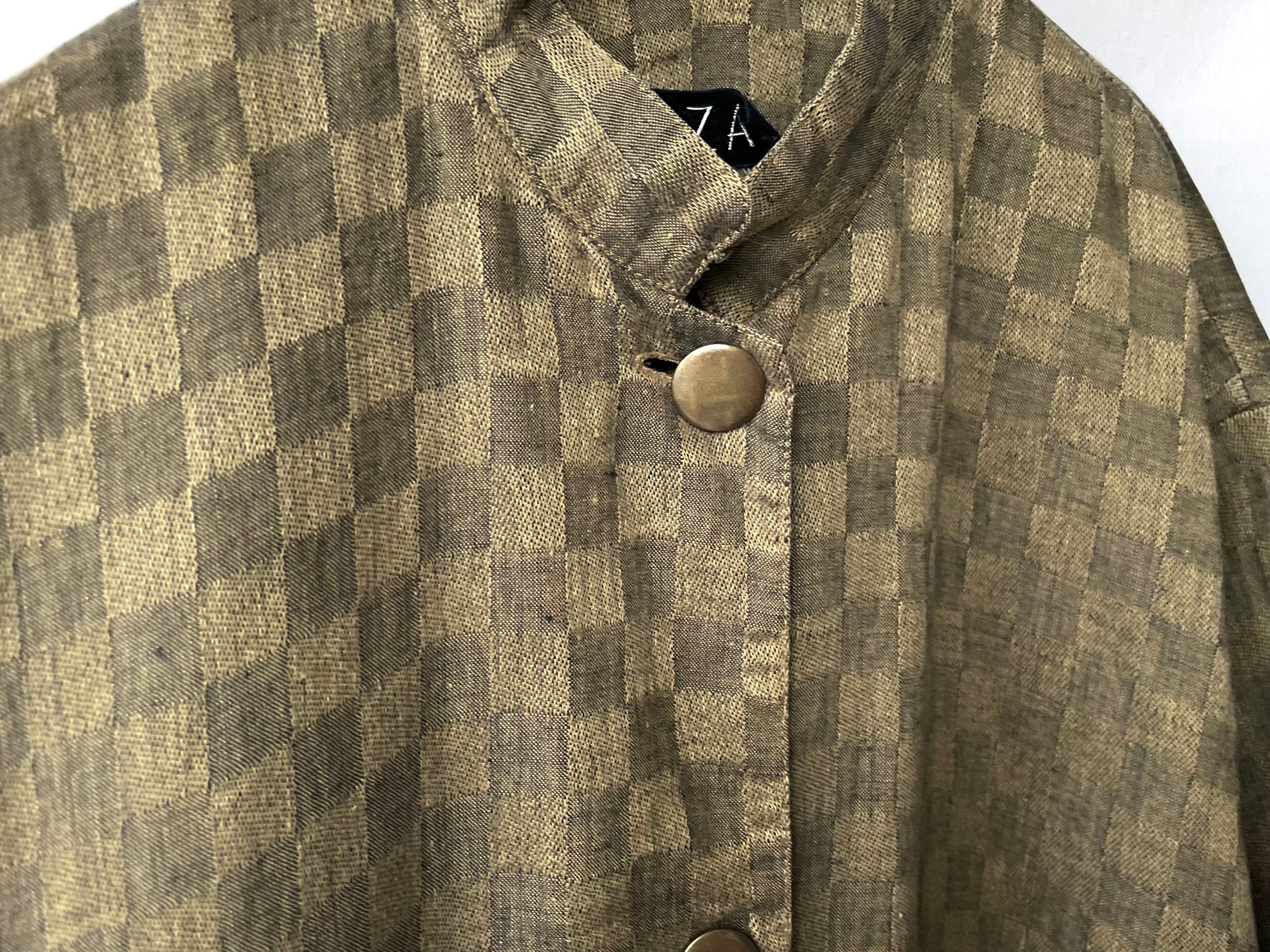 カーキブラウン~オリーブグレーの曖昧な色調のチェックパターン。