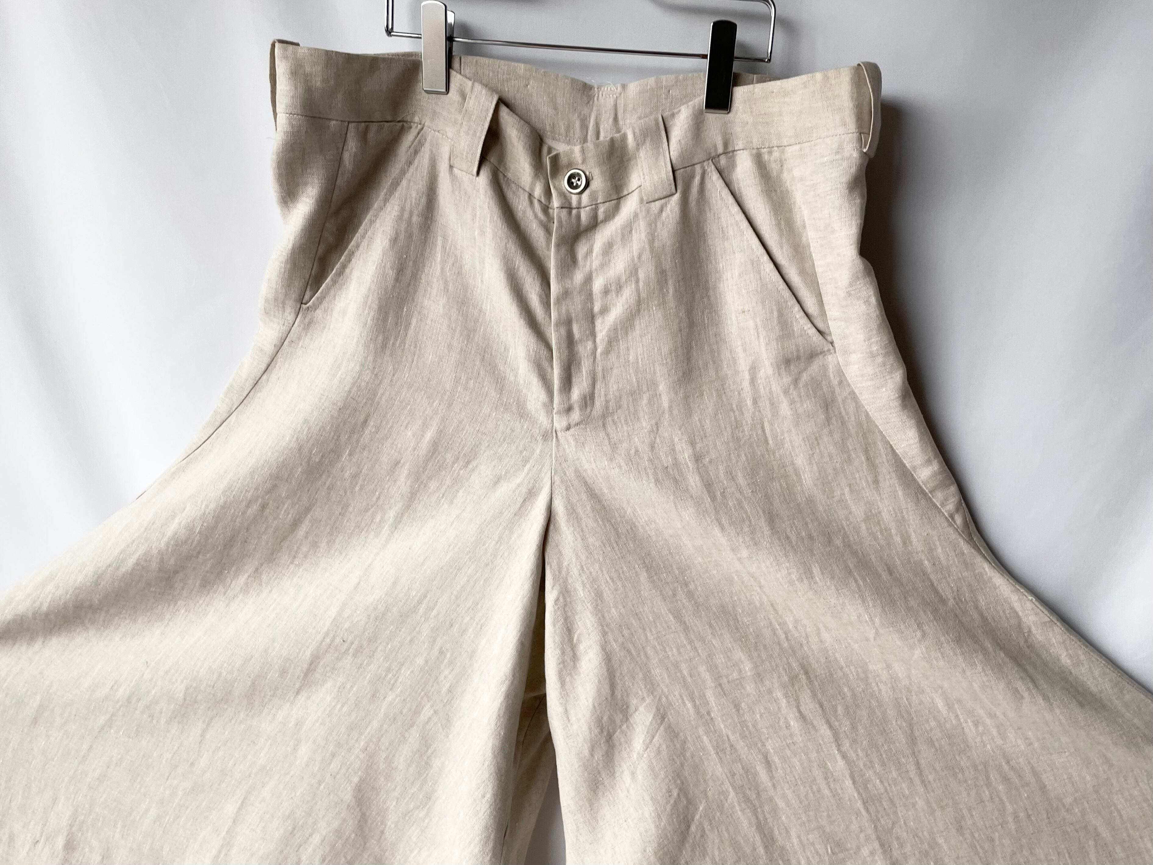 たっぷり広い渡りから、裾に向けて約2倍程に膨れる極端なワイドフレアシルエット。(裾幅で約89.5cm程ございます)