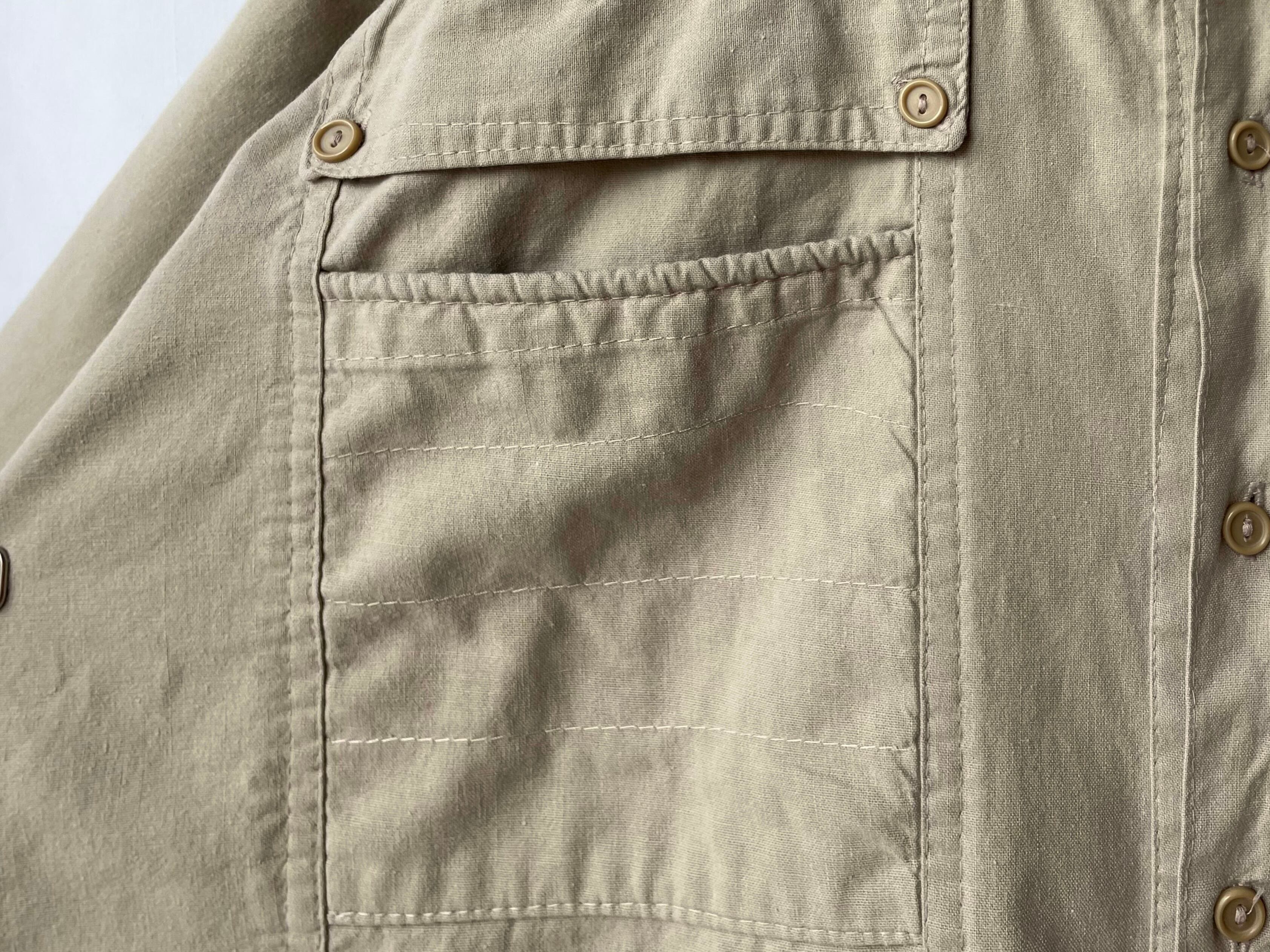 横線のステッチ、太さのあるコードが通る胸ポケット。